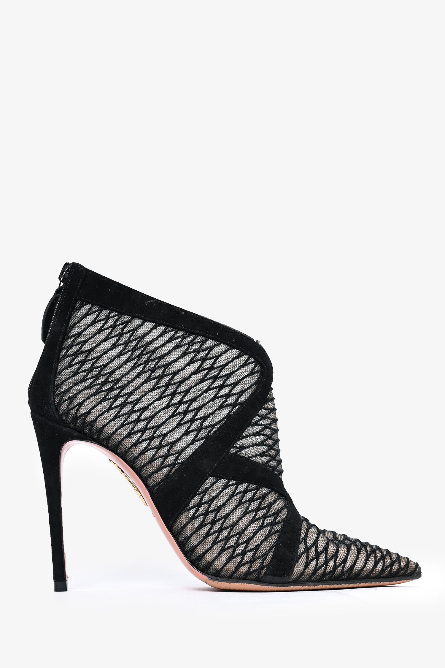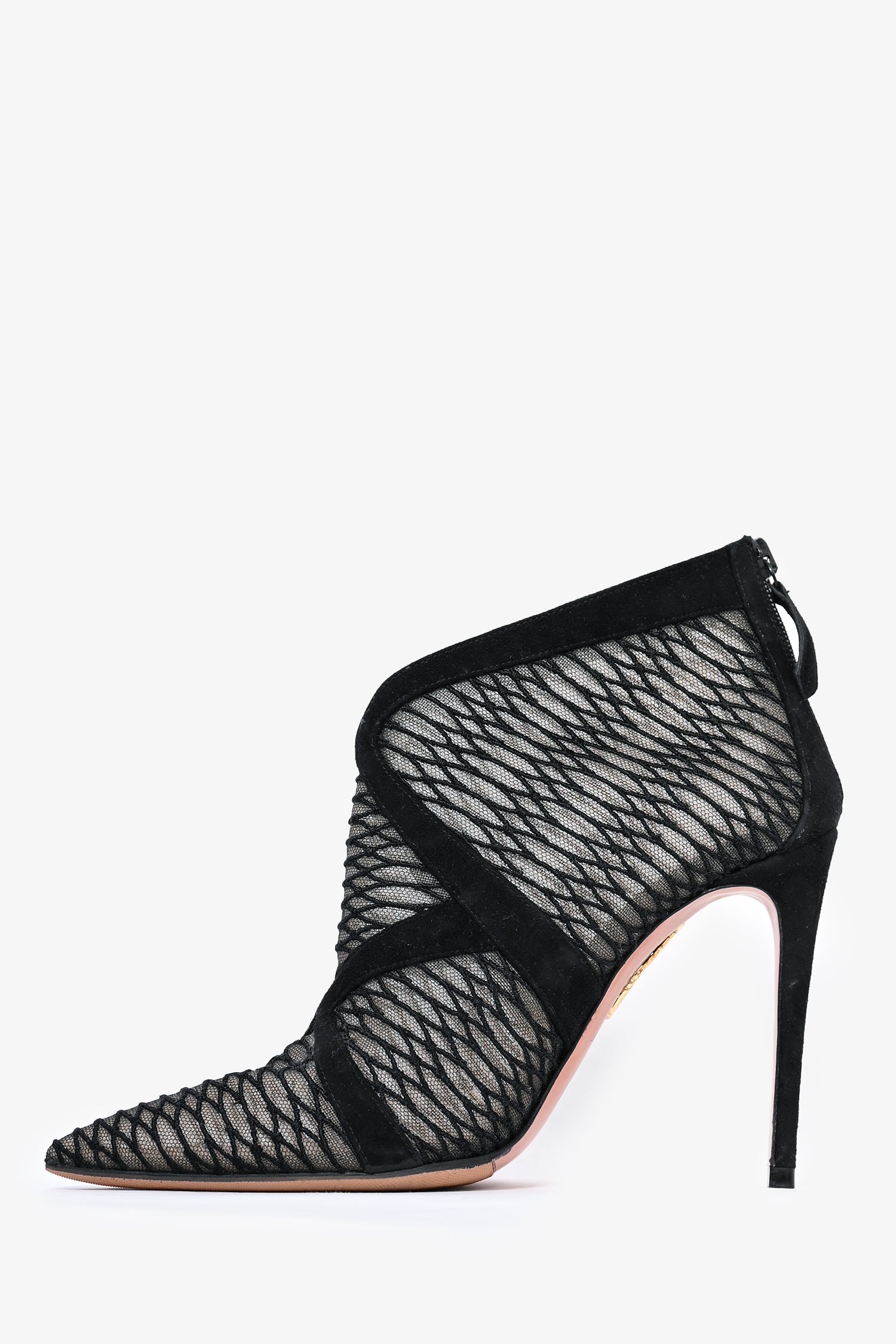 Refresh availabilityAquazzura Black Suede/Mesh Ankle Booties. Pointed toe. Rear zip closure. Topy soles.