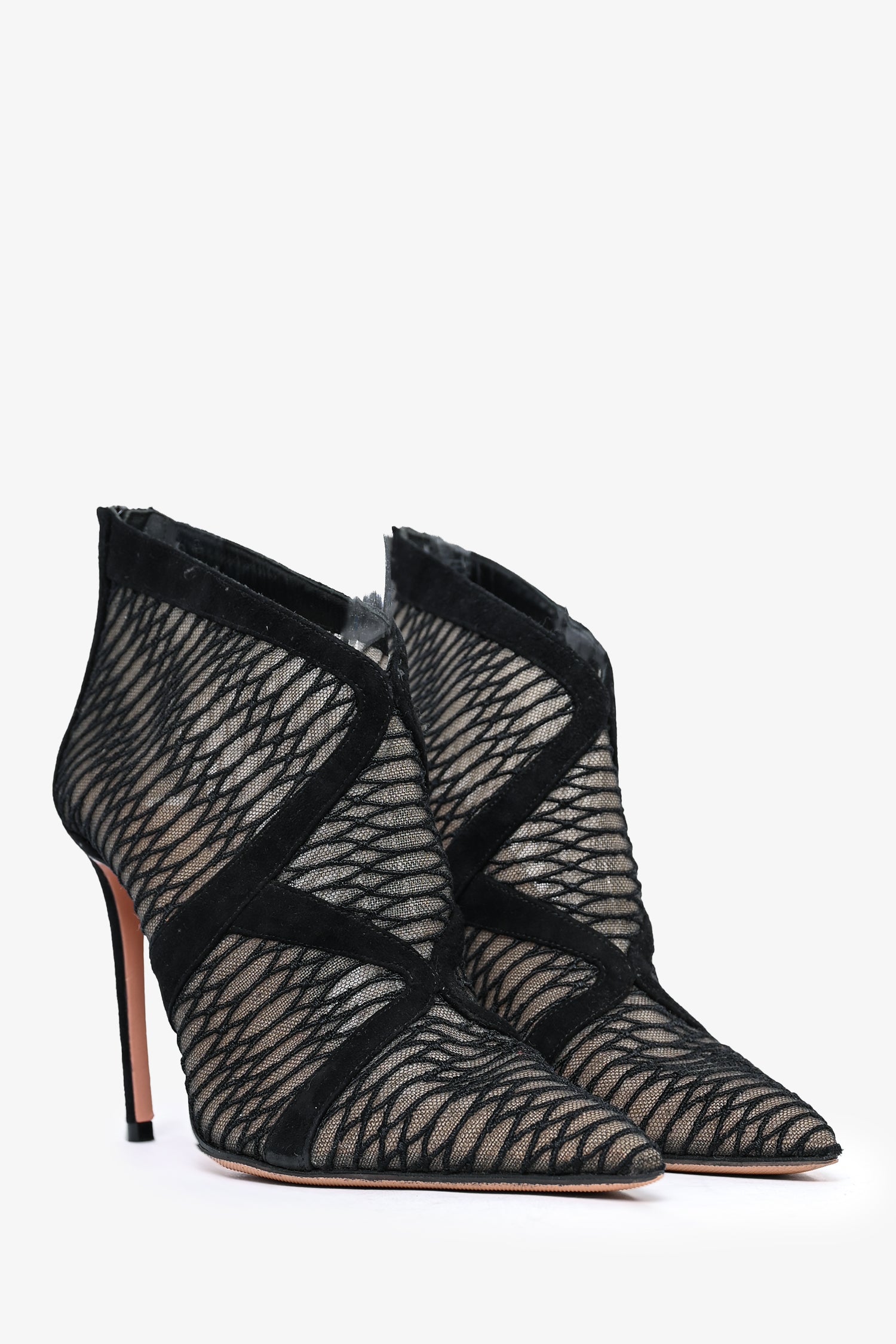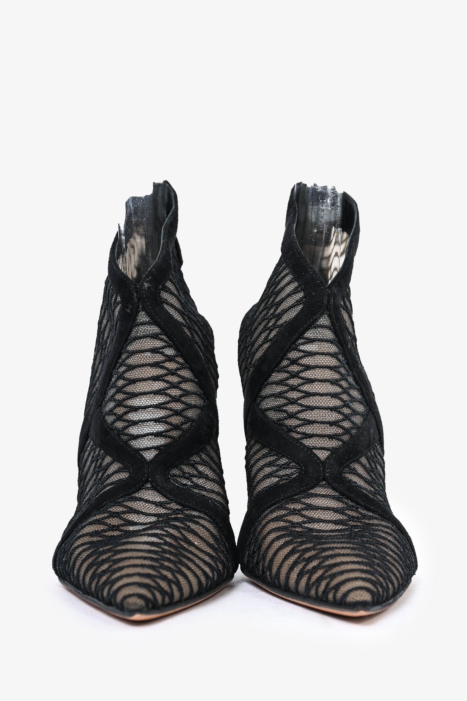 Aquazzura Black Suede/Mesh Ankle Booties Size 36.5