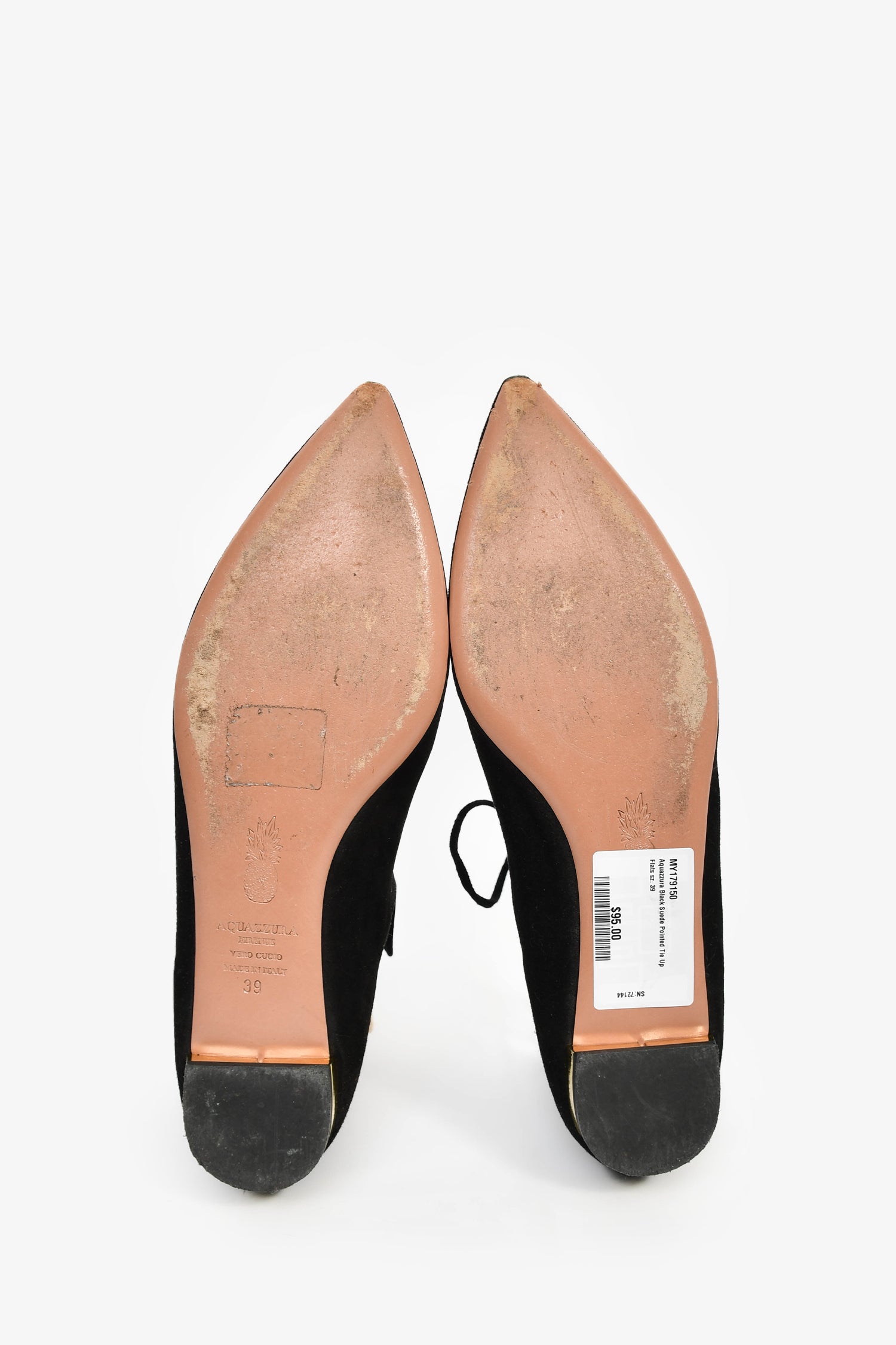 Aquazzura Black Suede Pointed Tie Up Flats Size 39