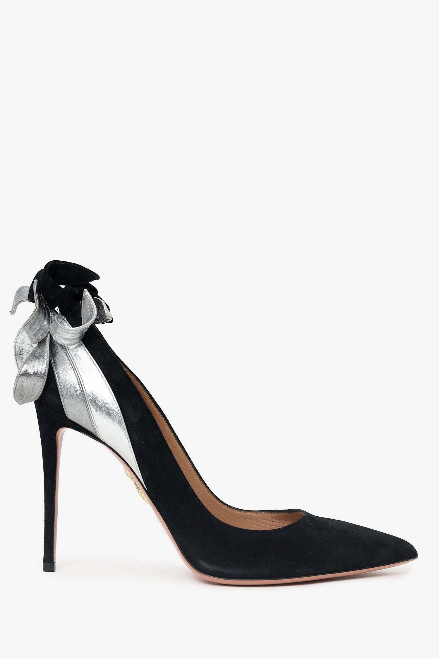 Refresh availabilityAquazzura Black/Silver Suede 'Forever Marilyn' Heels. Slip-on. Pointed toe. Tonal stitching.