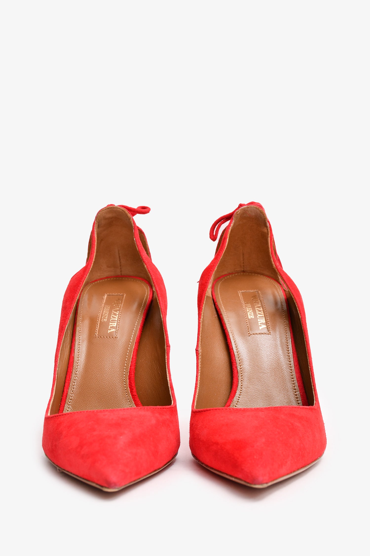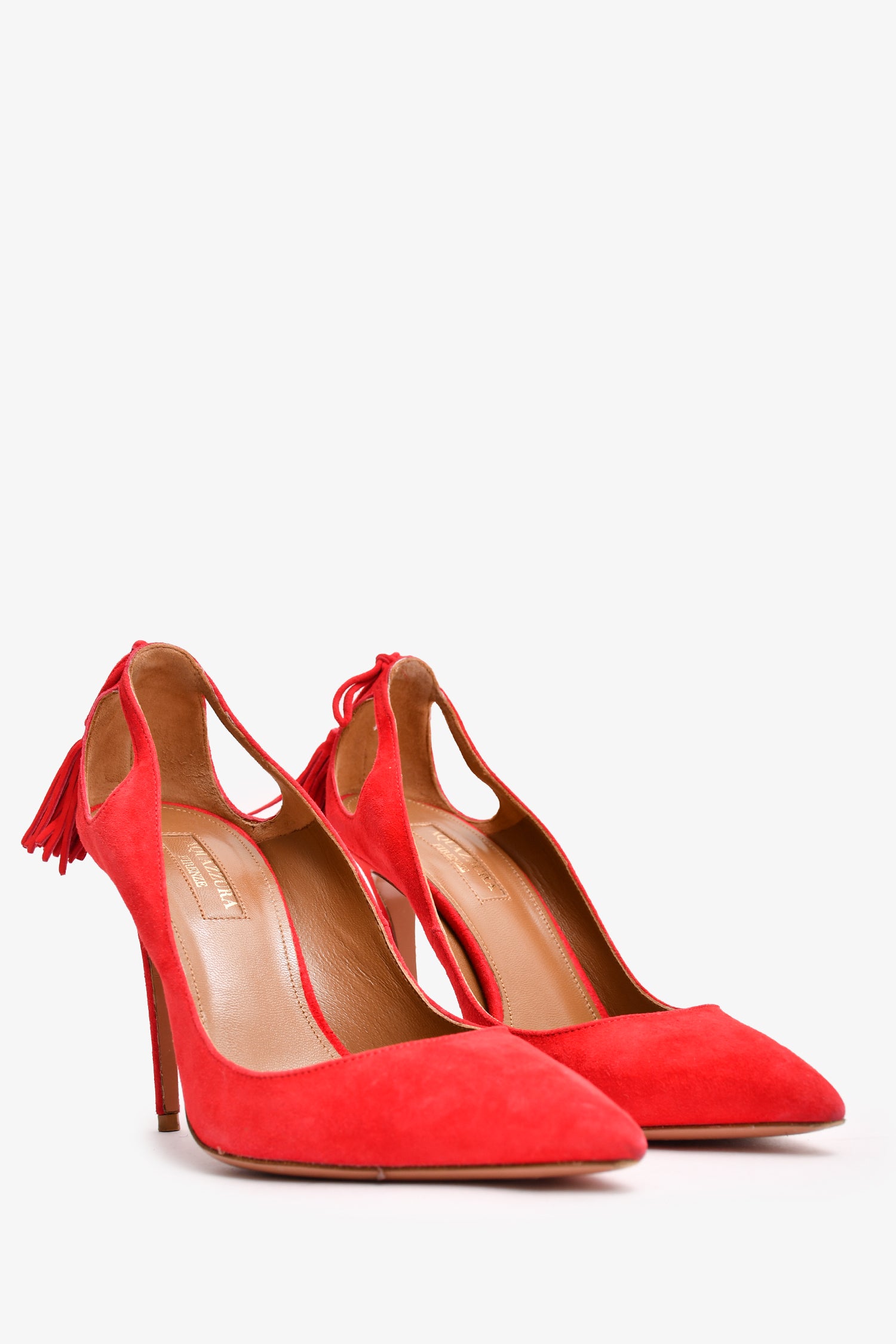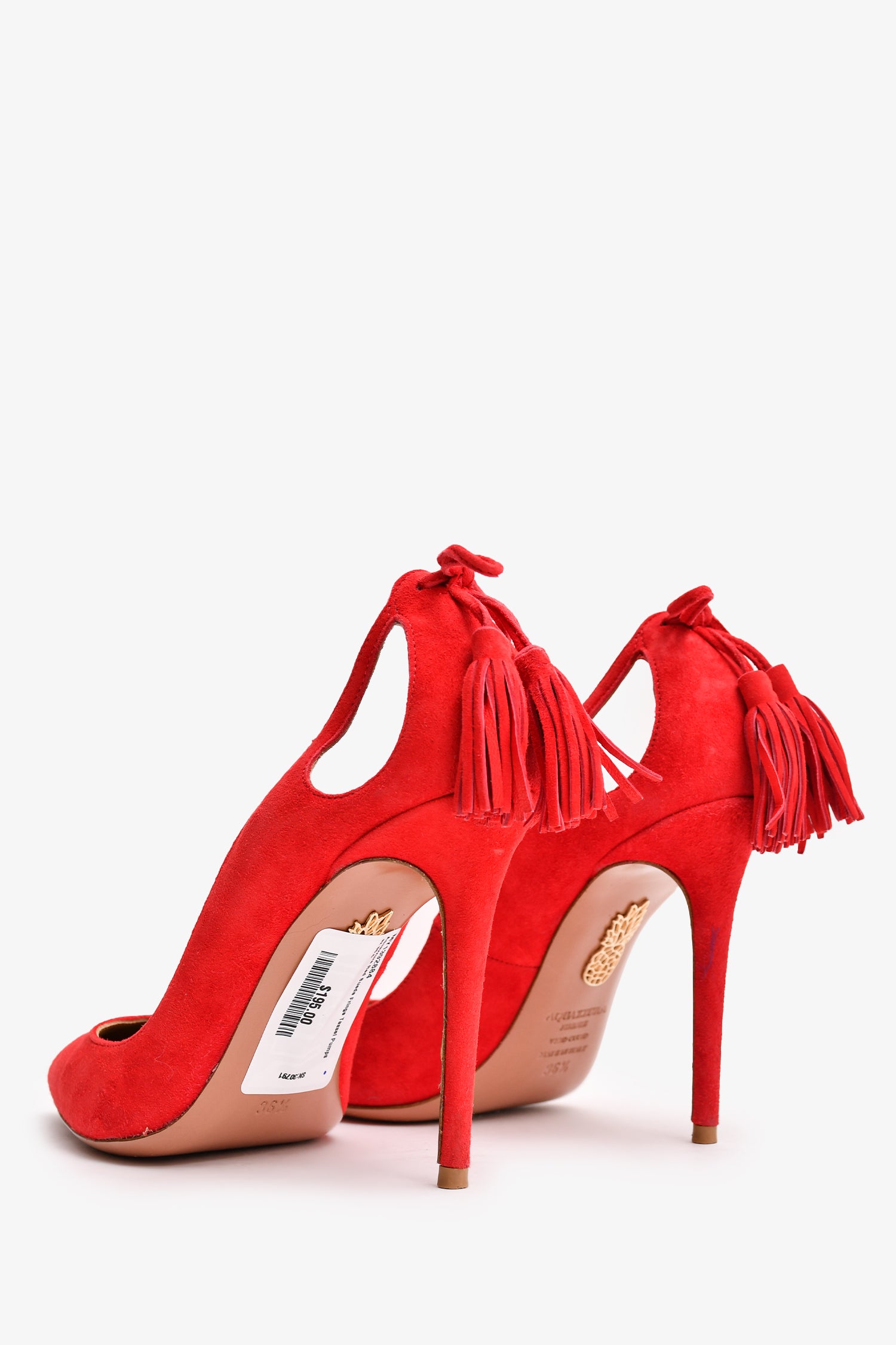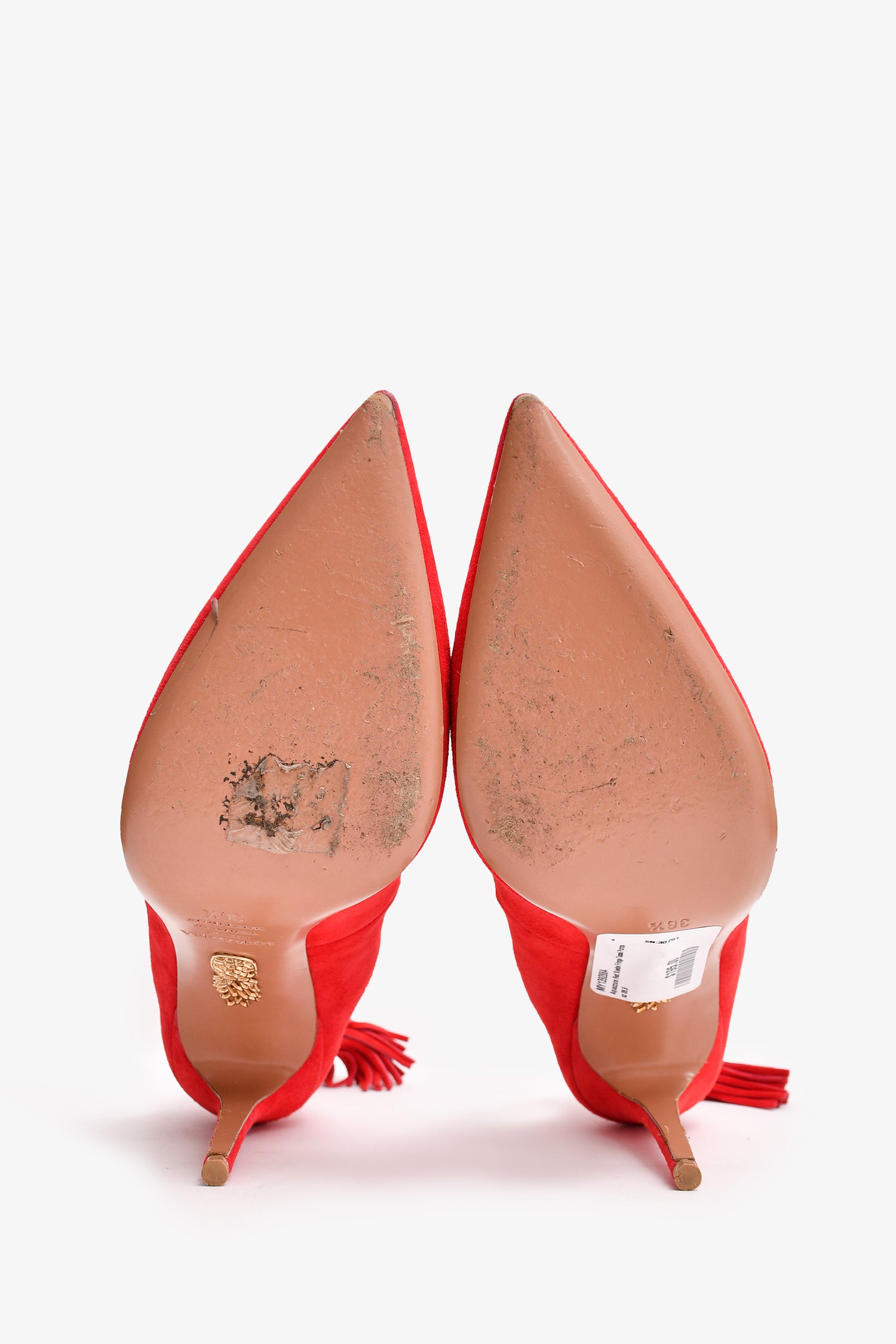 Refresh availabilityAquazzura Red Suede Fringe Tassel Pumps. Pointed toe. Slip-on.