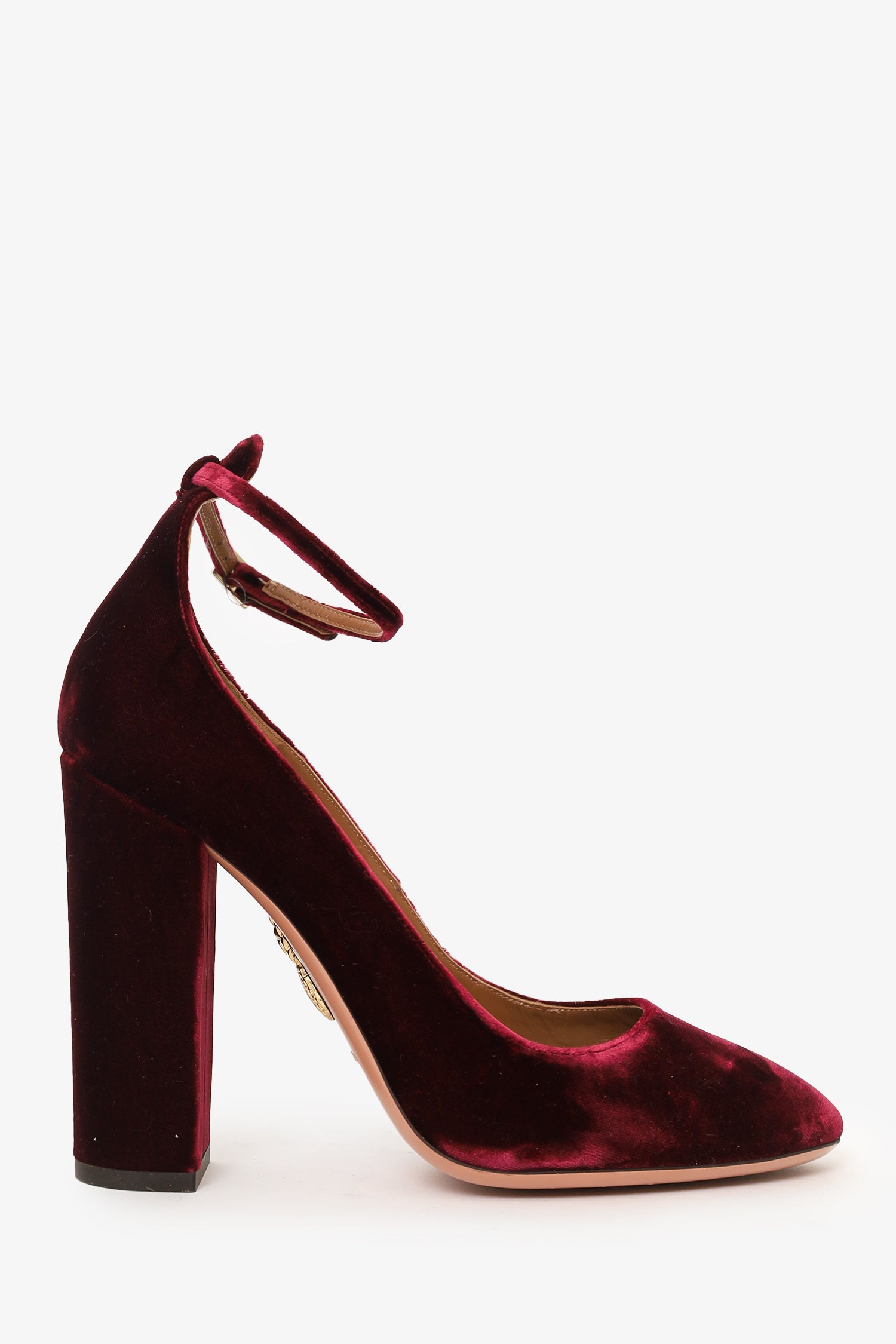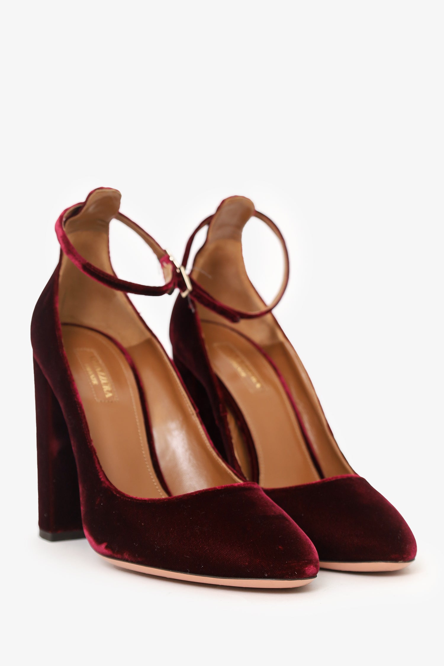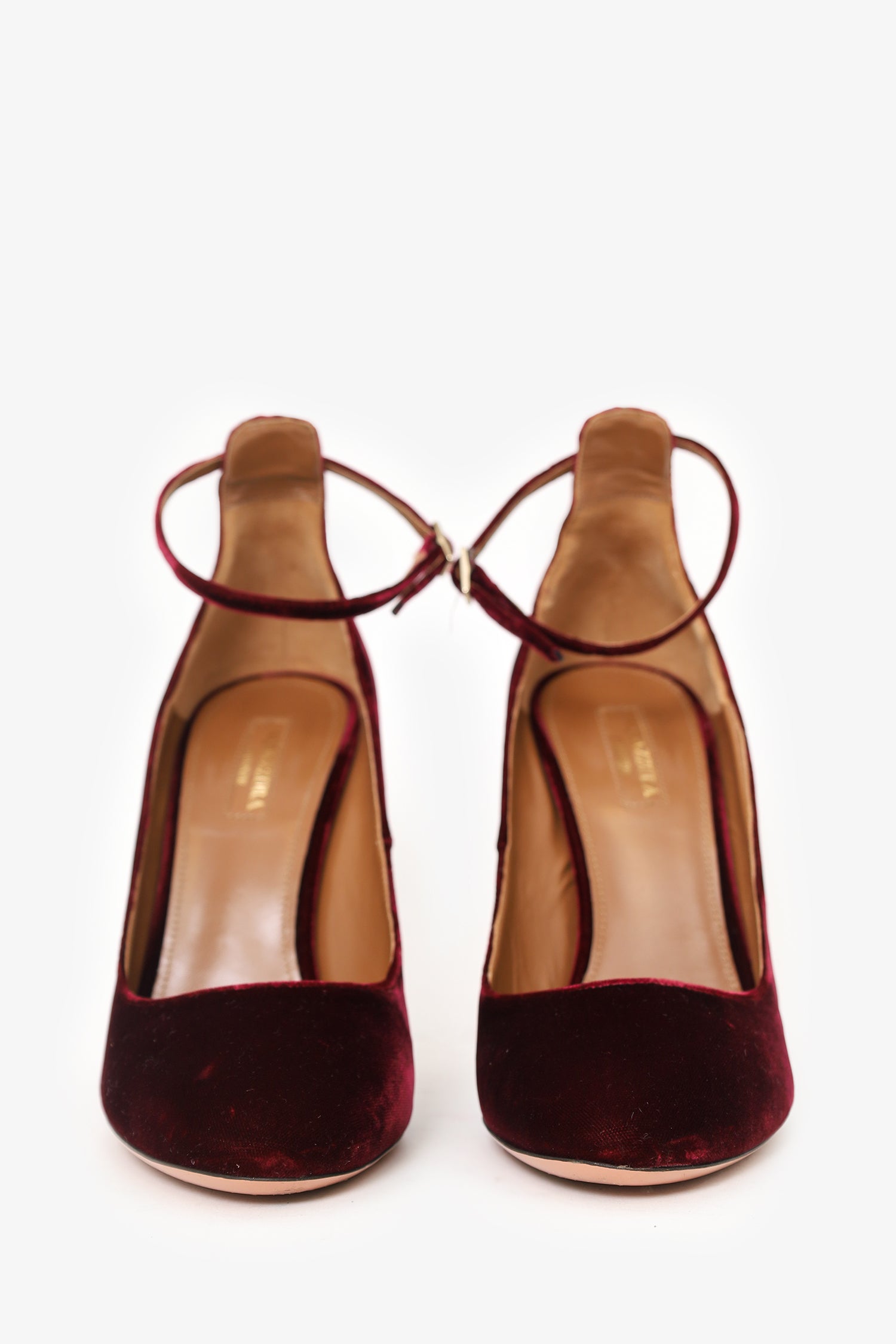Refresh availabilityAquazzura Red Velvet Slingback Pumps. Slip-on. Pointed-round toe. Adjustable pull-through closure. Gold-tone hardware. Tonal stitching.