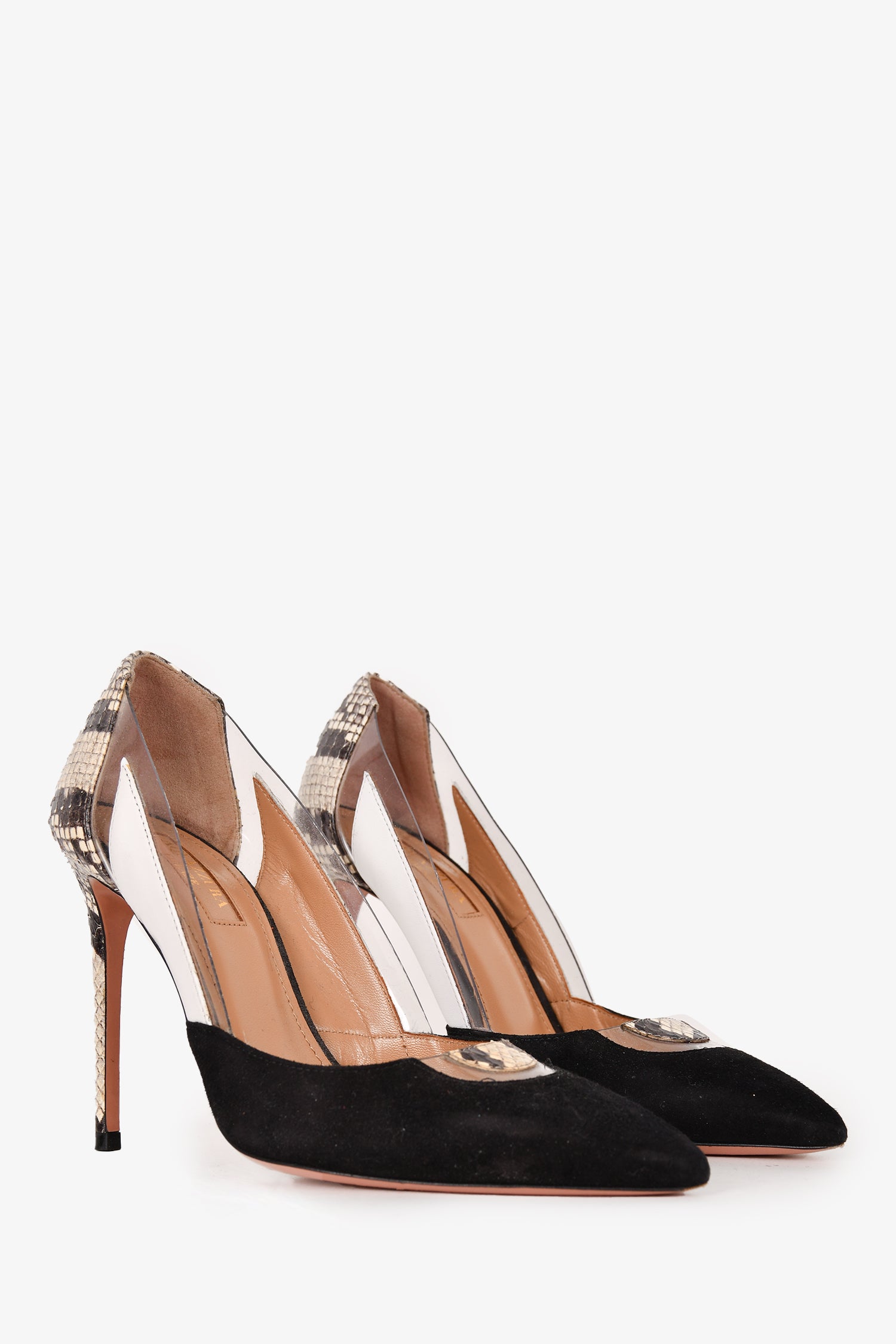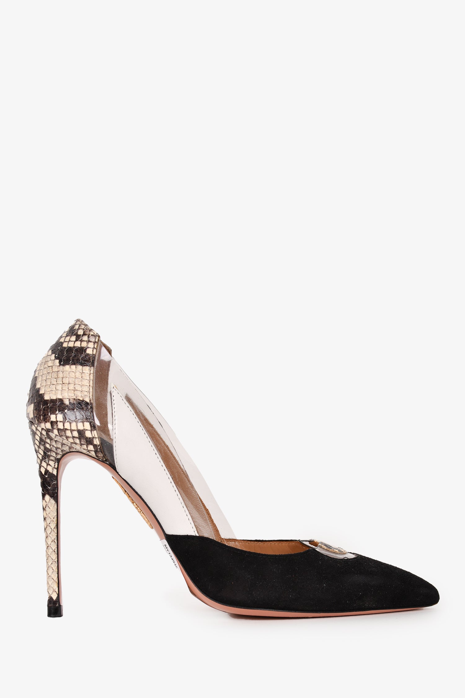 Refresh availabilityAquazzura Snake Print/Black Leather/Suede Pumps. Slip-on. Pointed toe. Stiletto heel.