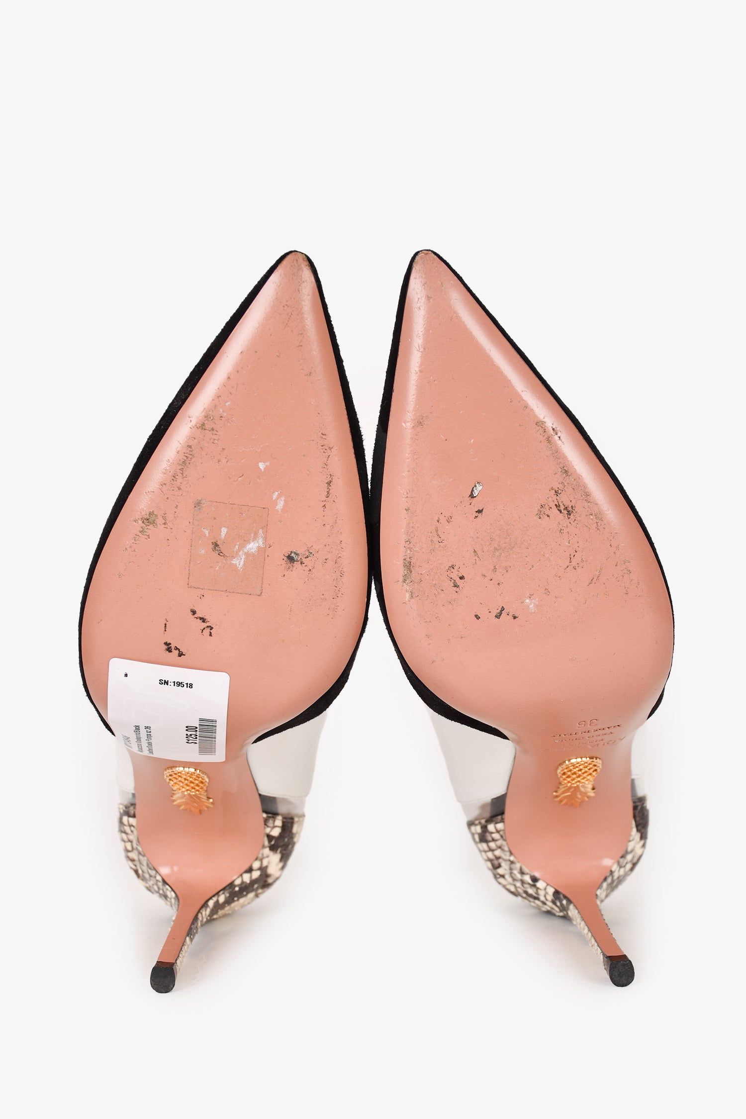 Aquazzura Snake Print/Black Leather/Suede Pumps Size 36