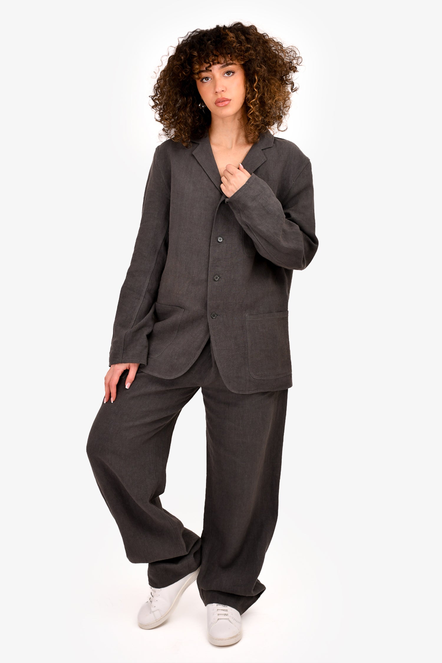 Arch The Grey Linen Oversized Button Down Blazer Size 38