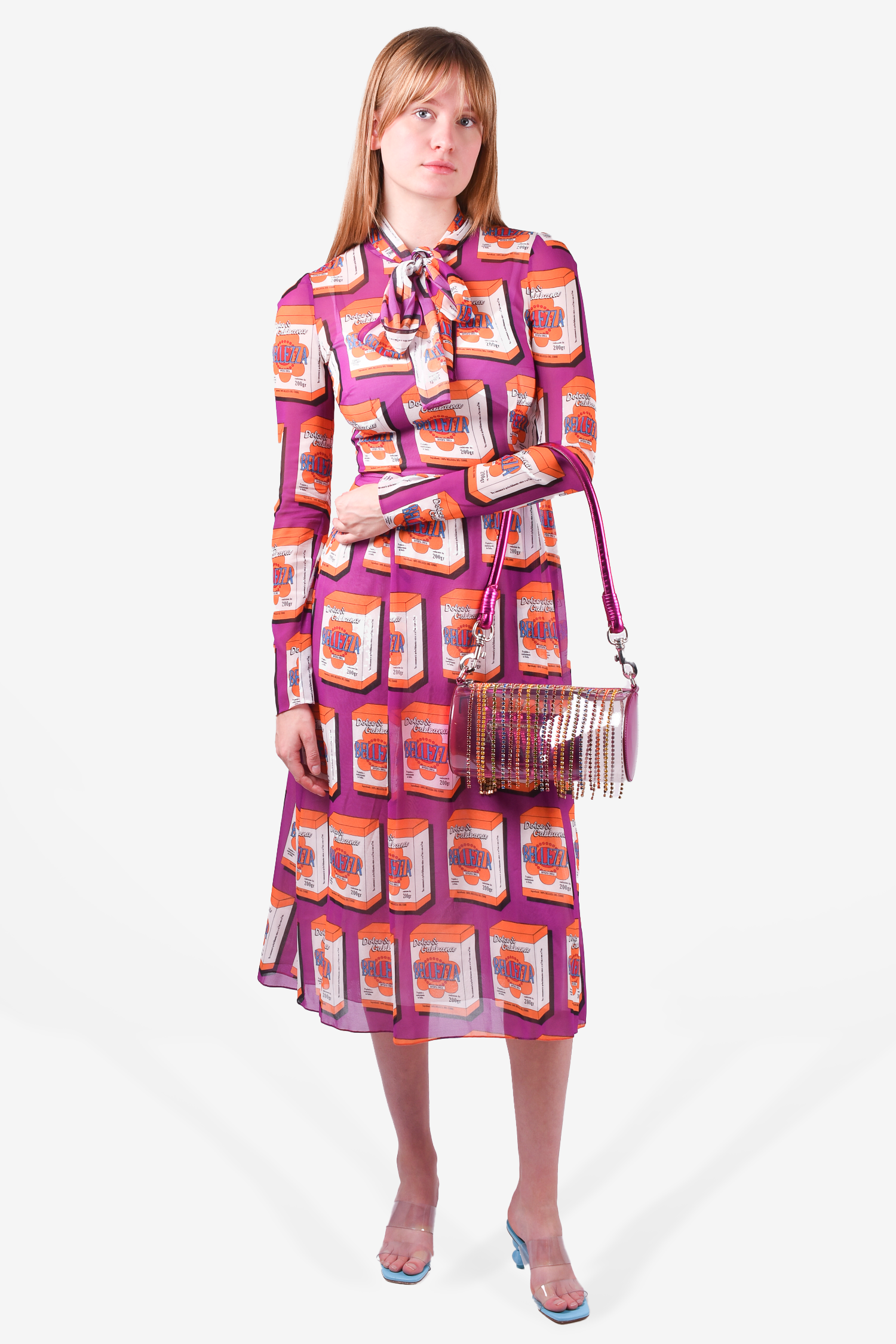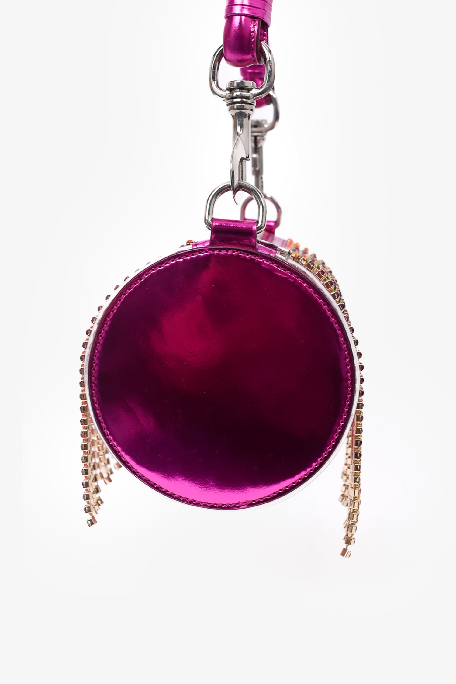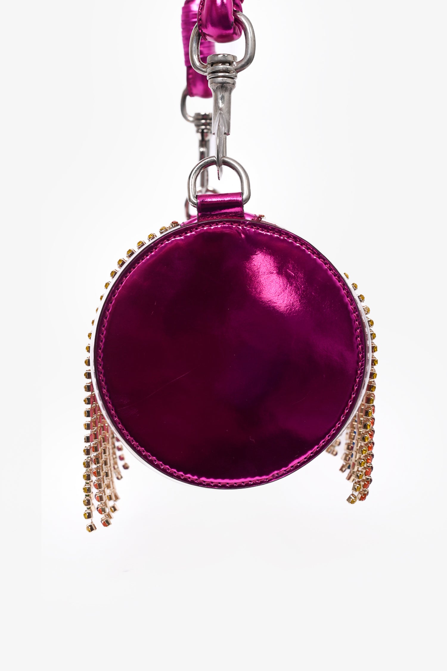 Refresh availabilityArea Pink/PVC Crystal Fringe Shoulder Bag with Attached Wallet. Top zip closure. Open interior. Interior wallet with zip closure. Silver-tone hardware. Detachable shoulder strap. Tonal stitching.
