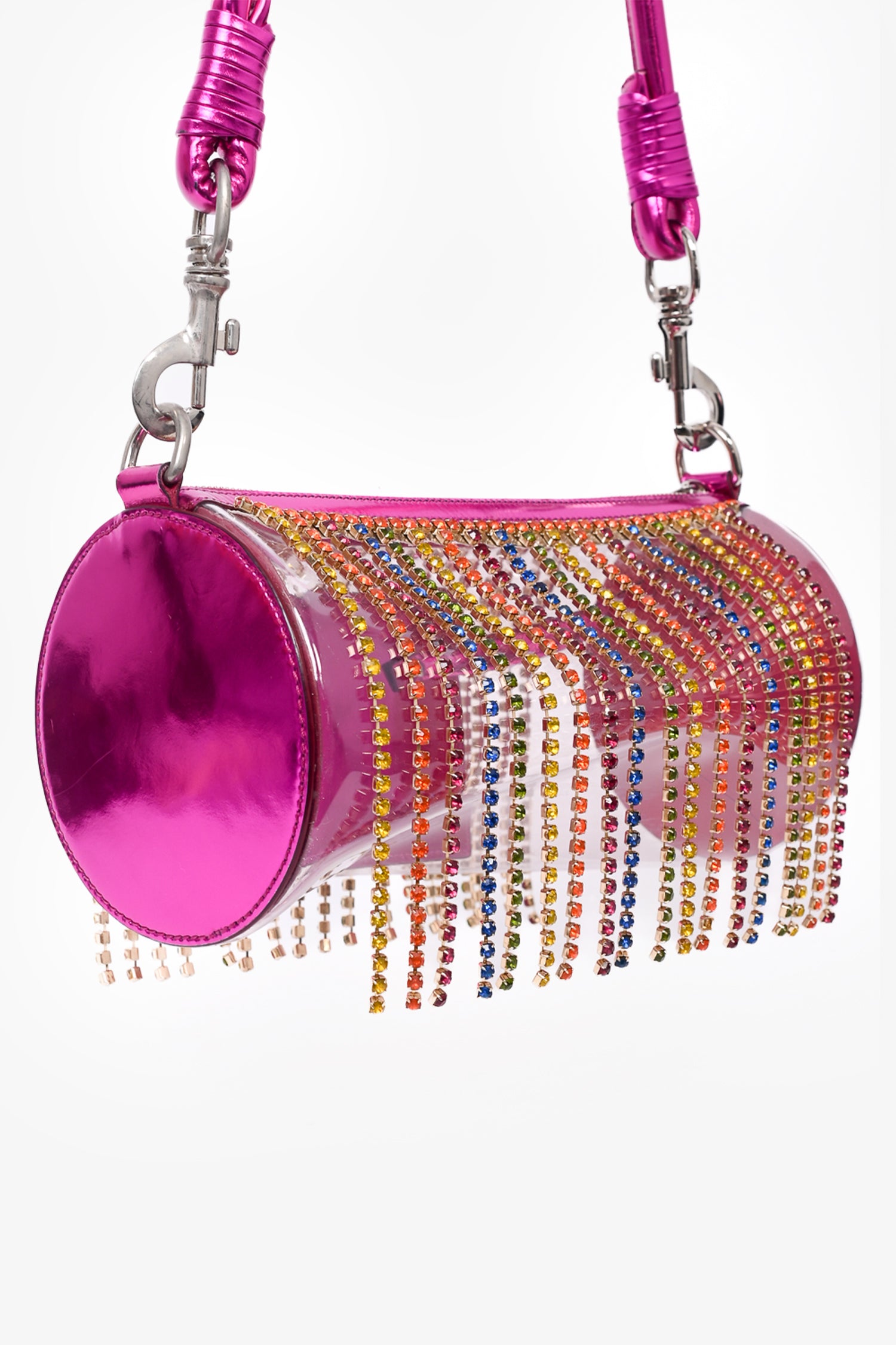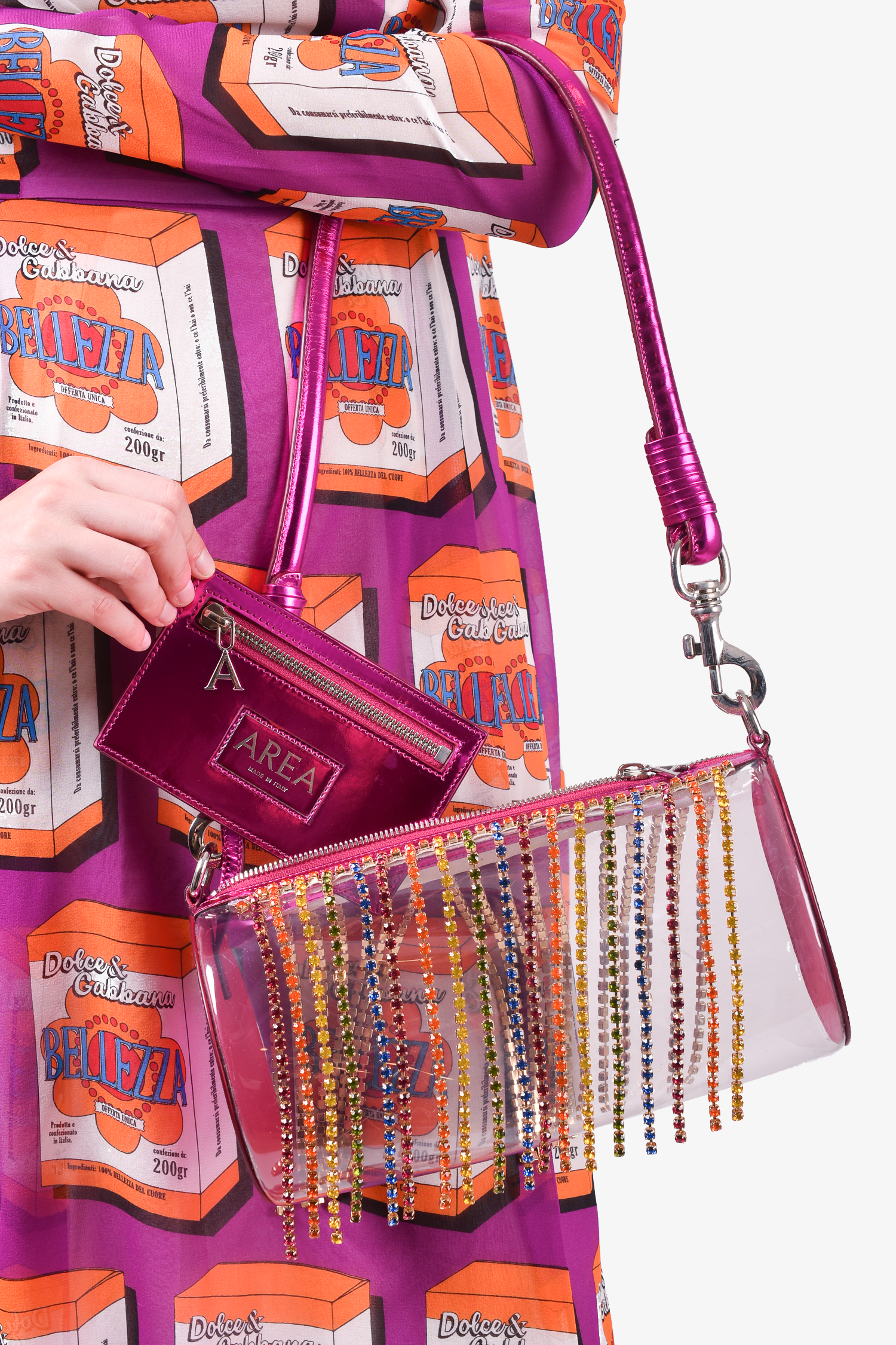 Area Pink/PVC Crystal Fringe Shoulder Bag with Attached Wallet
