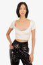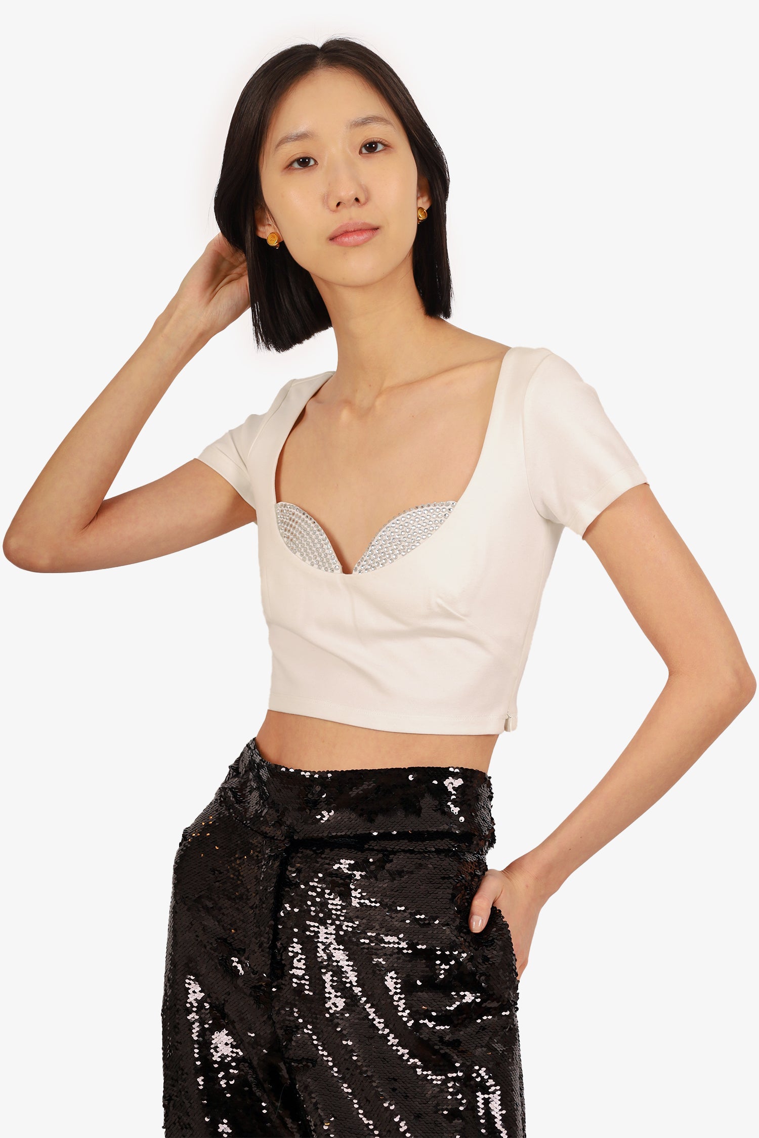 Refresh availabilityArea White Crystal Cup T-Shirt. Sweetheart neckline. Interior chest padding. Side zip closure. Lined. Tonal stitching.