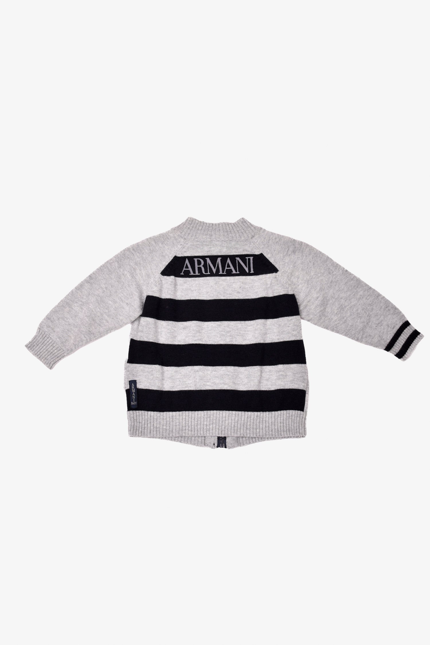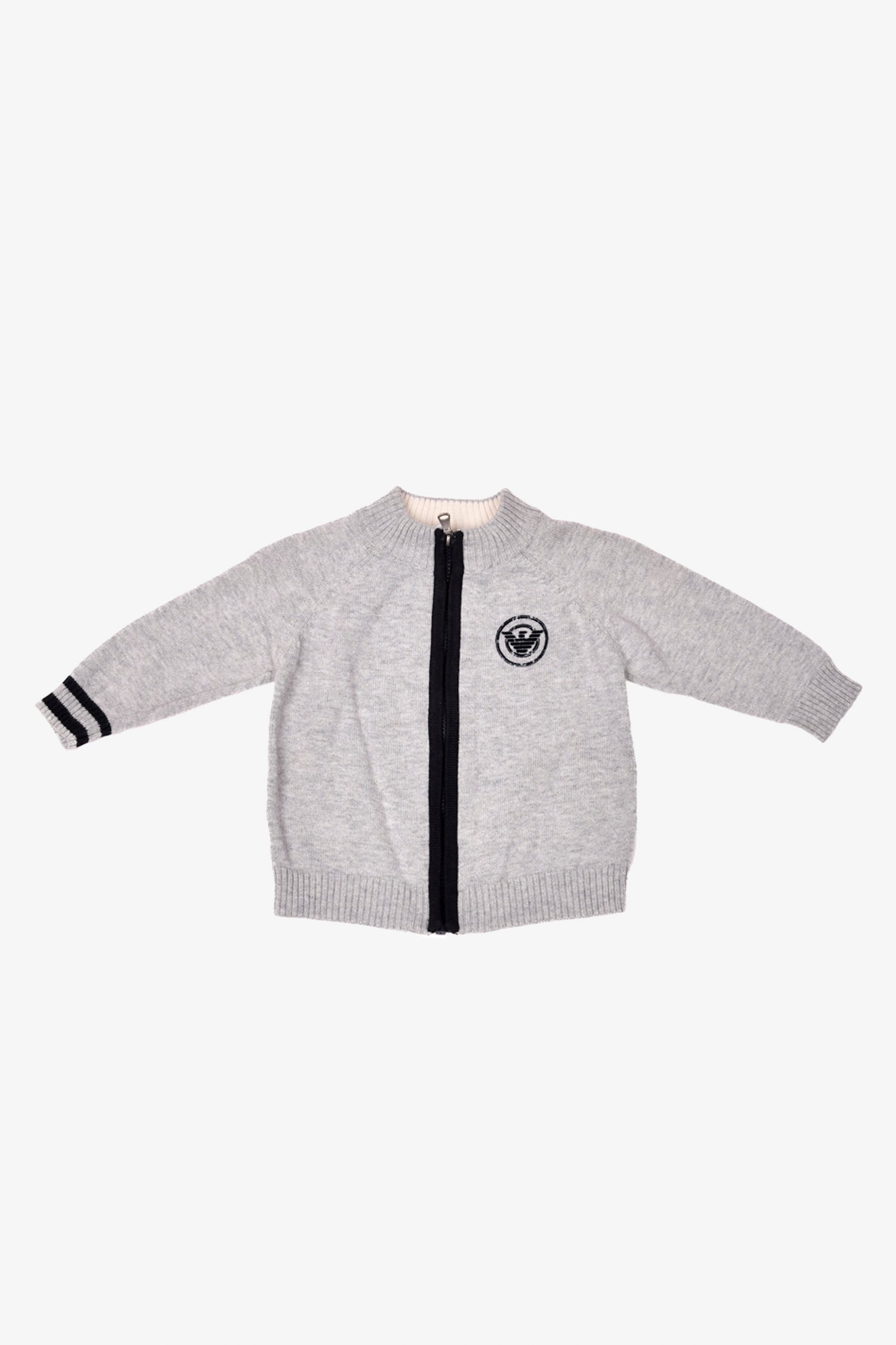 Refresh availabilityArmani Baby Grey Knit Zip-Up Jacket. Ribbed neck, cuffs and hem. Tonal stitching.