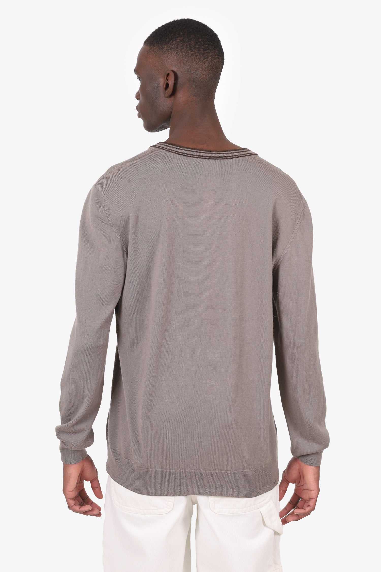 Refresh availabilityArmani Grey Wool V-Neck Sweater. Pull-on. V-neckline. Tonal stitching.