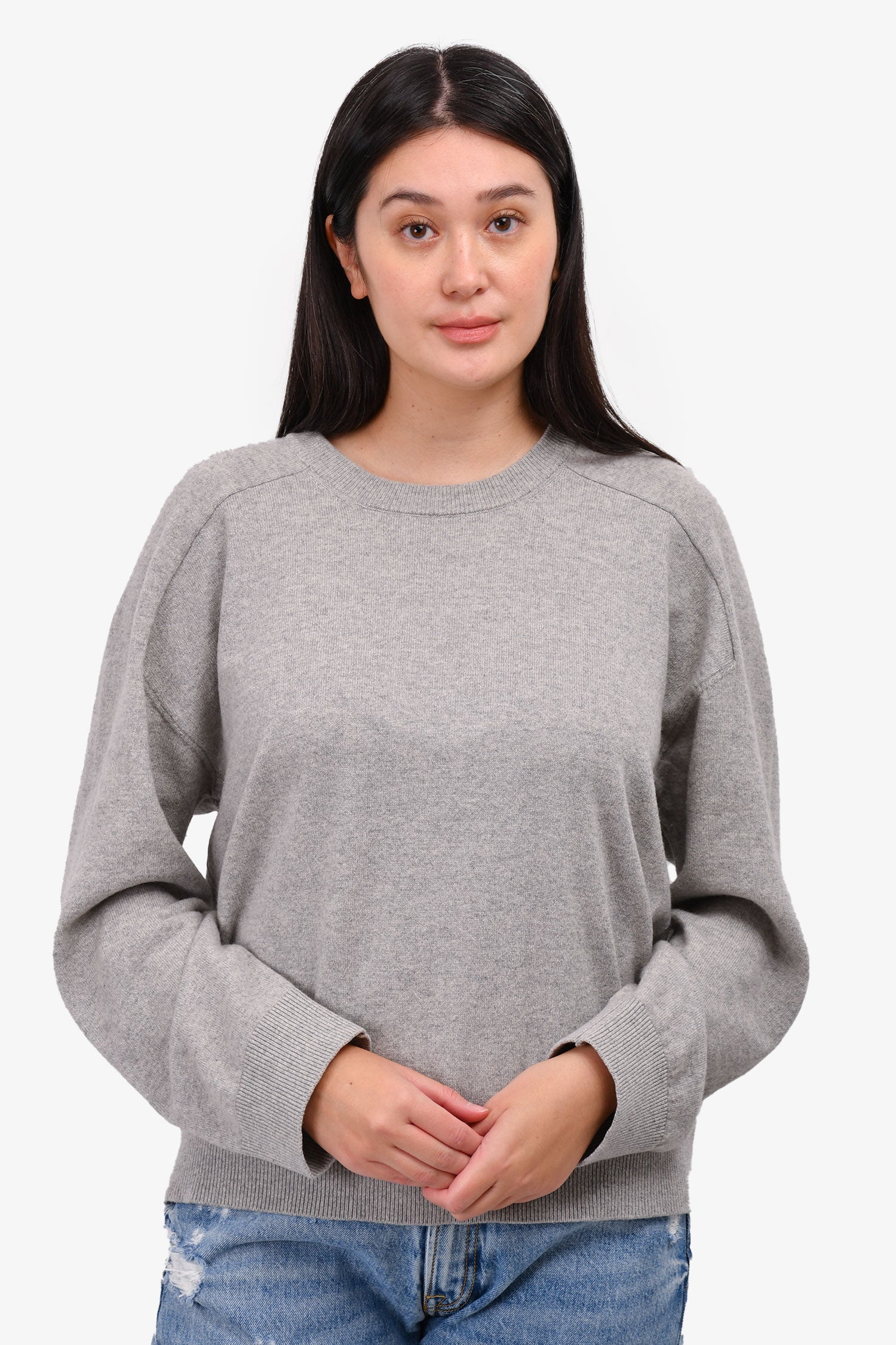 Refresh availabilityArmarium Grey Cashmere Pullover Sweater. Ribbed collar, sleeves and hem. Tonal stitching.
