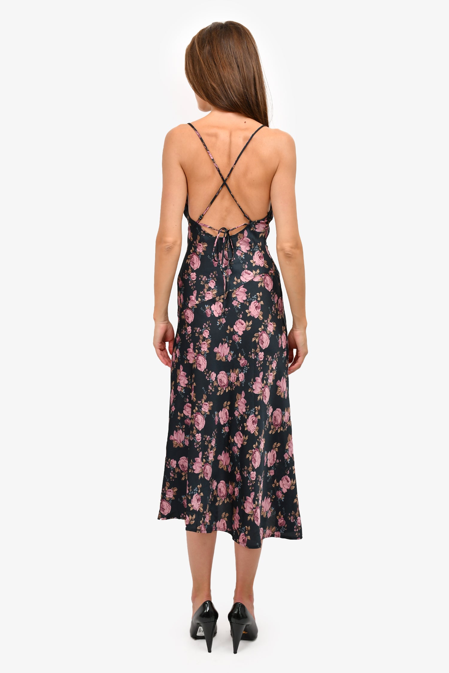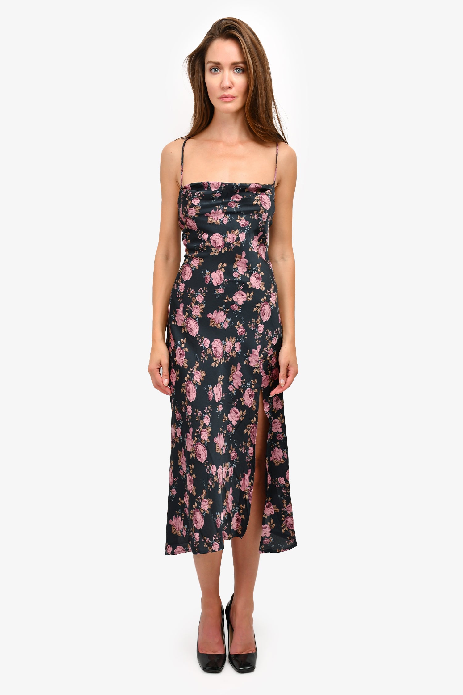 Refresh availabilityASTR the Label Blue Floral Dress. Adjustable straps. Cowl neckline. Front slit. Tonal stitching.