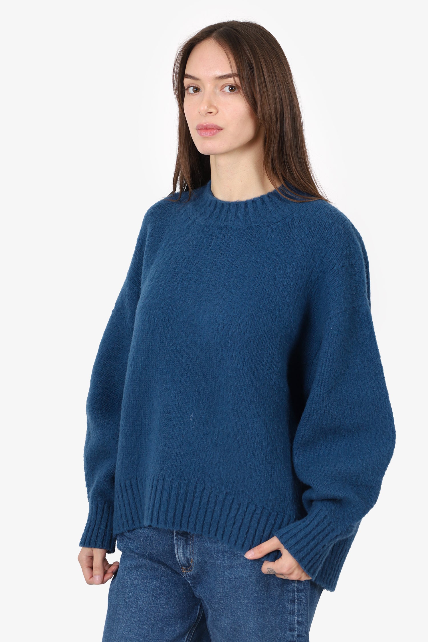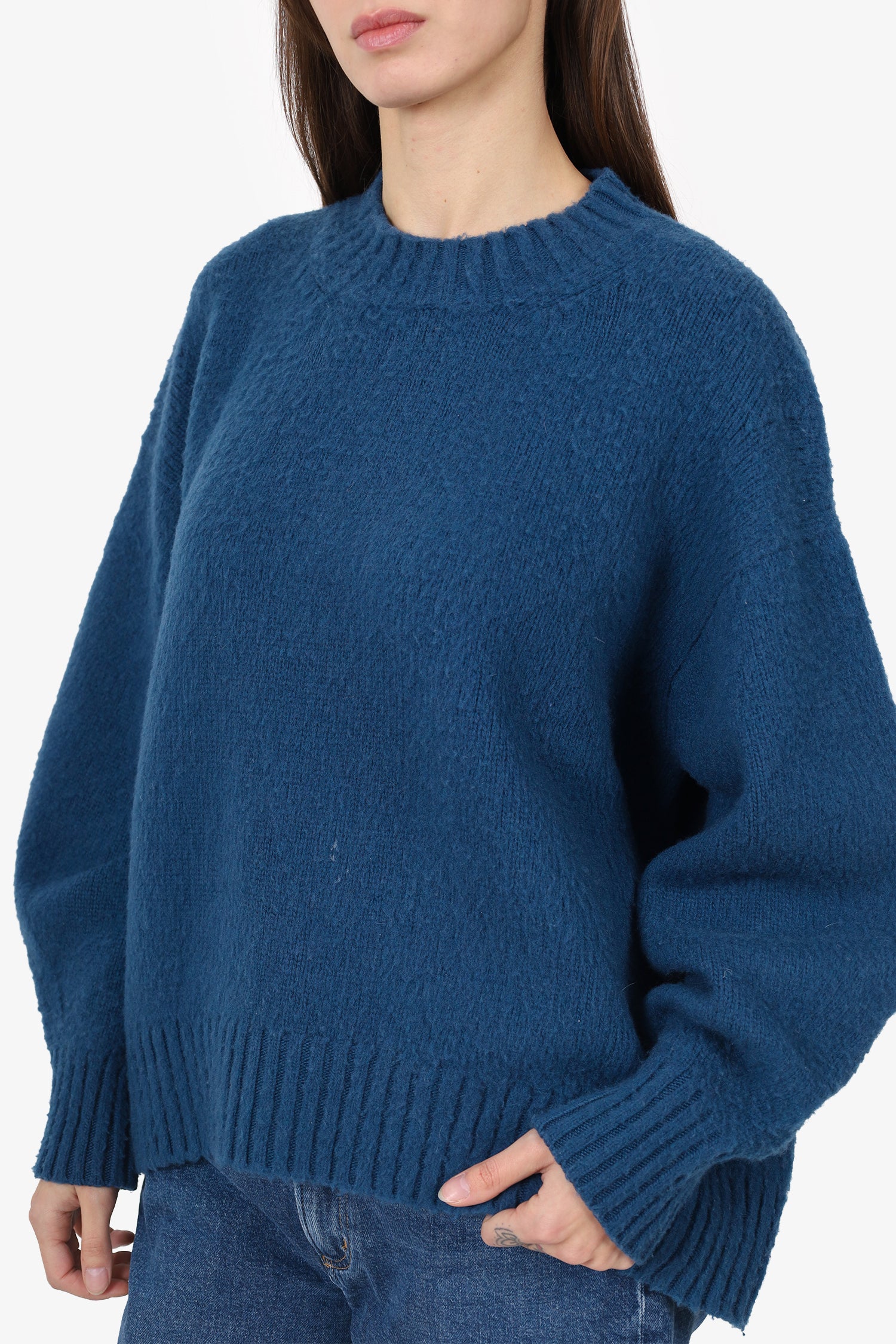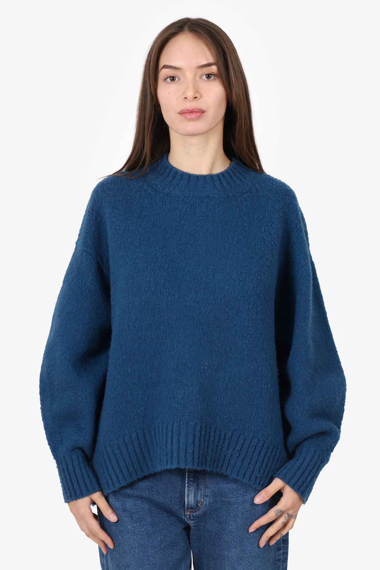 Refresh availabilityAvanti Toi Blue Sweater. Pull-on. Round neckline. Tonal stitching.