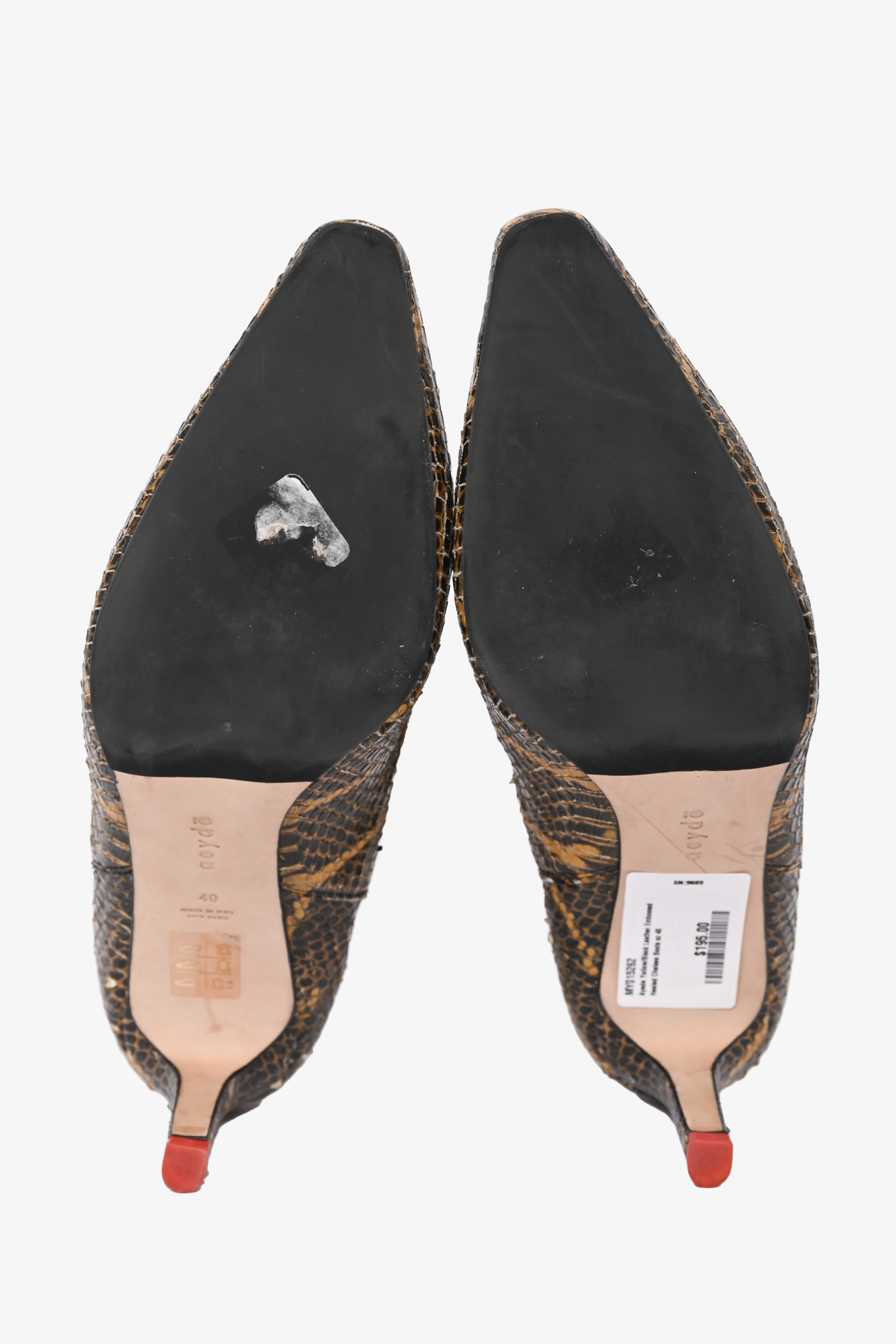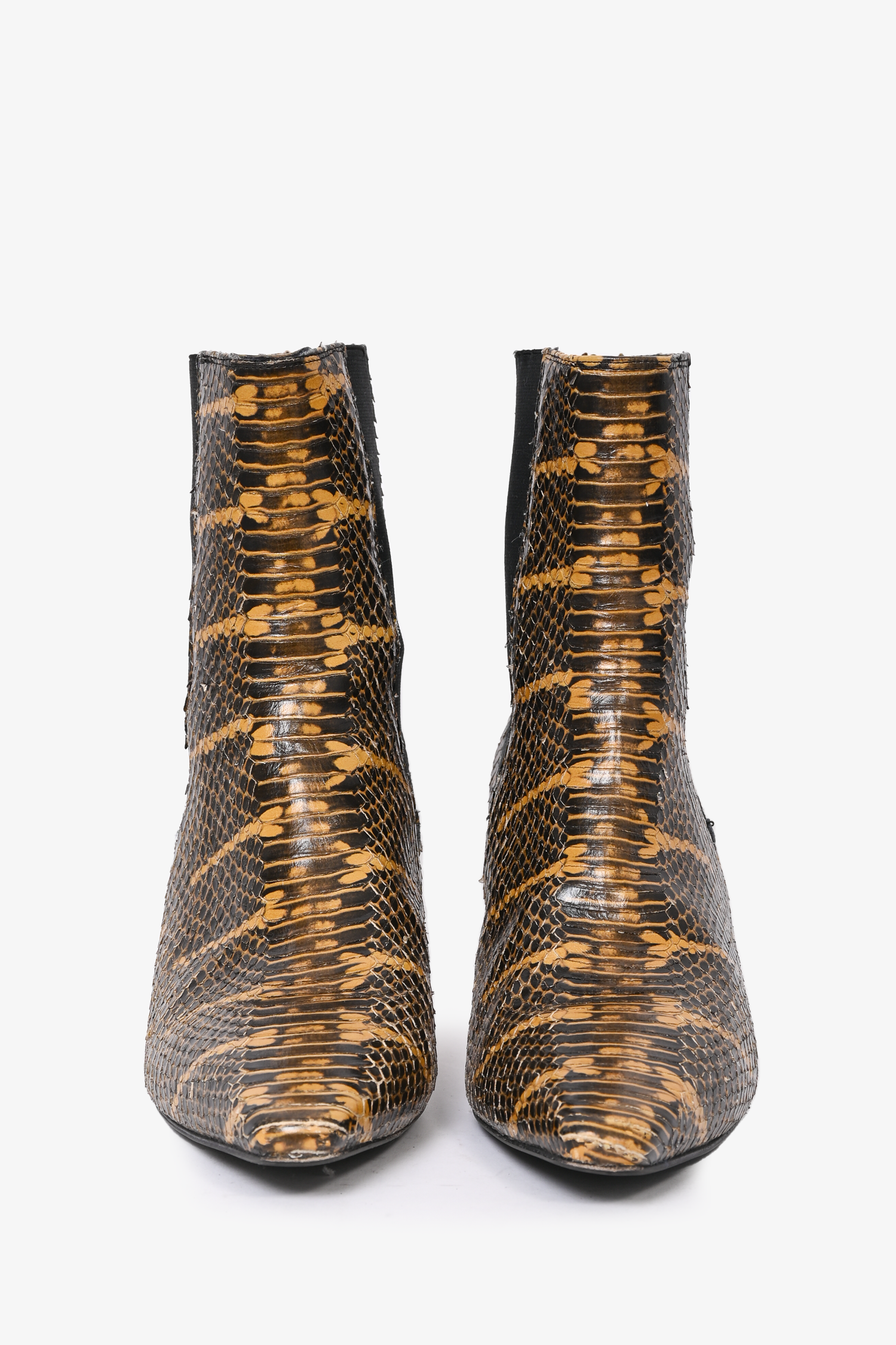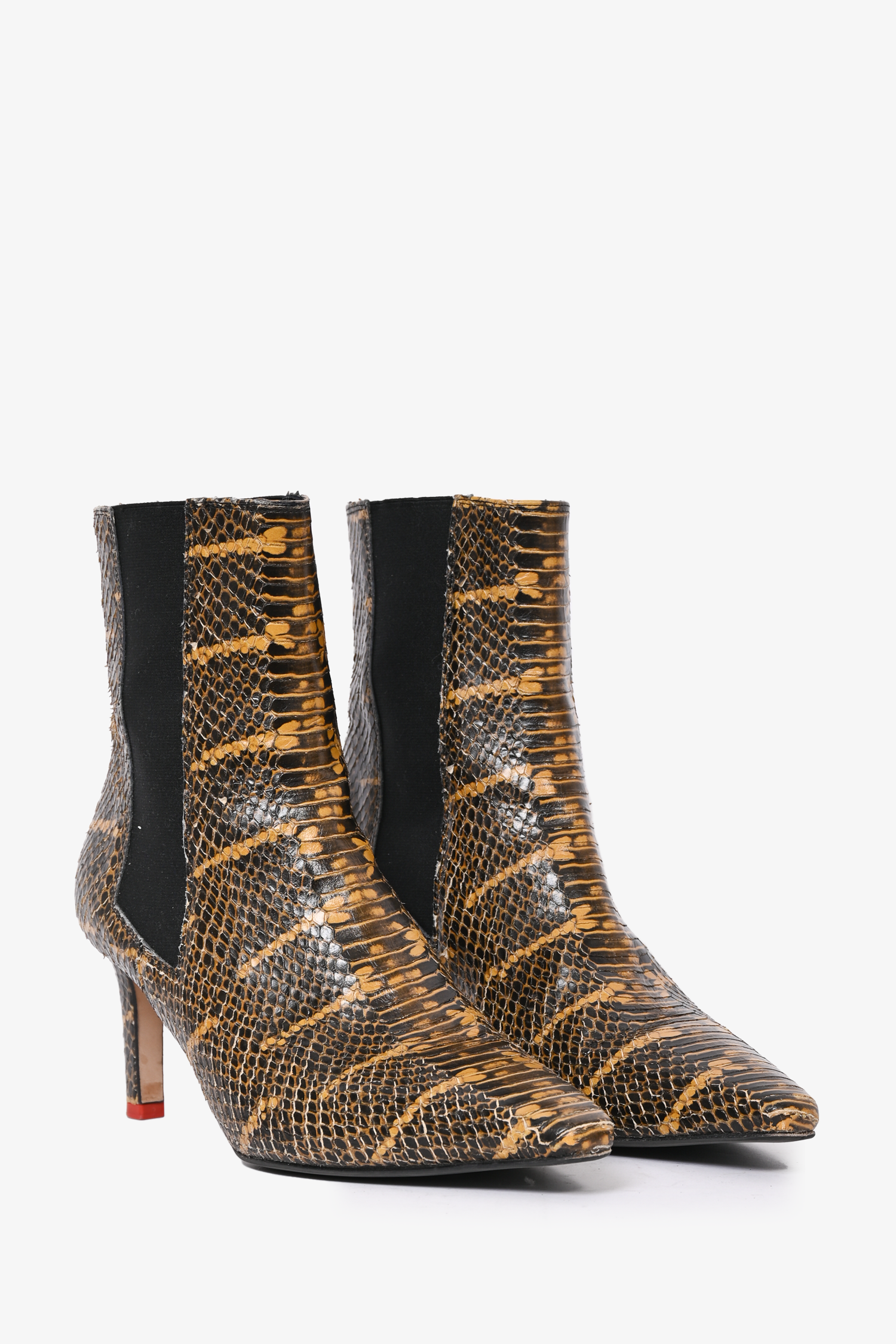 Refresh availabilityAyede Yellow/Black Leather Embossed Heeled Chelsea Boots Size 40. Pointer toe. Pull on. Tonal stitching.