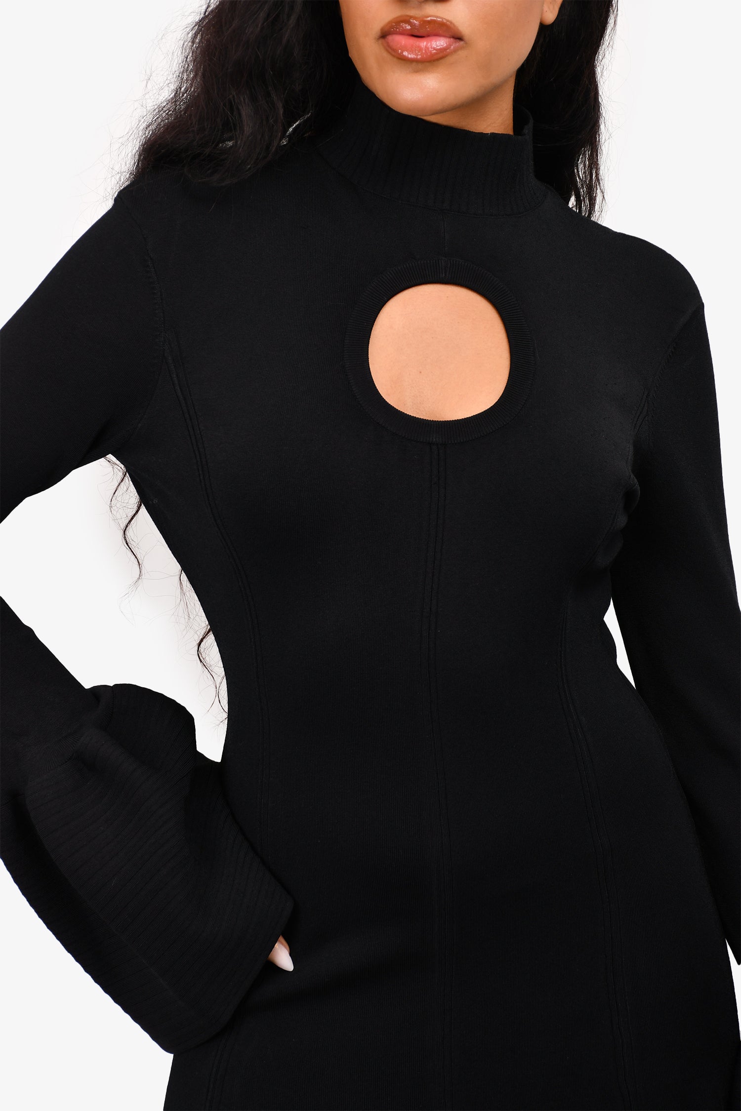 Refresh availabilityAZ Factory x Thebe Magugu Black Heavy Knit Cut Out Maxi Dress. Rear zip up closure. Tonal stitching