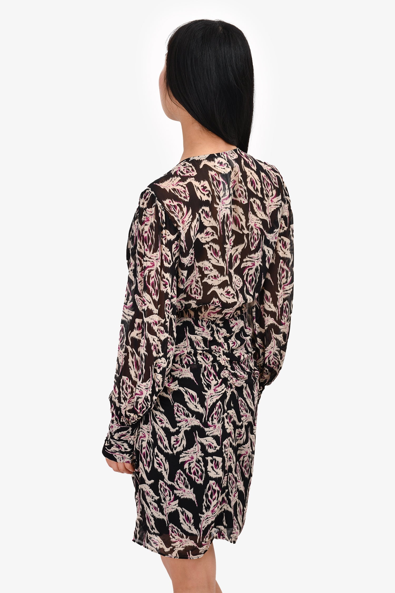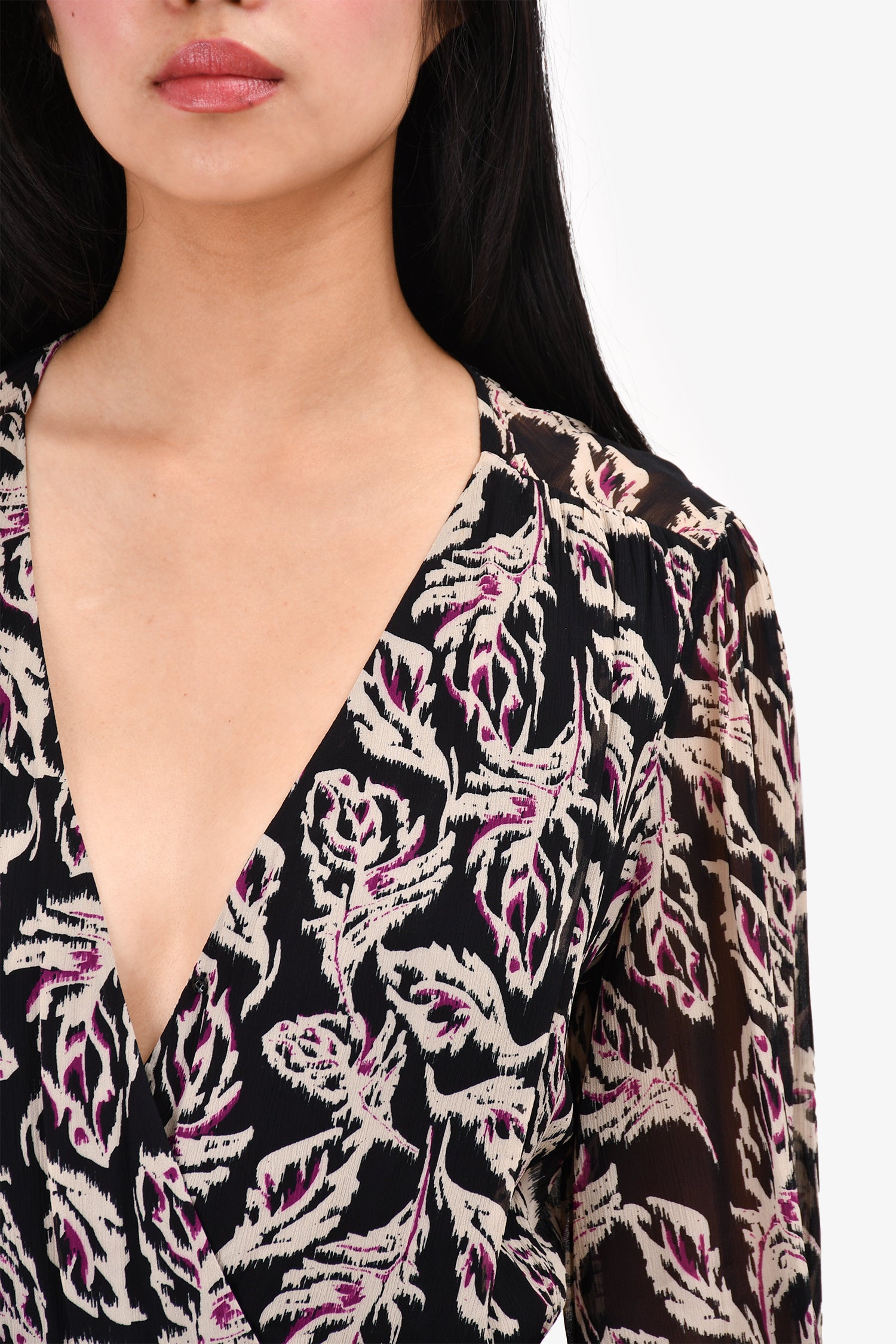 Refresh availabilityBa&Sh Black Patterned Ruched Dress. V-neck. Lined. Button closure on the cuffs.