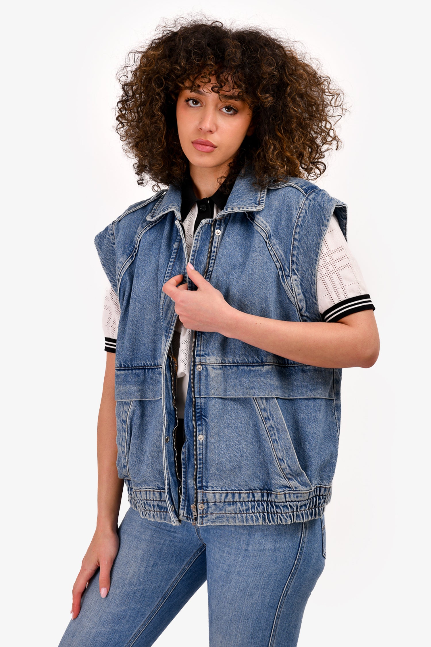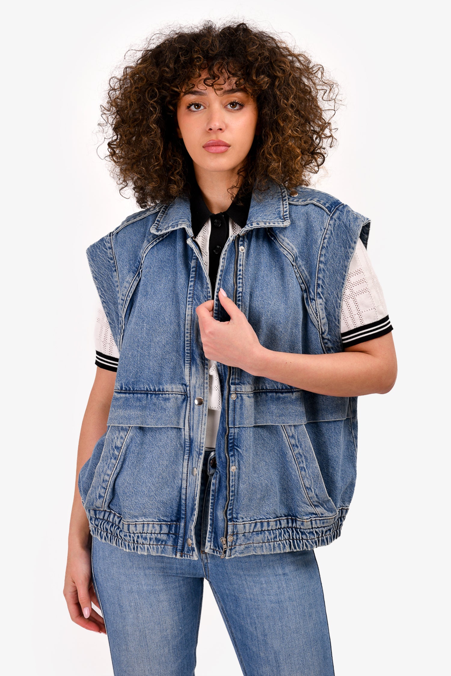 Refresh availabilityBa&sh Blue Denim Vest. Front zip and snap-button closures. Front pockets. Unlined.
