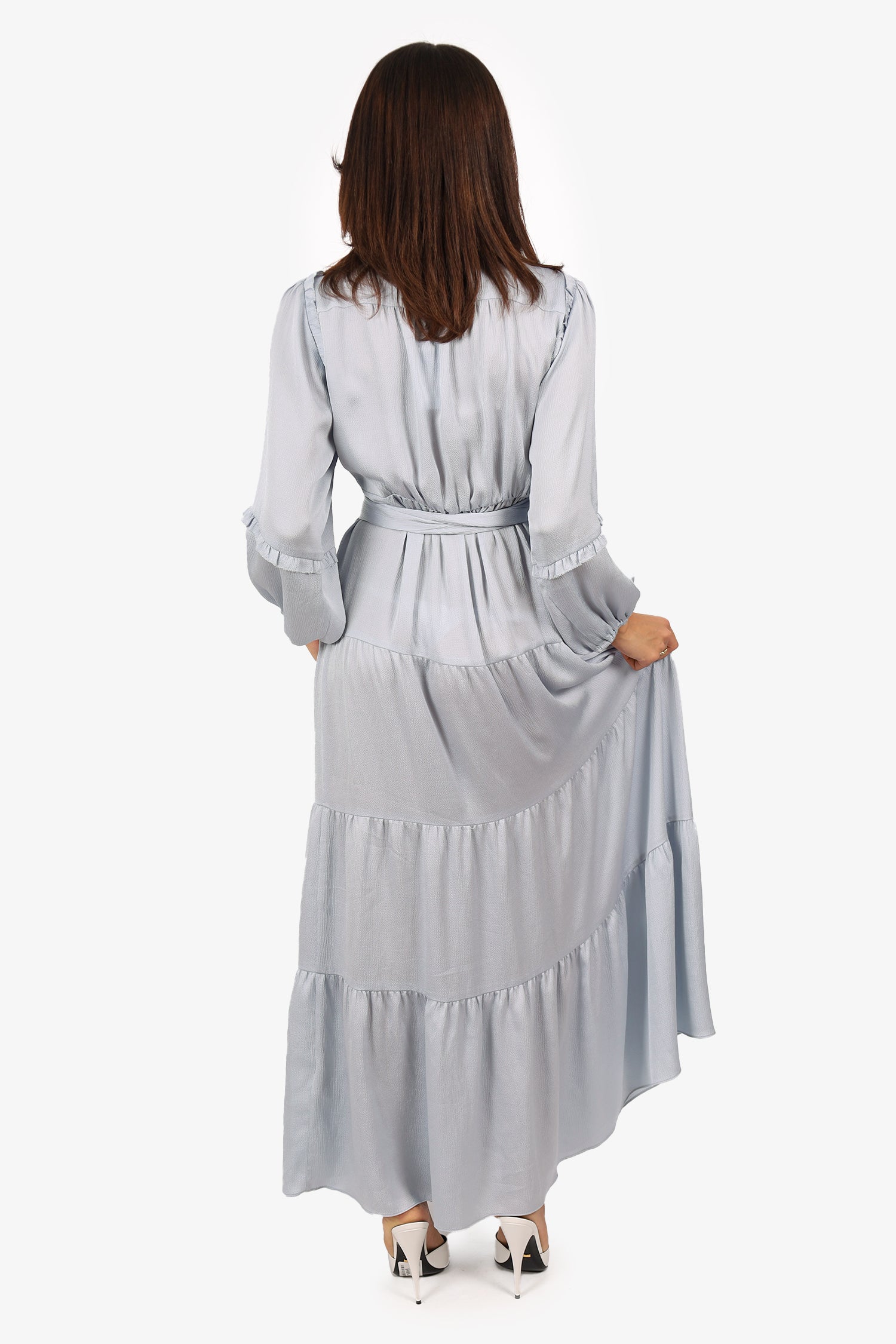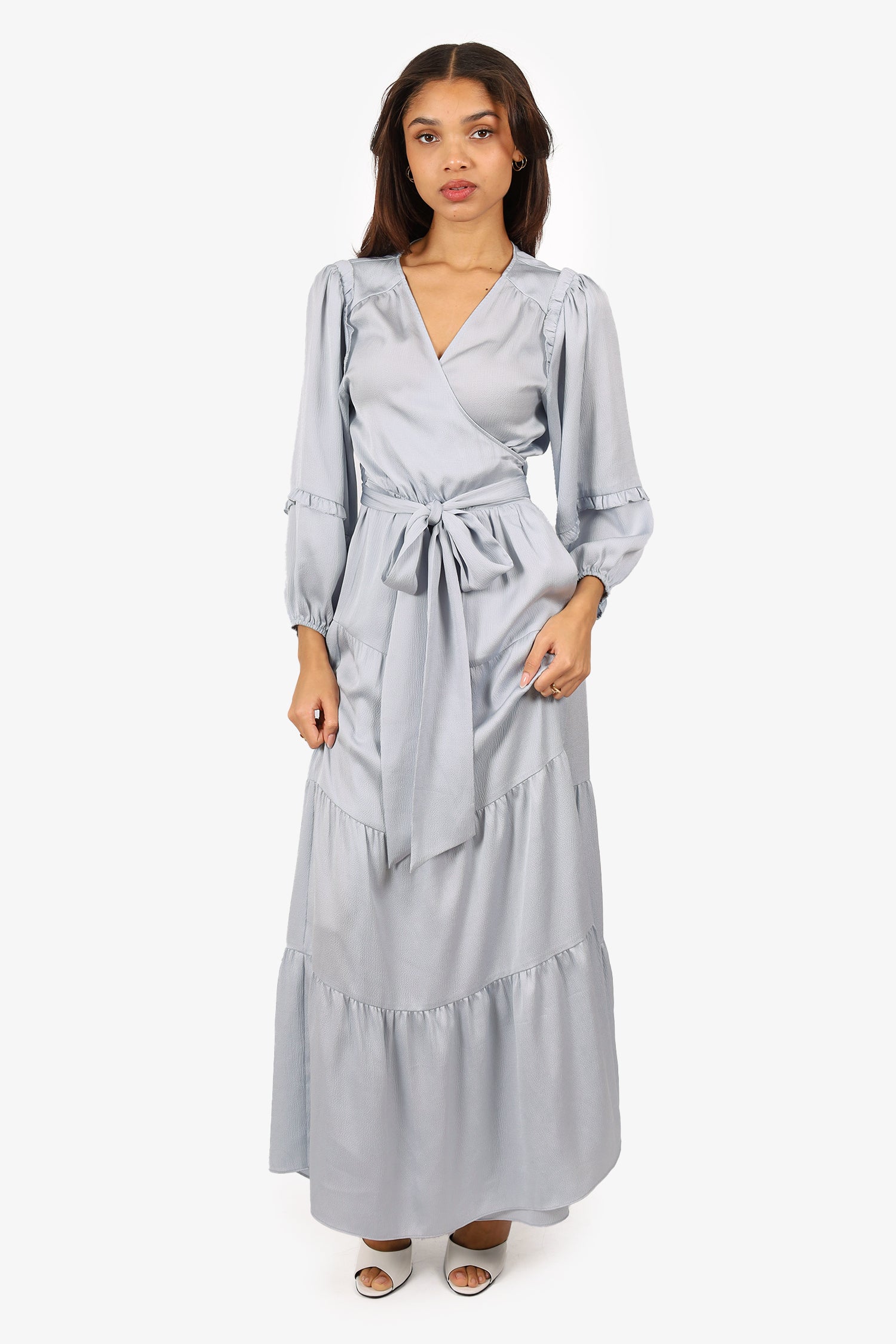 Refresh availabilityBa&sh Blue Wariane Tiered Maxi Wrap Dress. V-neckline. Front wrap design with tie-up closure. Elasticated sleeve cuffs. Tonal stitching. Unlined.