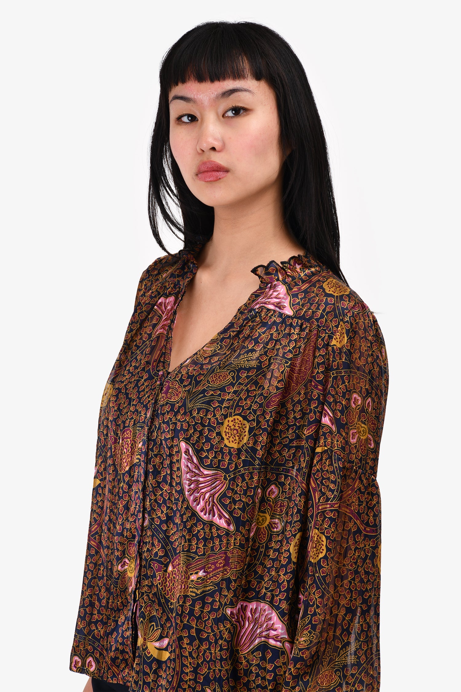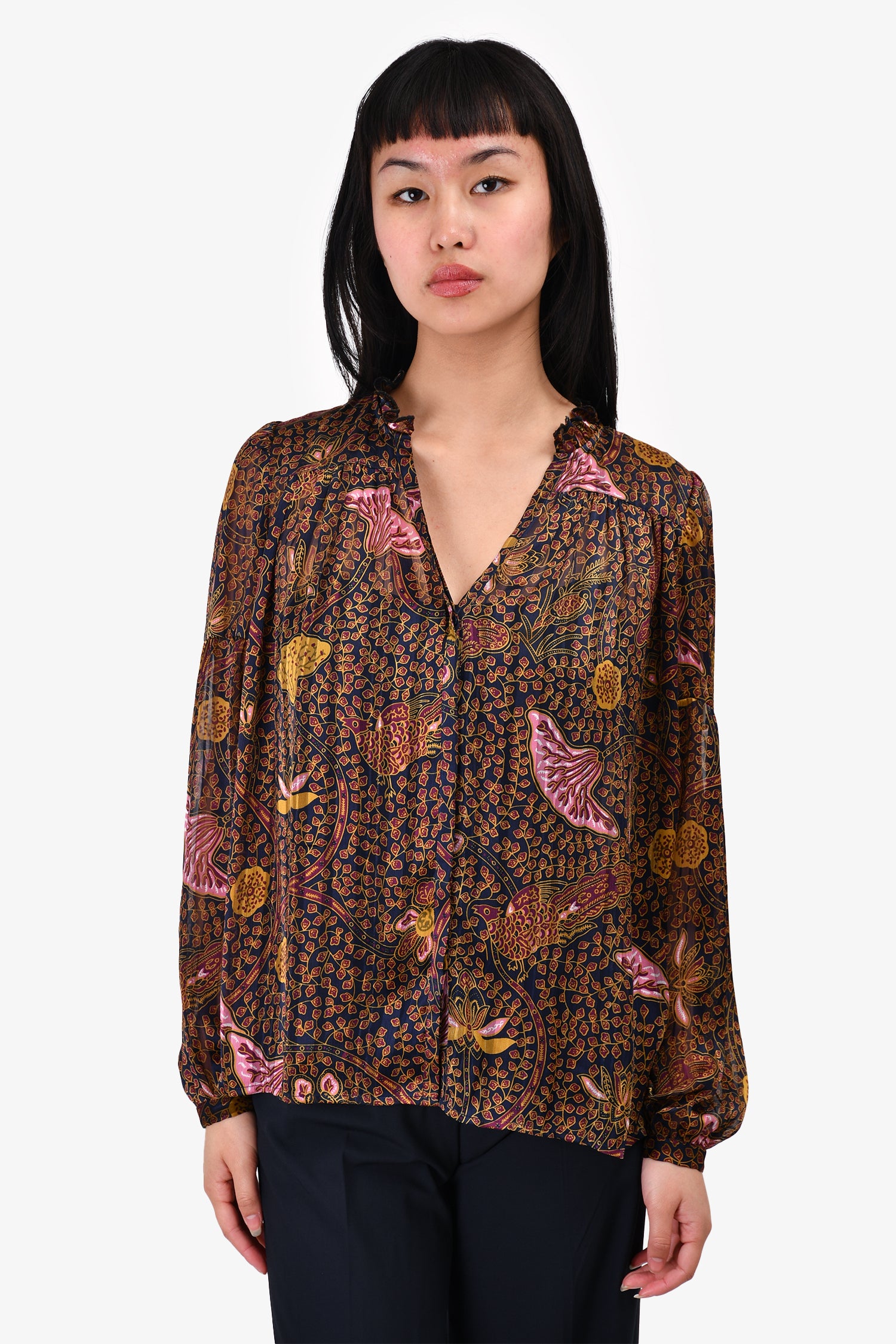 Refresh availabilityBa&Sh Brown Printed Blouse. V-neck. Front button-up closure. Button closure on the cuffs.