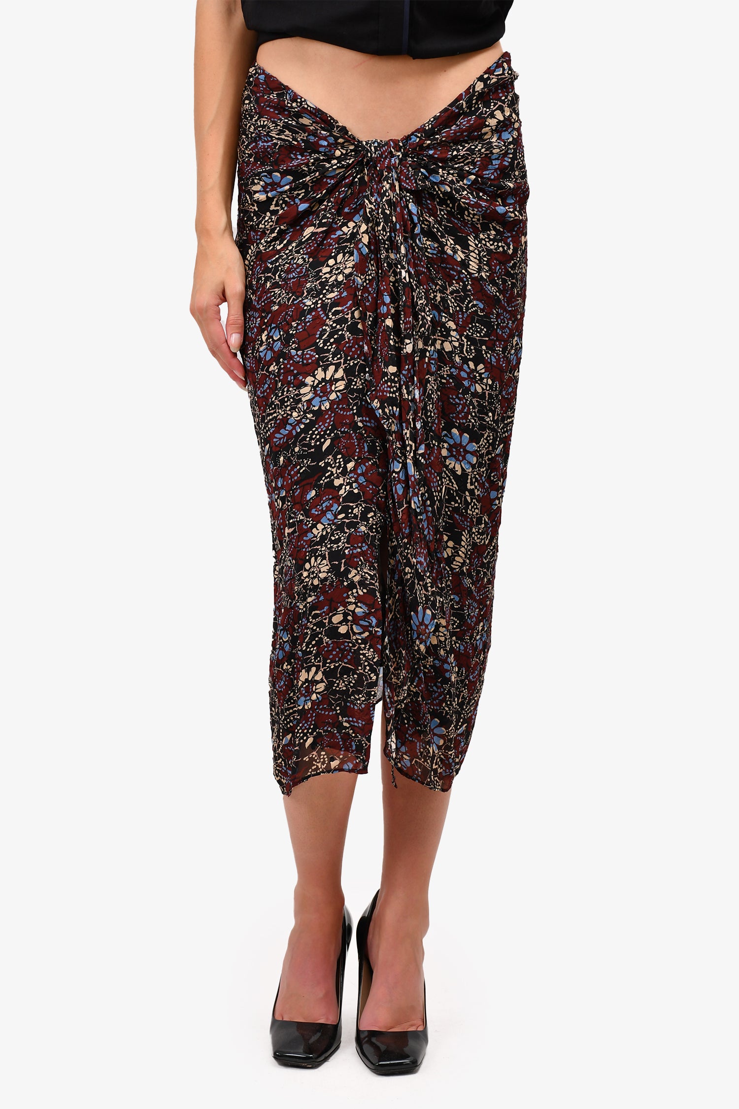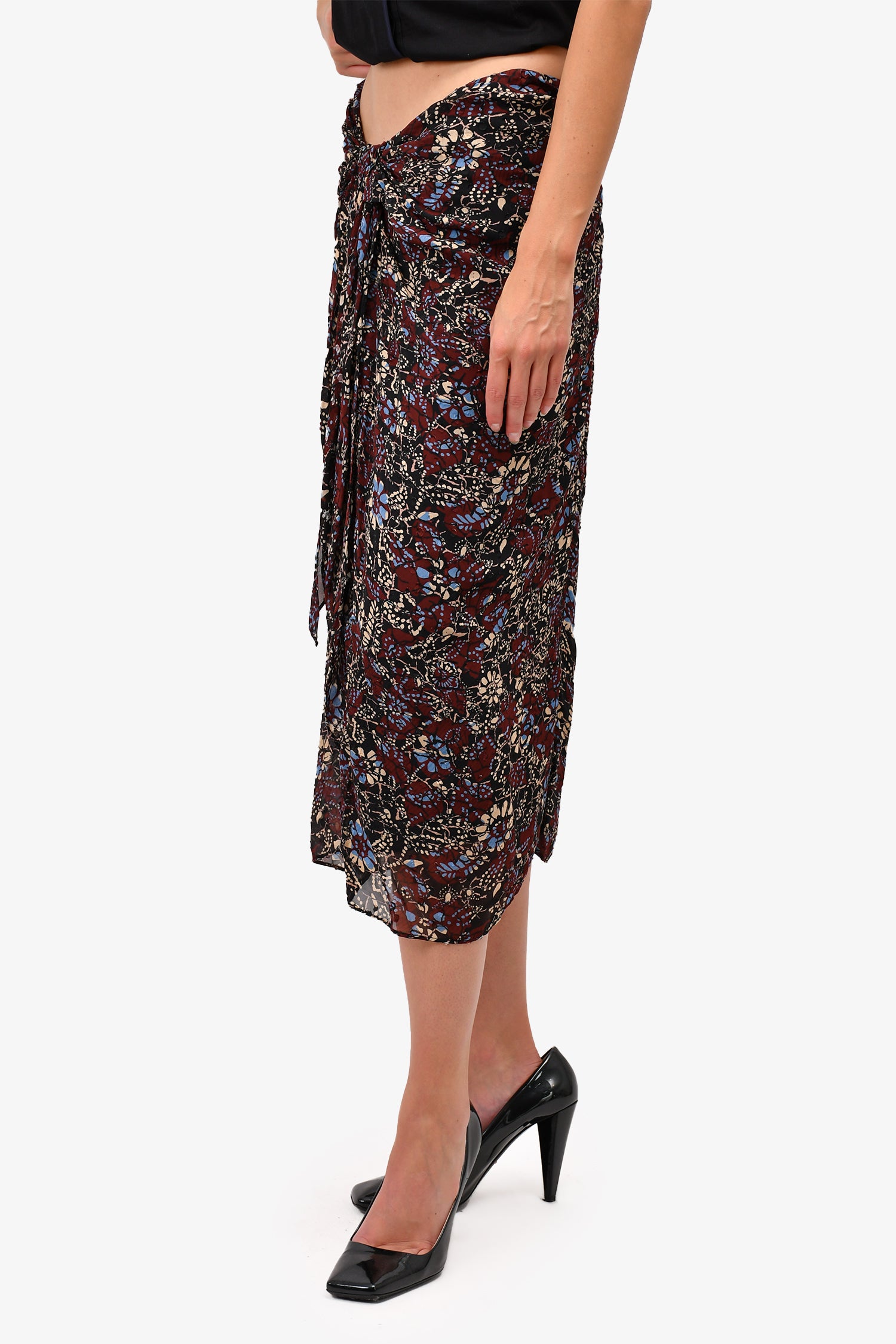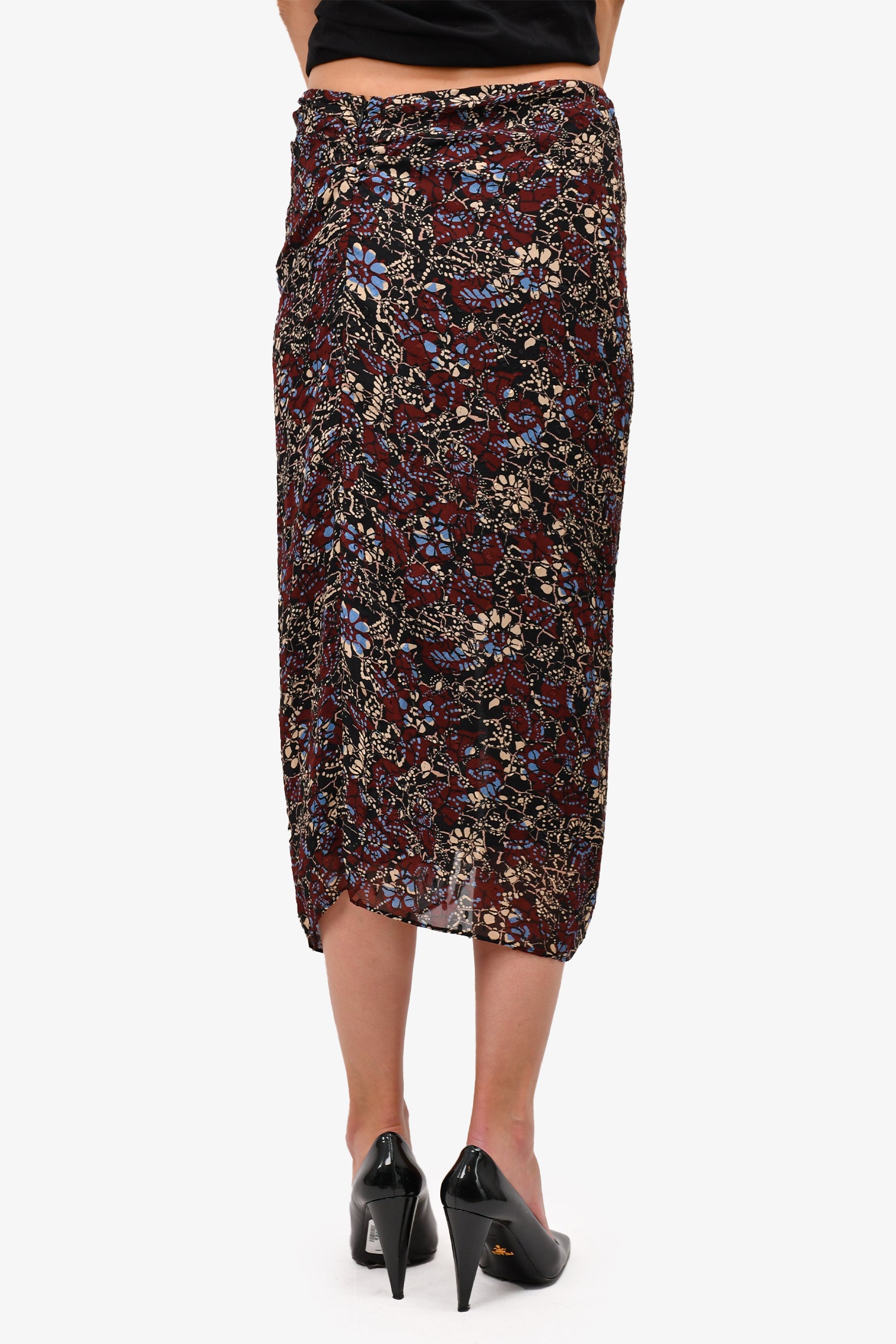 Refresh availabilityBa&sh Burgundy Patterned Midi Skirt. Hidden back zipper closure. Ruffled and gathered at the front. Tonal stitching.
