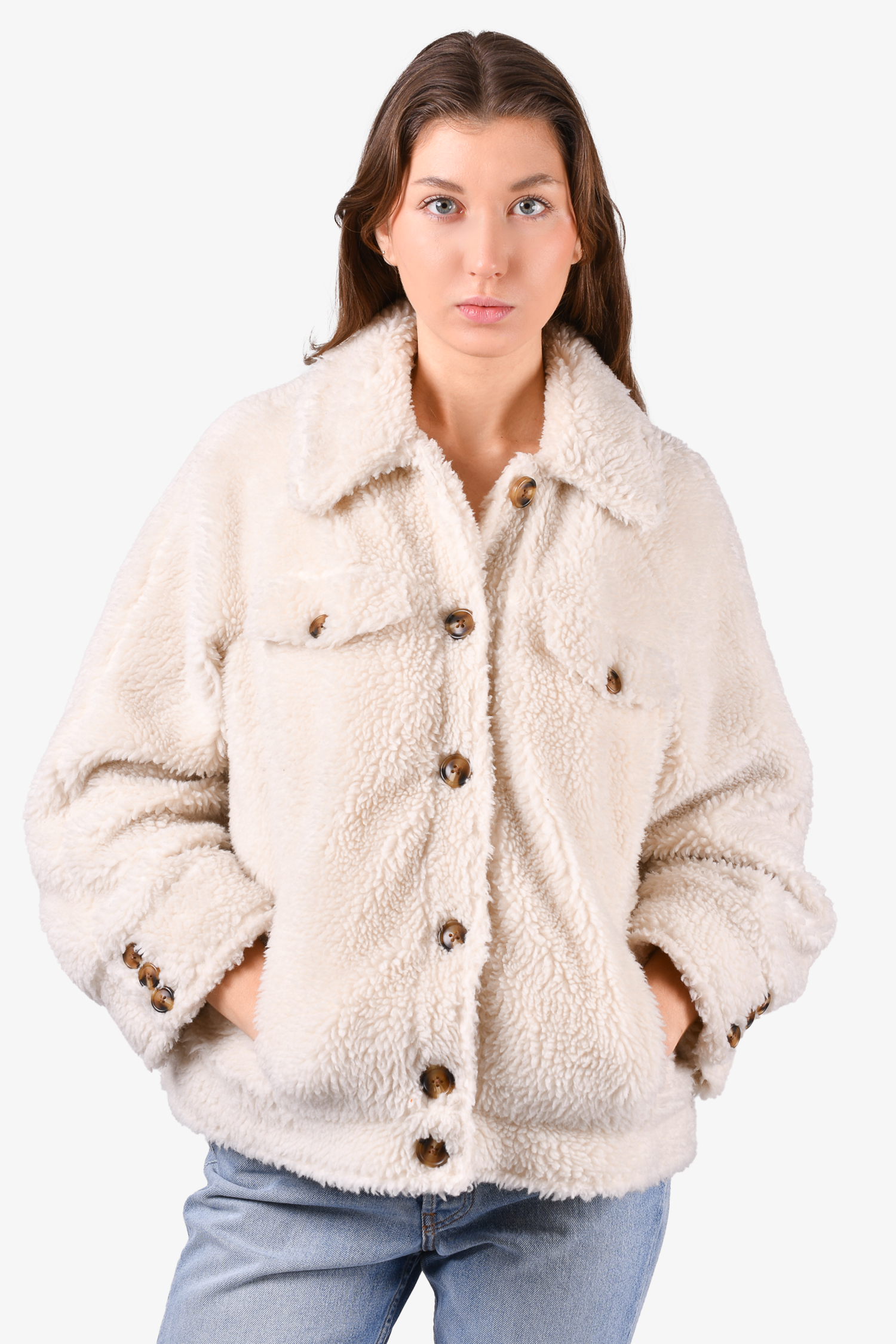 Refresh availabilityBa&sh Cream Teddy 'Lady' Coat. Front button-up closure. Front pockets. Tonal stitching.