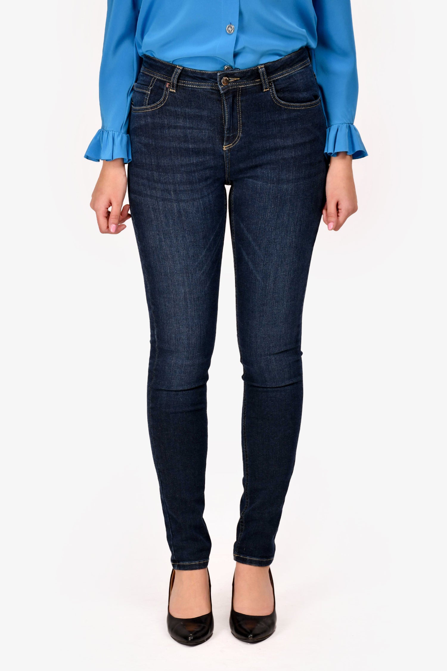 Refresh availabilityBa&sh Dark Blue Denim Skinny Jeans. Front zip-up and button closure. Five style slip pockets. Contrast stitching.