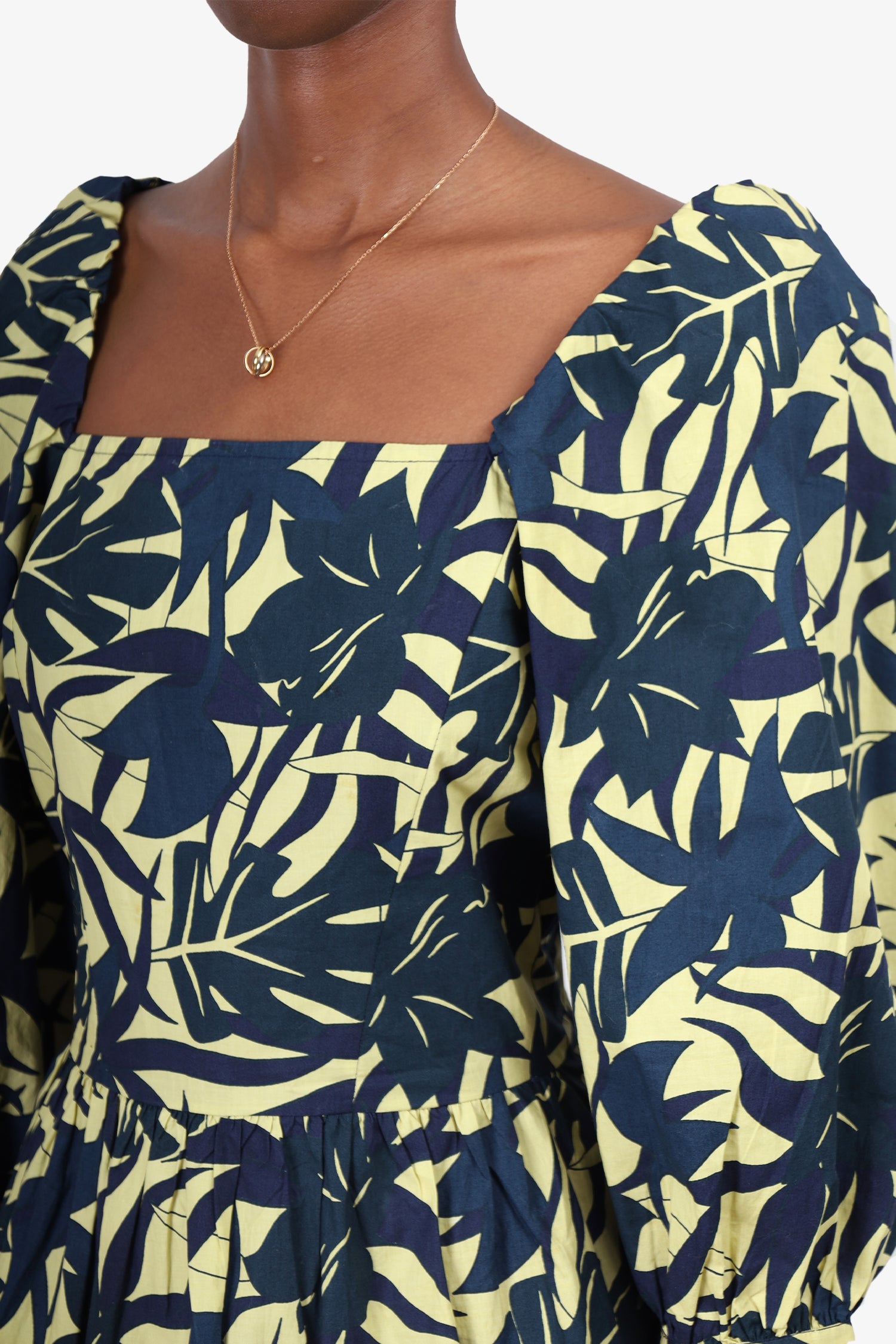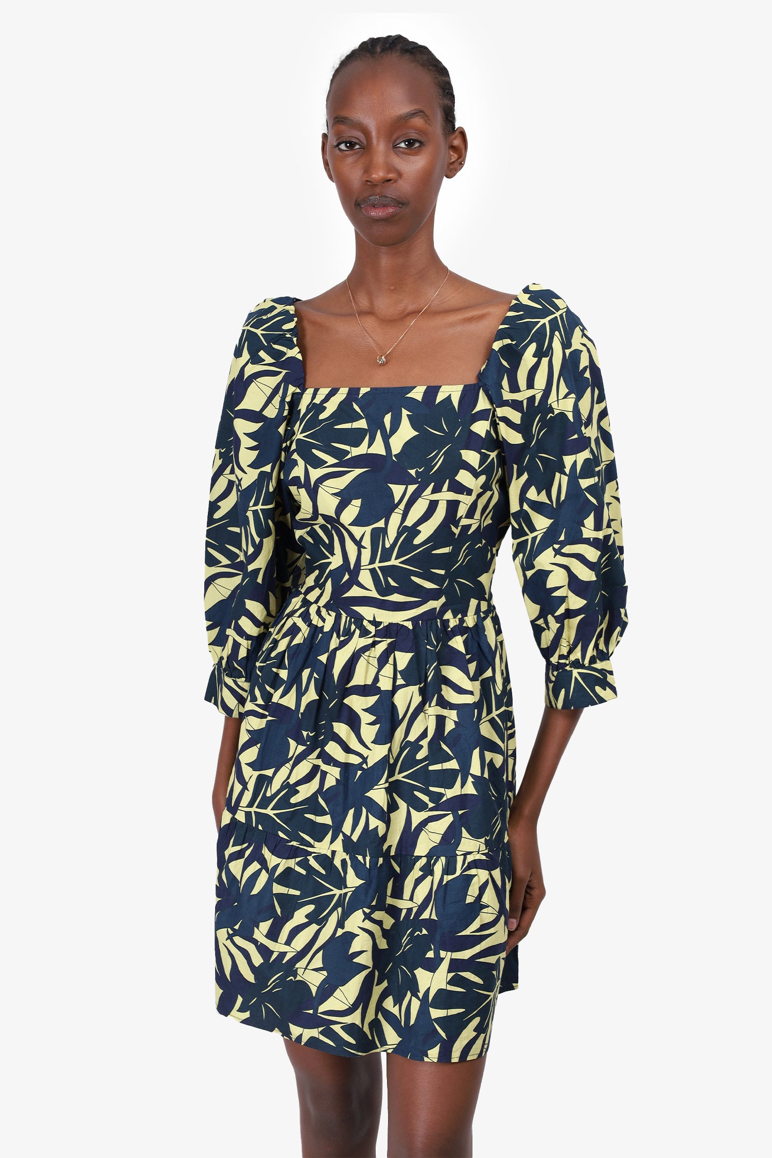 Refresh availabilityBa&sh Green Leaf Print Tiered Mini Dress. Slip-on. Square neckline. Button-up on sleeve cuffs. Unlined. Tonal/contrast stitching.