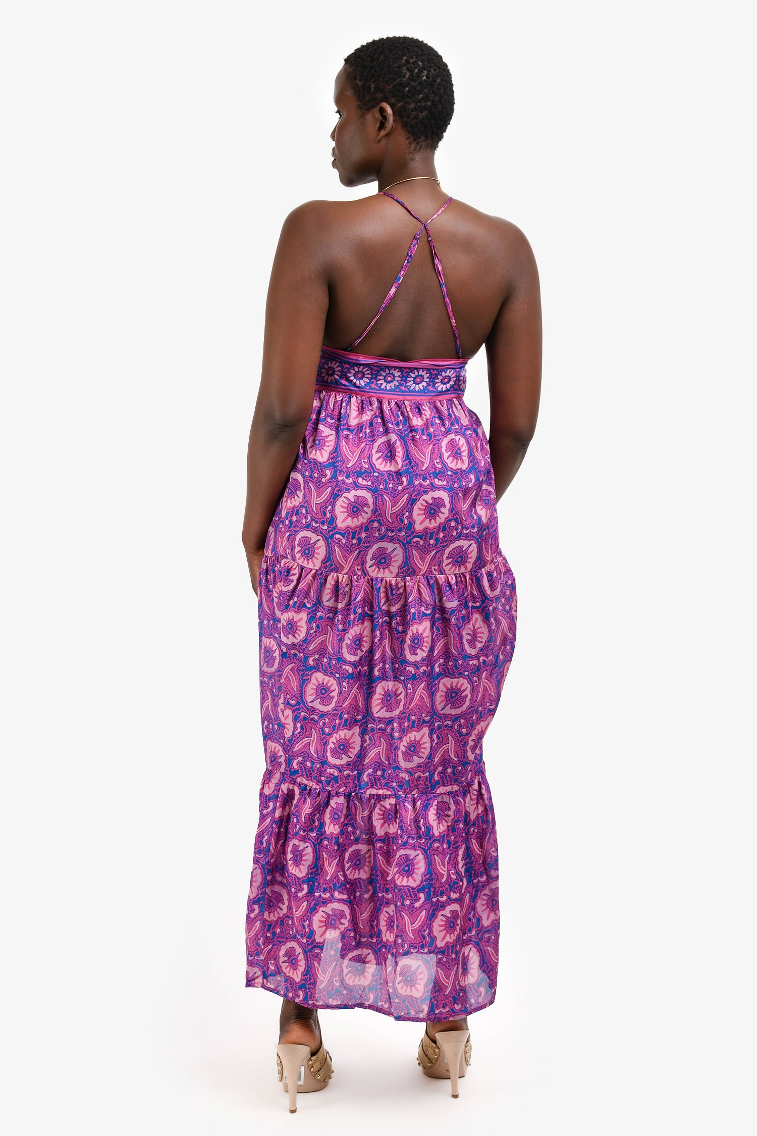 Refresh availabilityBa&sh Purple/Multicoloured Patterned Maxi Dress + Kimono Set. V-neck maxi dress with front hidden snap button closure. Matching open-front kimono with wide sleeves and attachable tonal tie belt. Tonal stitching.
