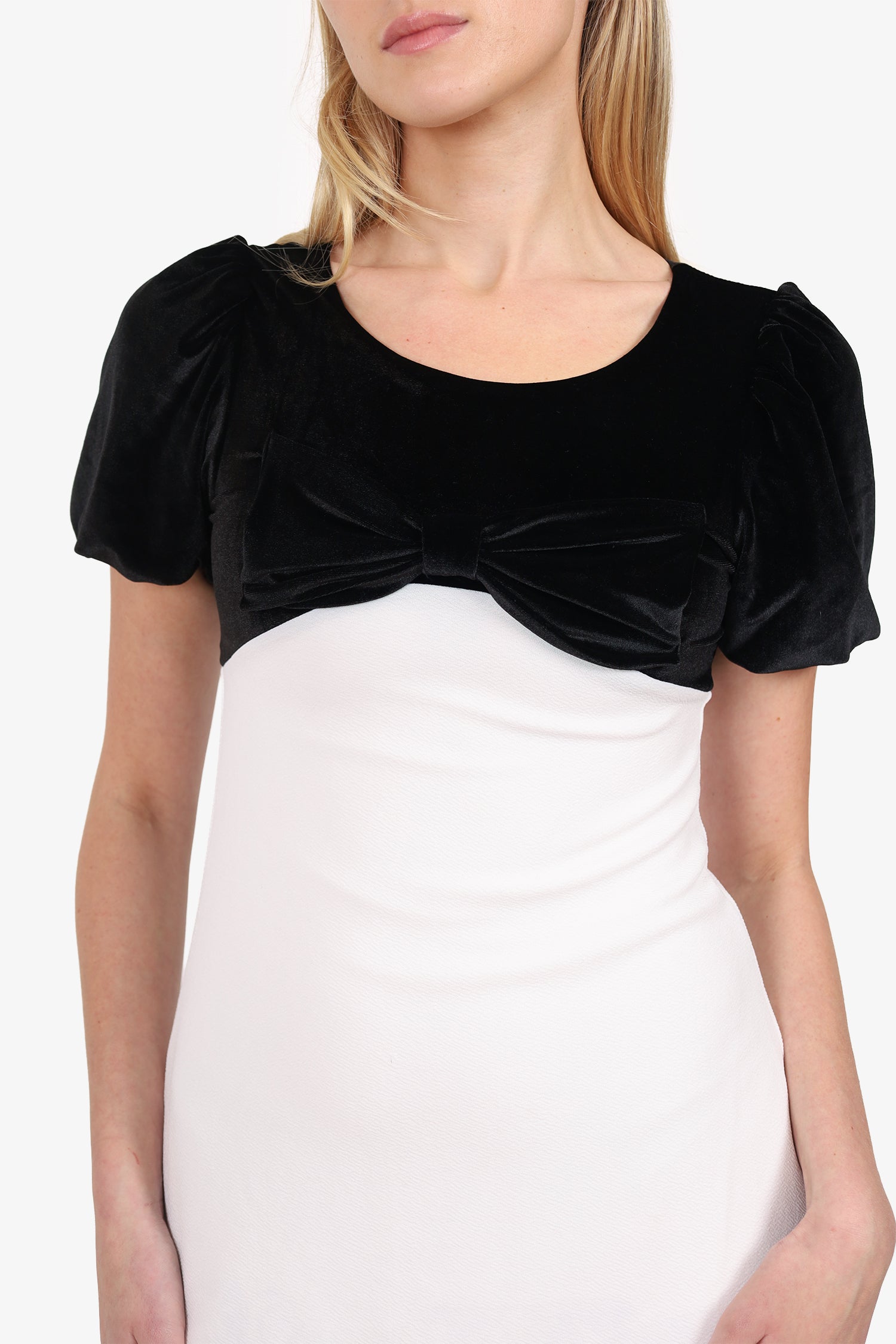 Refresh availabilityBadgley Mischka Black/White Velvet Short Sleeve Mini Dress. Slip-on. Round neckline. Rear button-up closure. Lined interior. Tonal stitching.