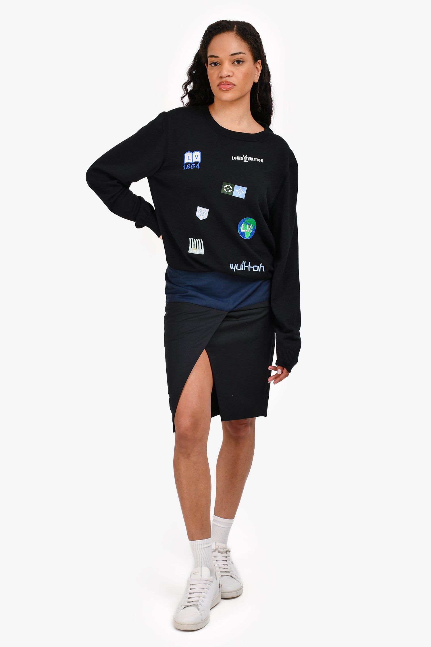 Balenciaga 2011 Navy/Black Wool/Mohair Midi Skirt Size 38