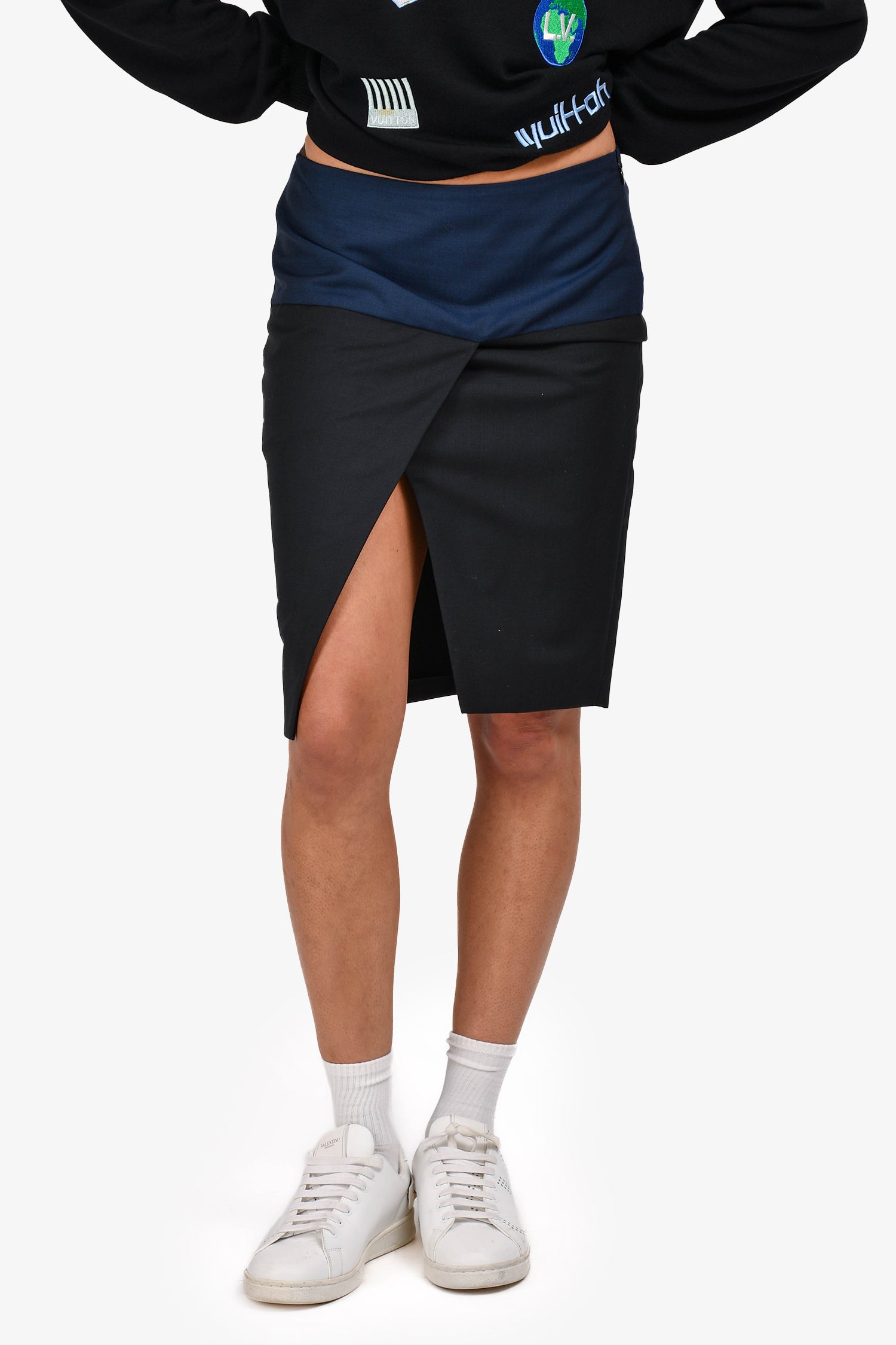 Refresh availabilityBalenciaga 2011 Navy/Black Wool/Mohair Midi Skirt. Back zip closure. Fully lined. Tonal stitching.
