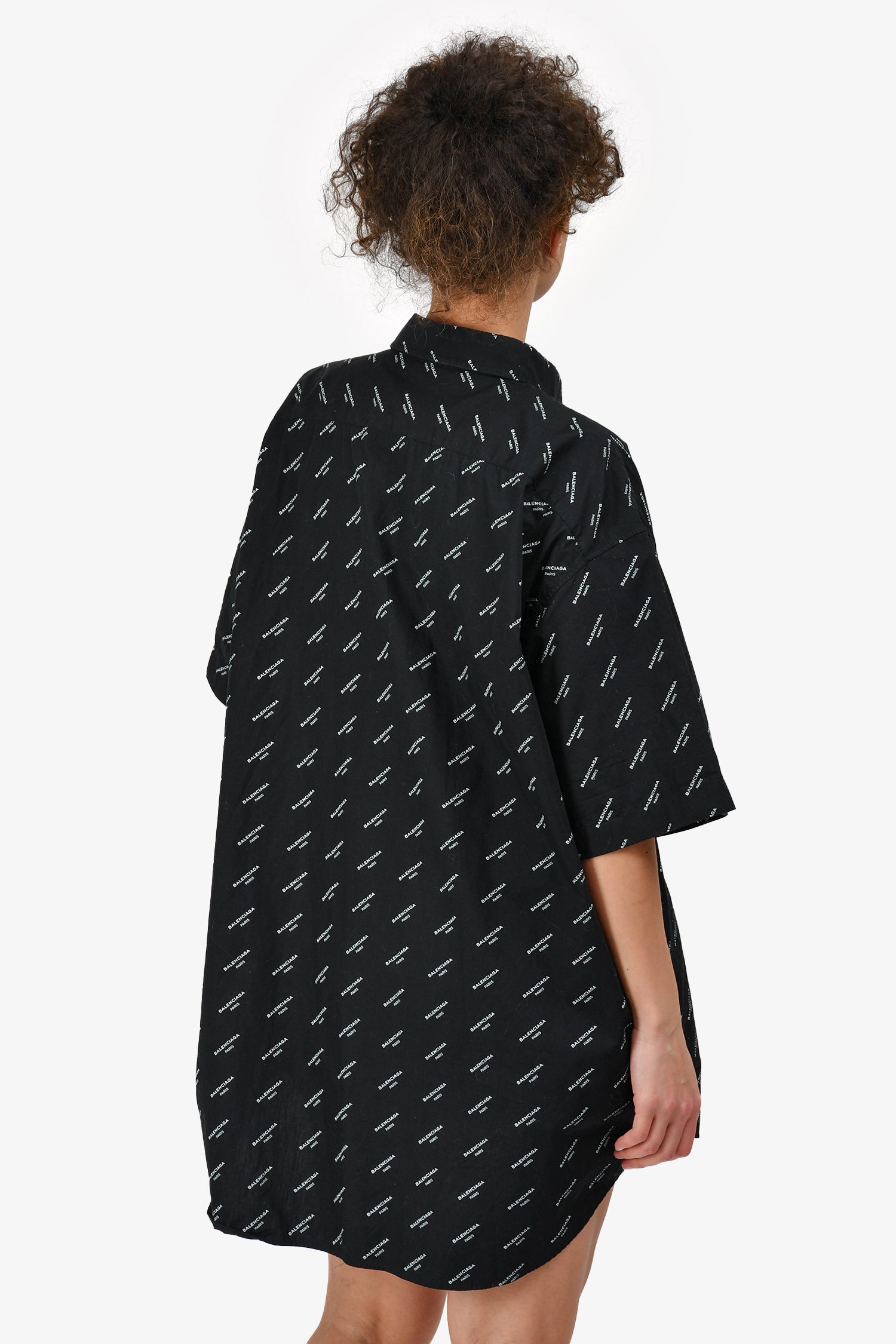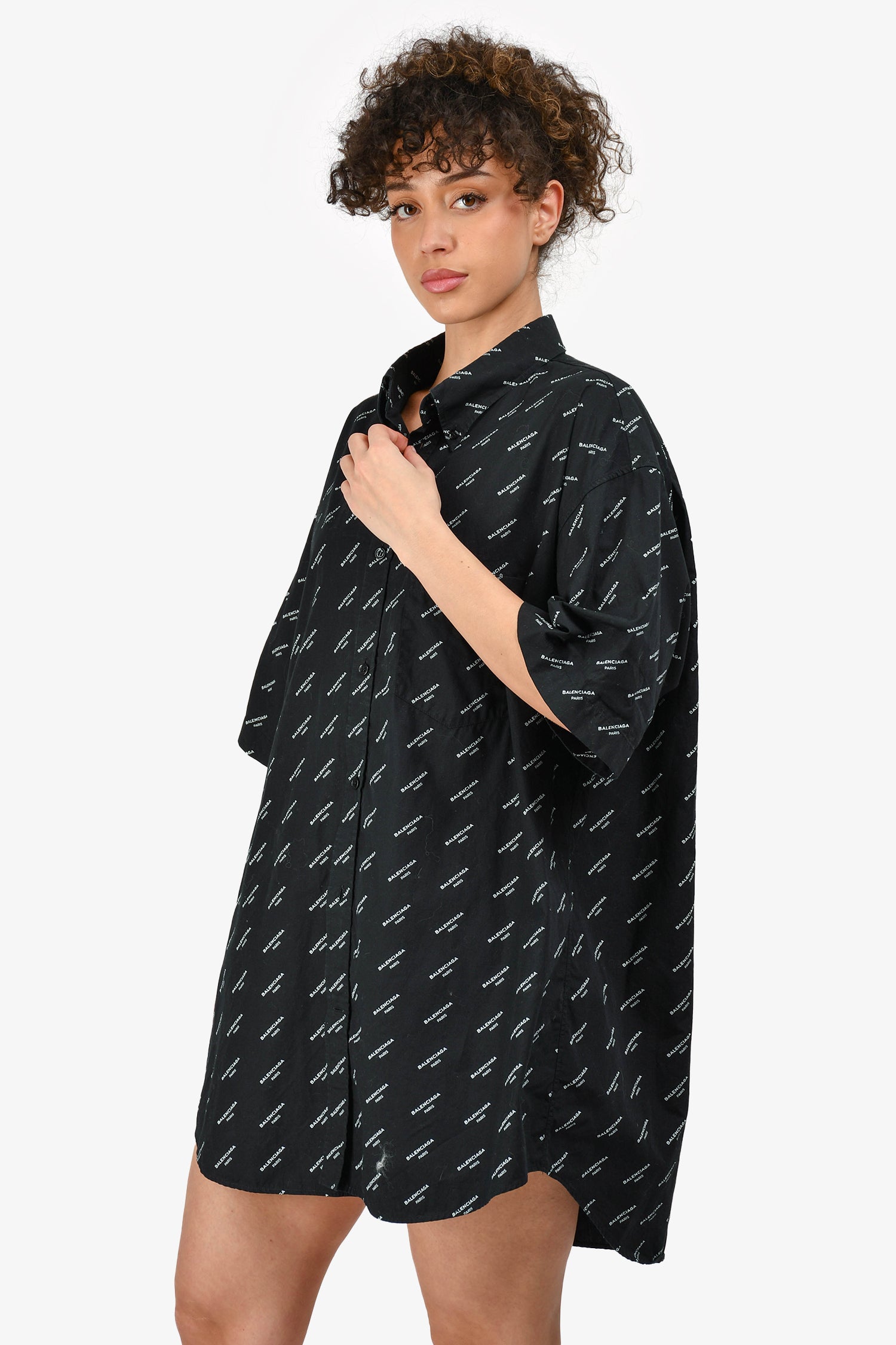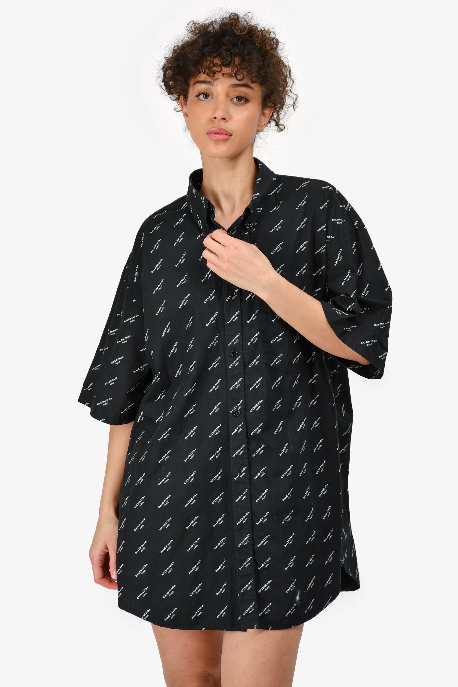 Refresh availabilityBalenciaga 2017 Black/White Monogram Short Sleeve Shirt. Pull-on. Button-up closure in the front. Tonal stitching.