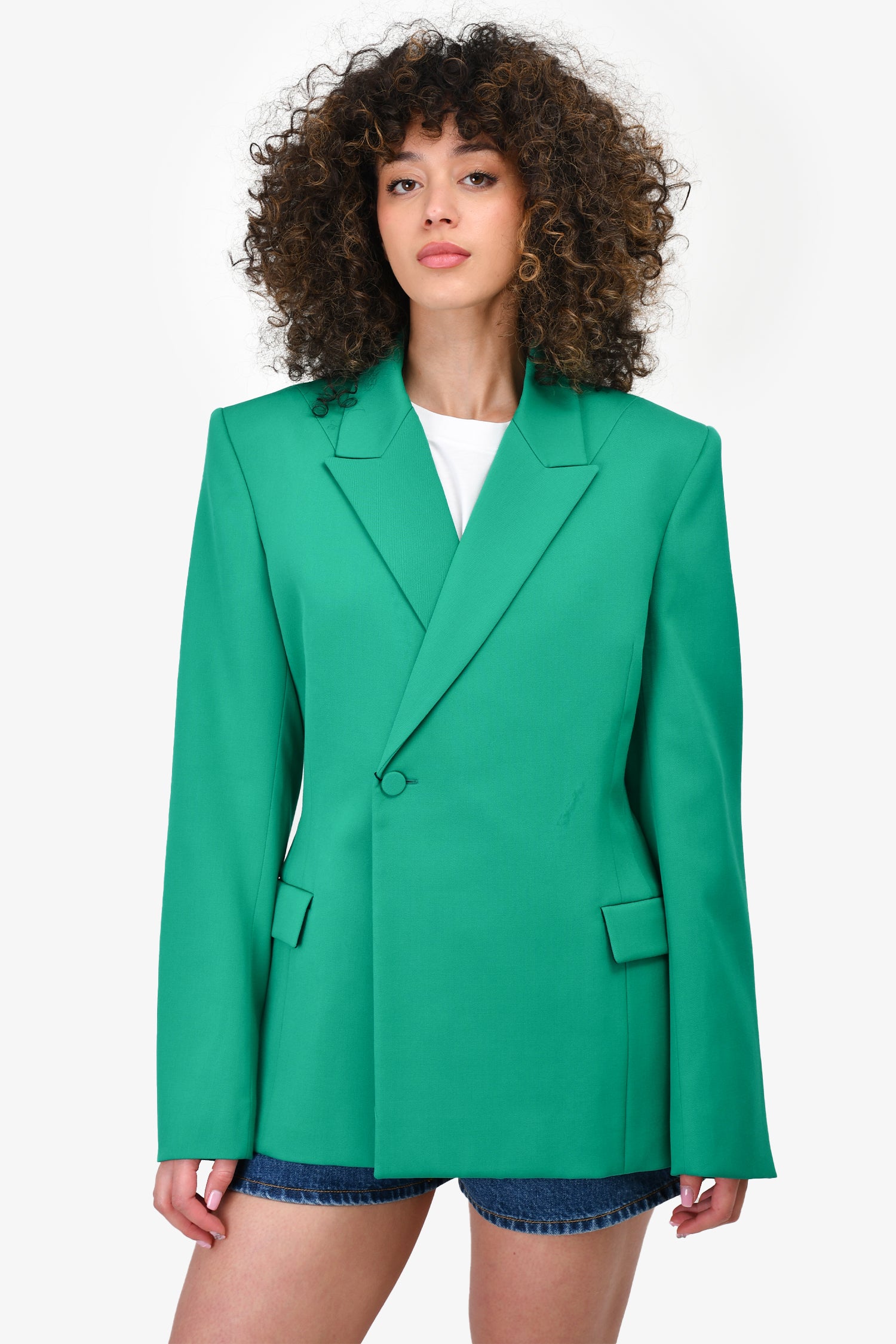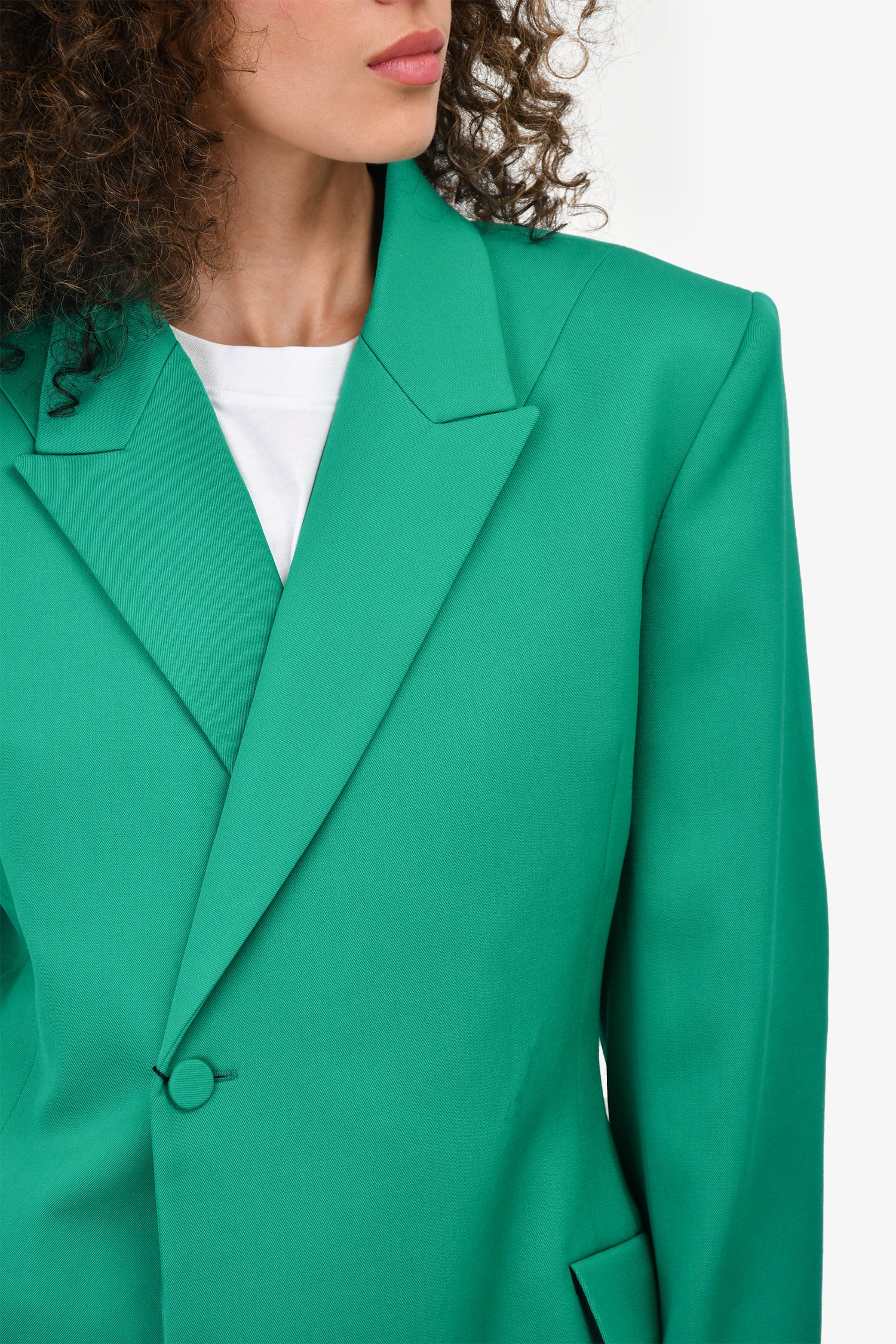 Refresh availabilityBalenciaga 2019 Green Wool Padded Shoulder Blazer. Front button up closure. Tonal stitching.