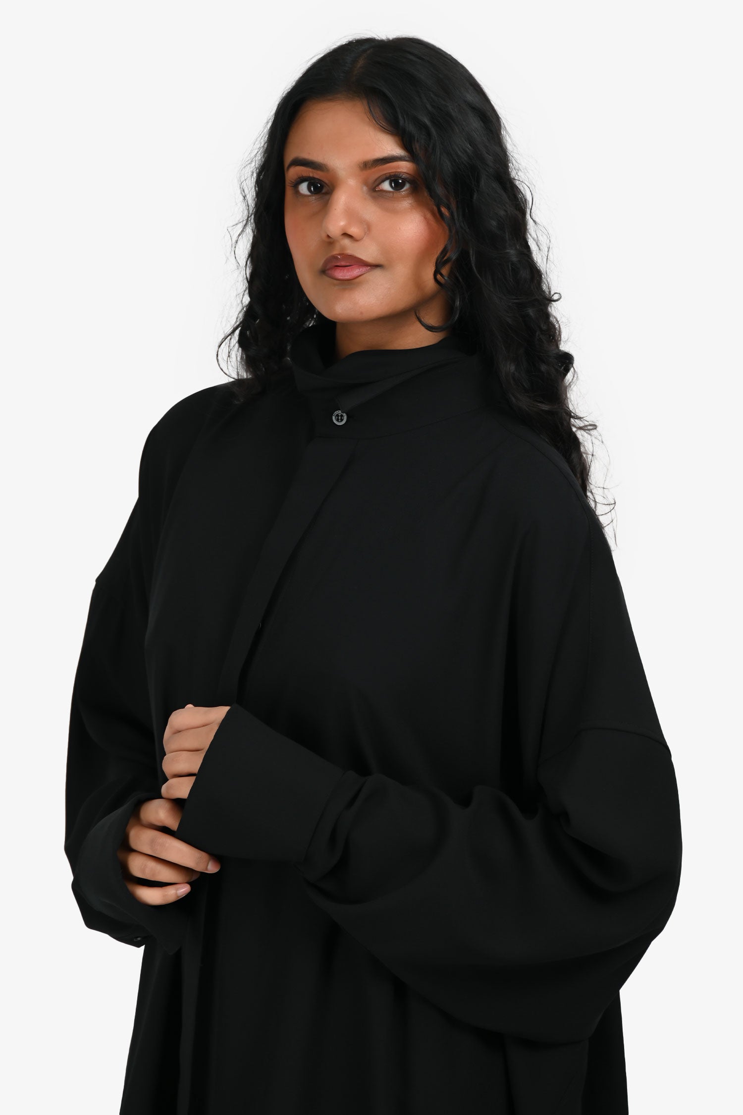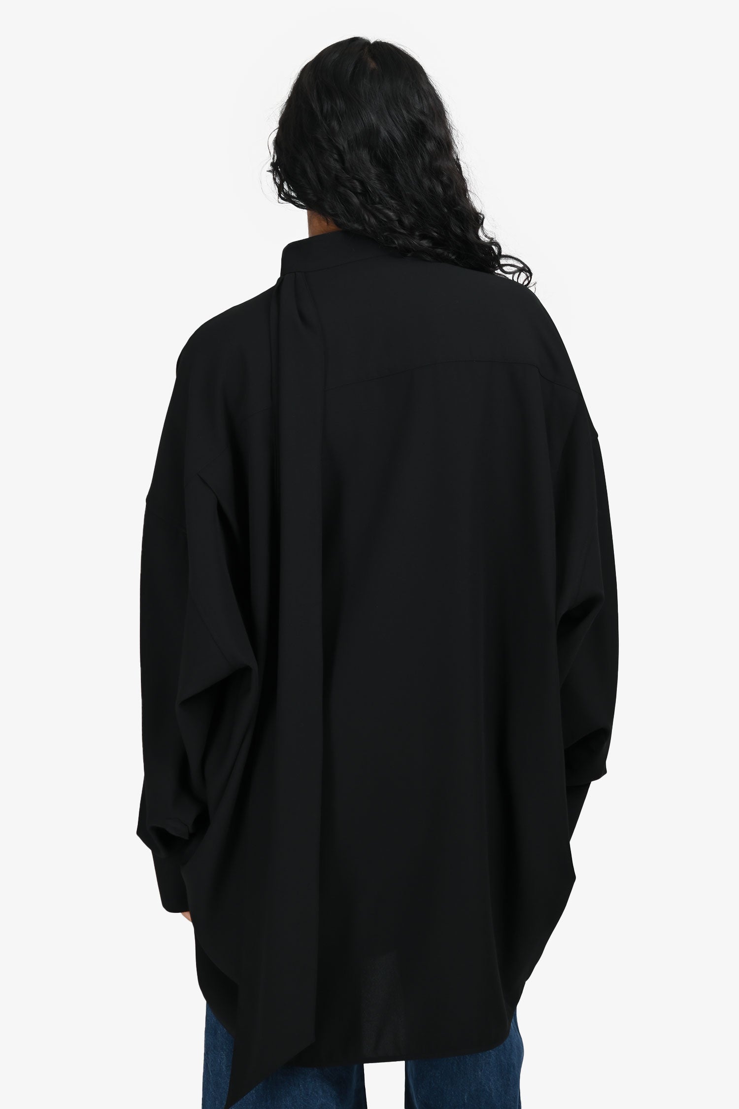 Refresh availabilityBalenciaga Black Neck Tie Oversized Button-Up Shirt. Point collar neckline with detachable neck tie detail. Front button-up closure. Cuffs with button-up closures. Tonal stitching.