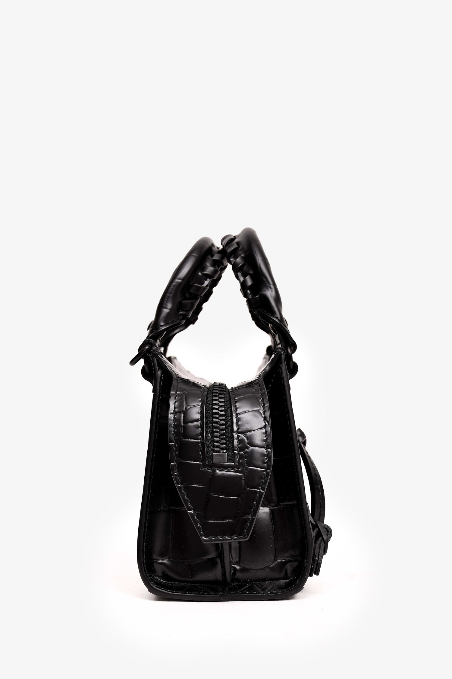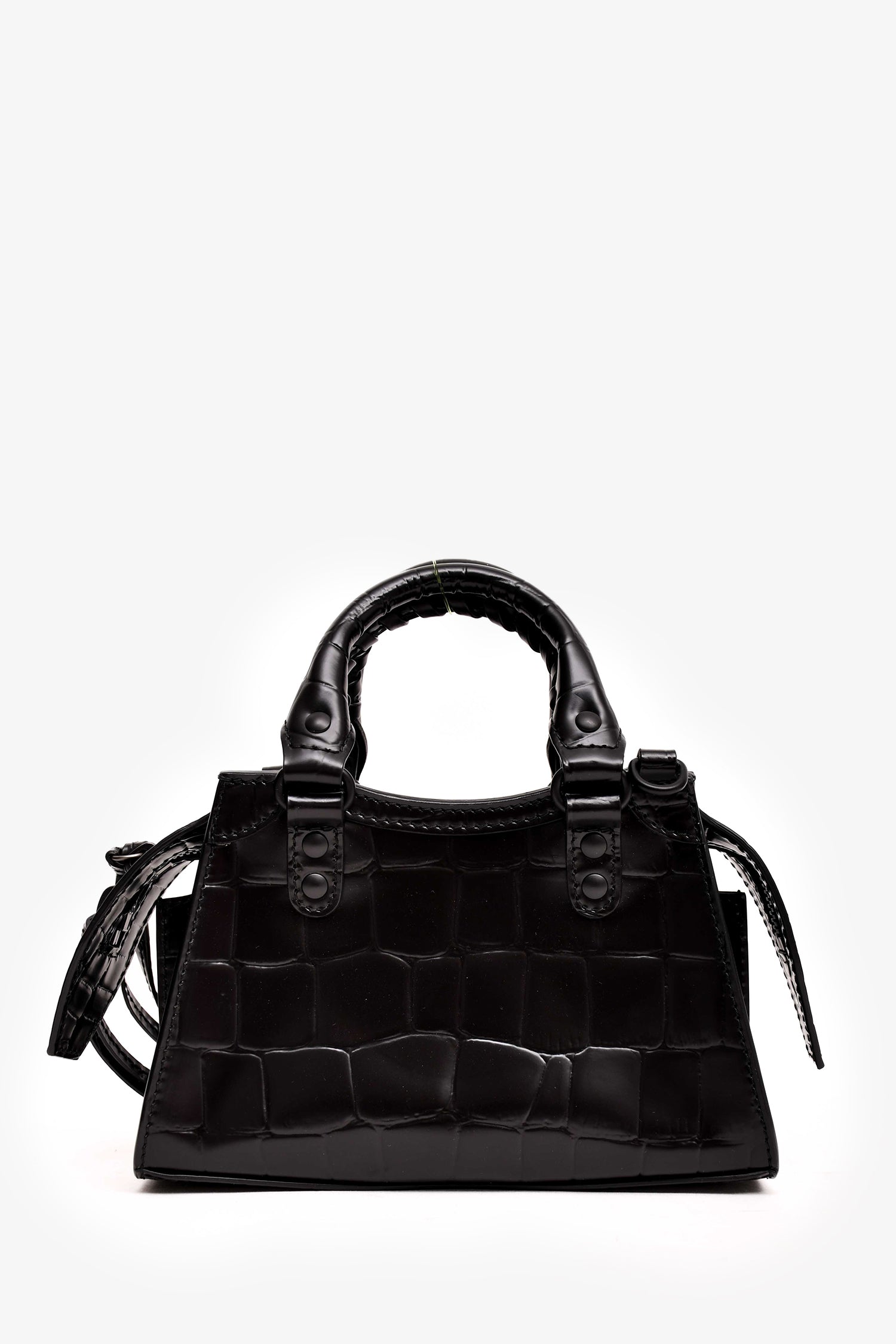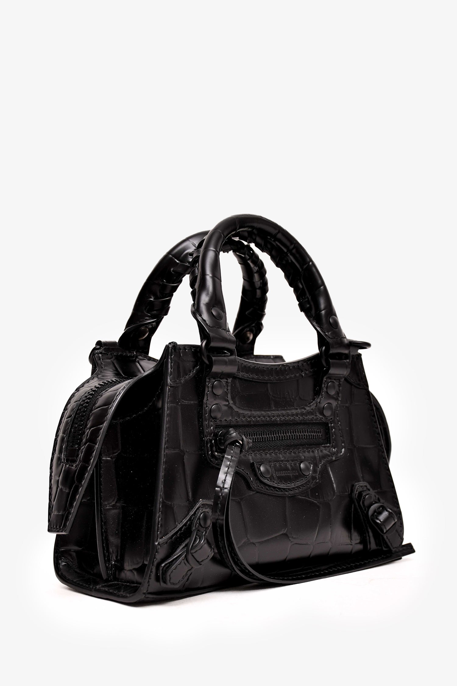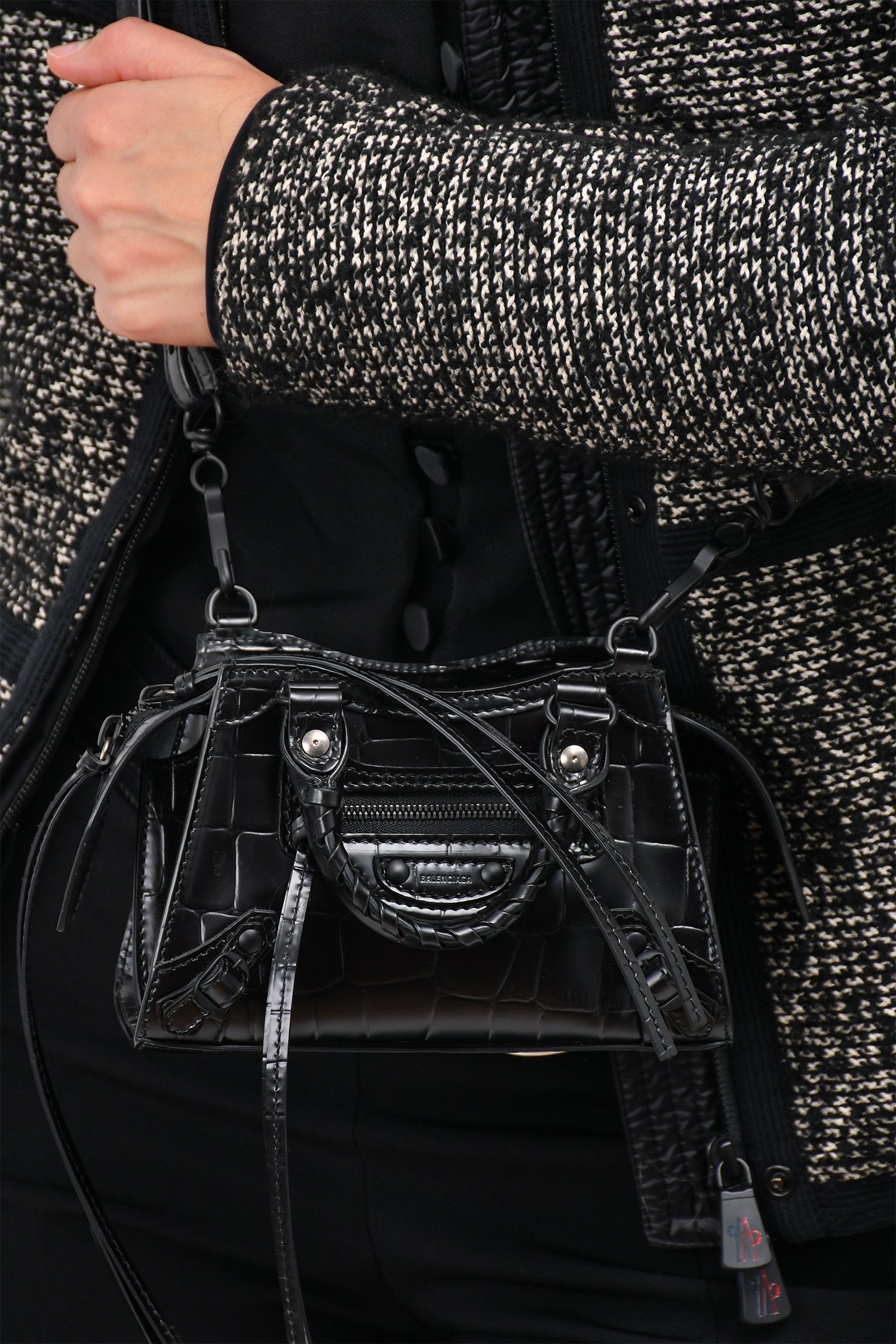 Refresh availabilityBalenciaga 2021 Black Croc Embossed Leather Neo Classic Nano City Bag. Dual rolled handles. Front zip pocket. Top two-way zip closure. Tonal interior. Single interior wall slip pocket. Removable and adjustable strap.