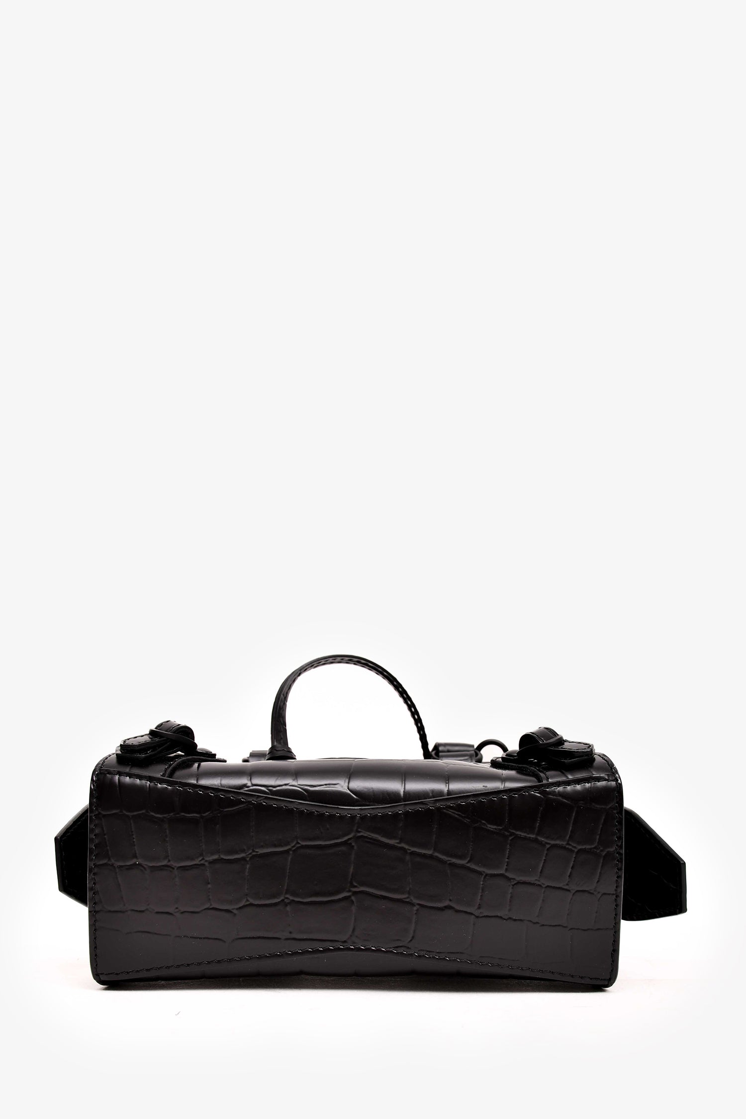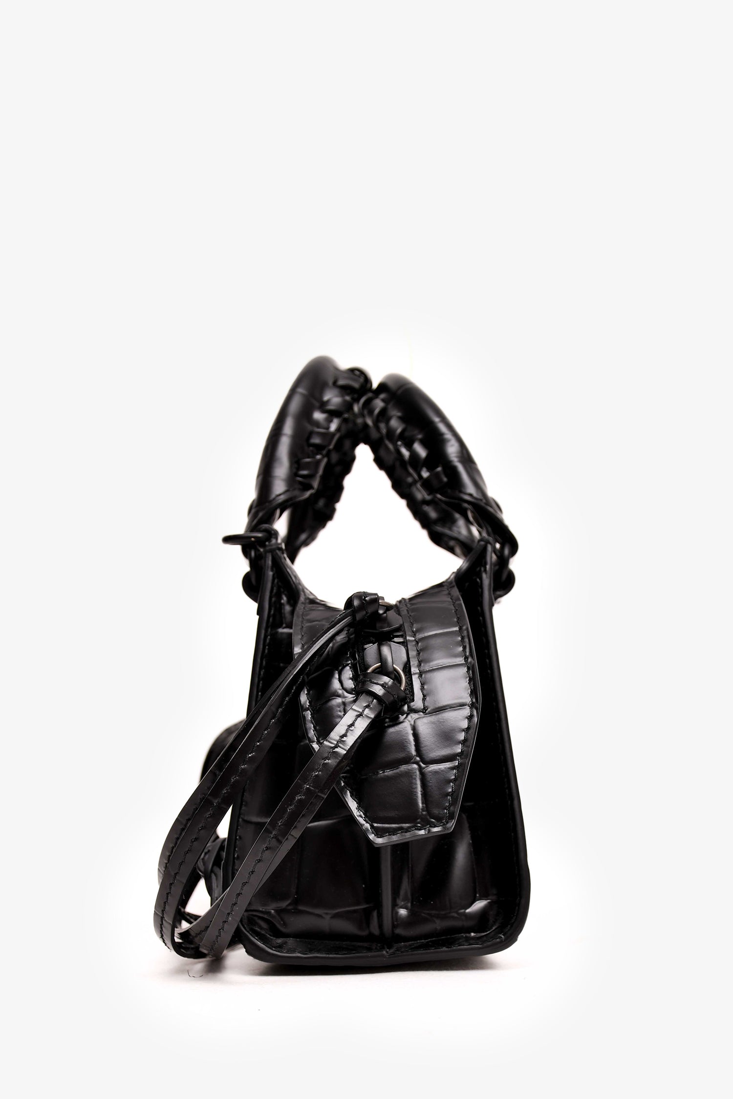 Balenciaga 2021 Black Croc Embossed Leather Neo Classic Nano City Bag