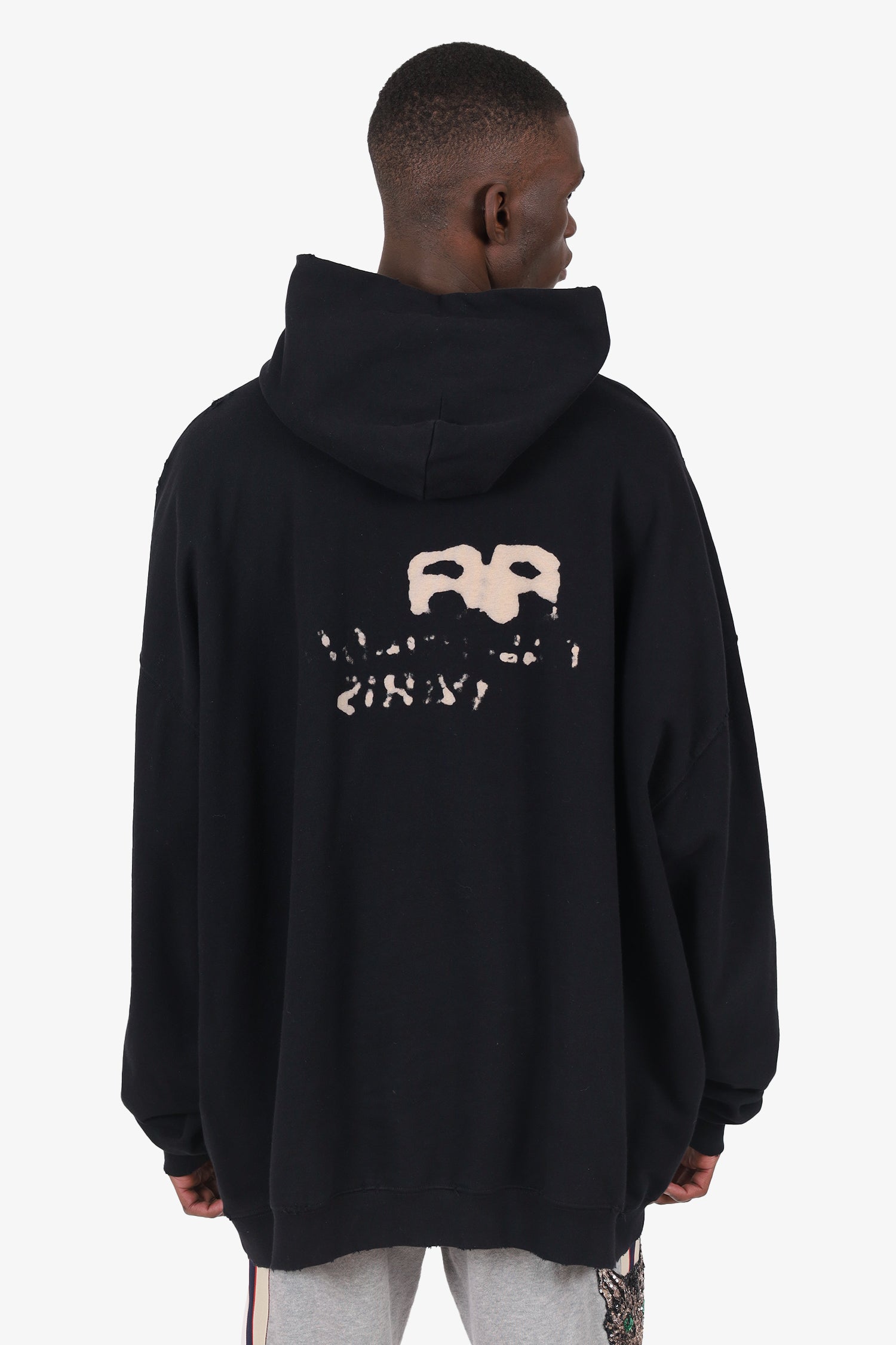 Balenciaga 2022 Black Logo Distressed Hoodie Size L