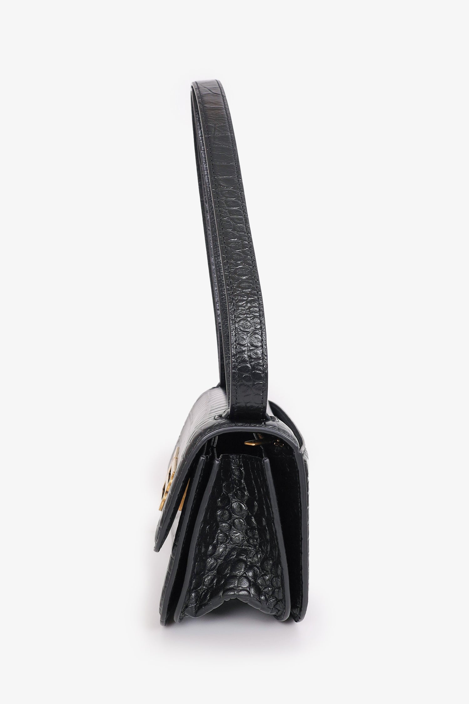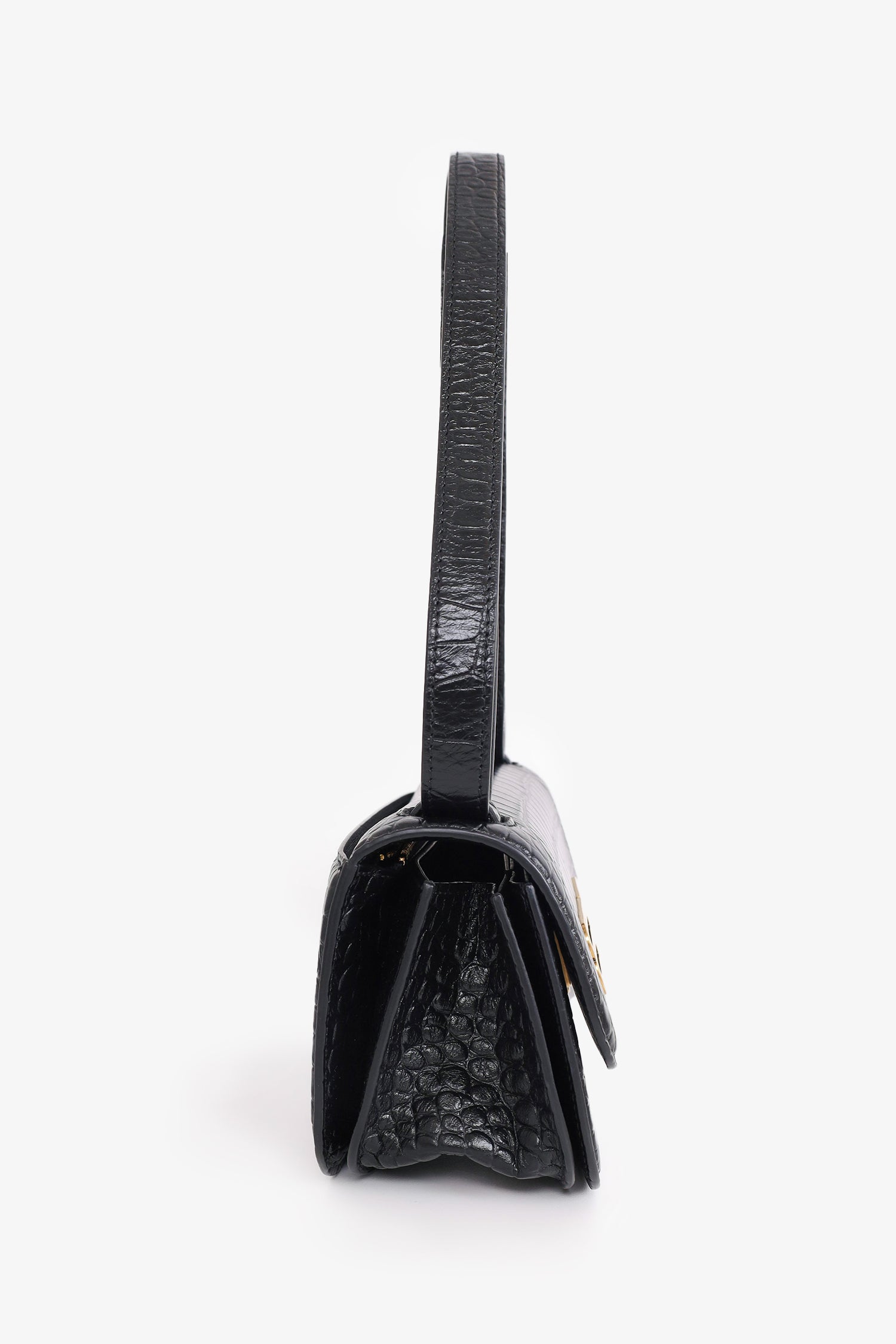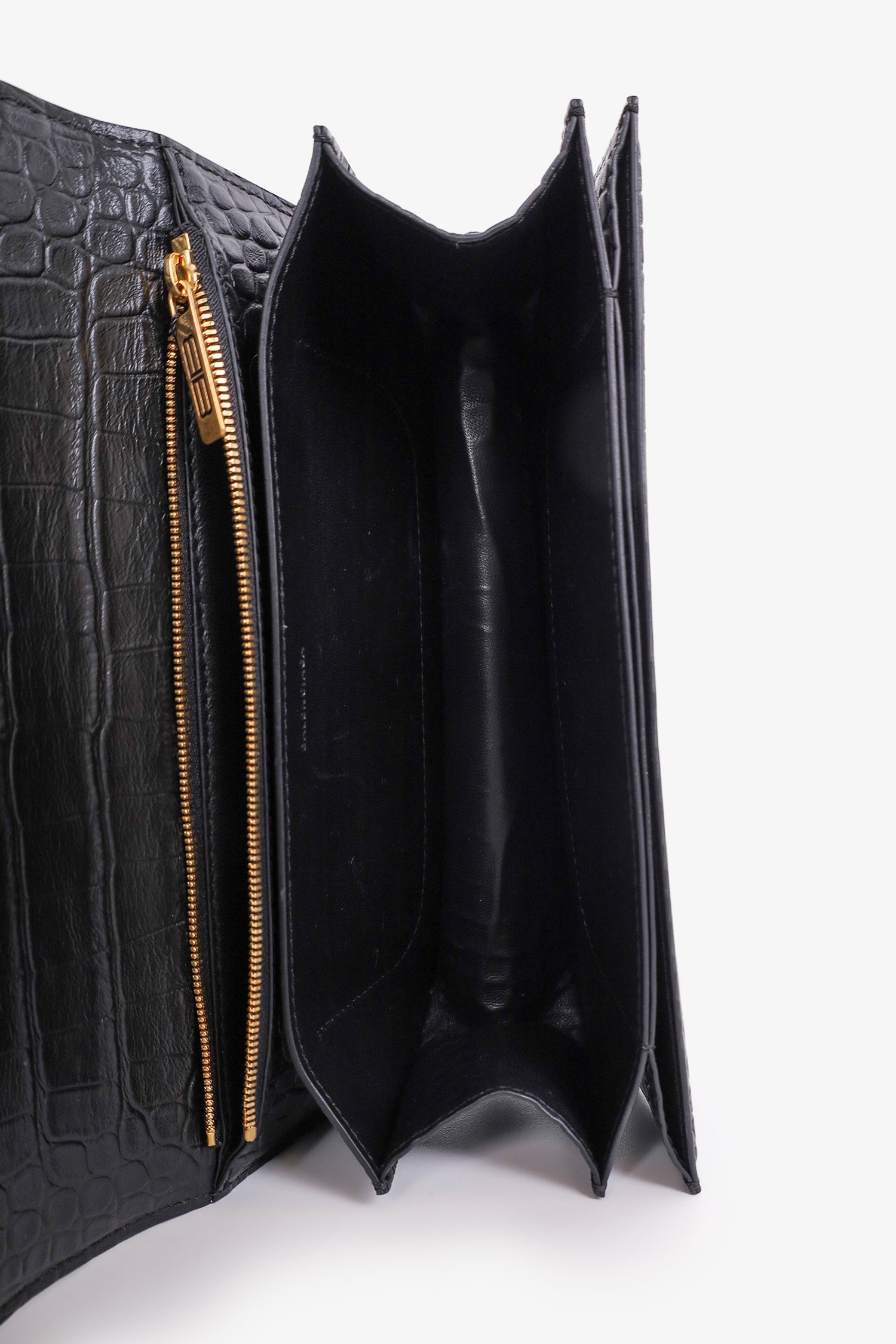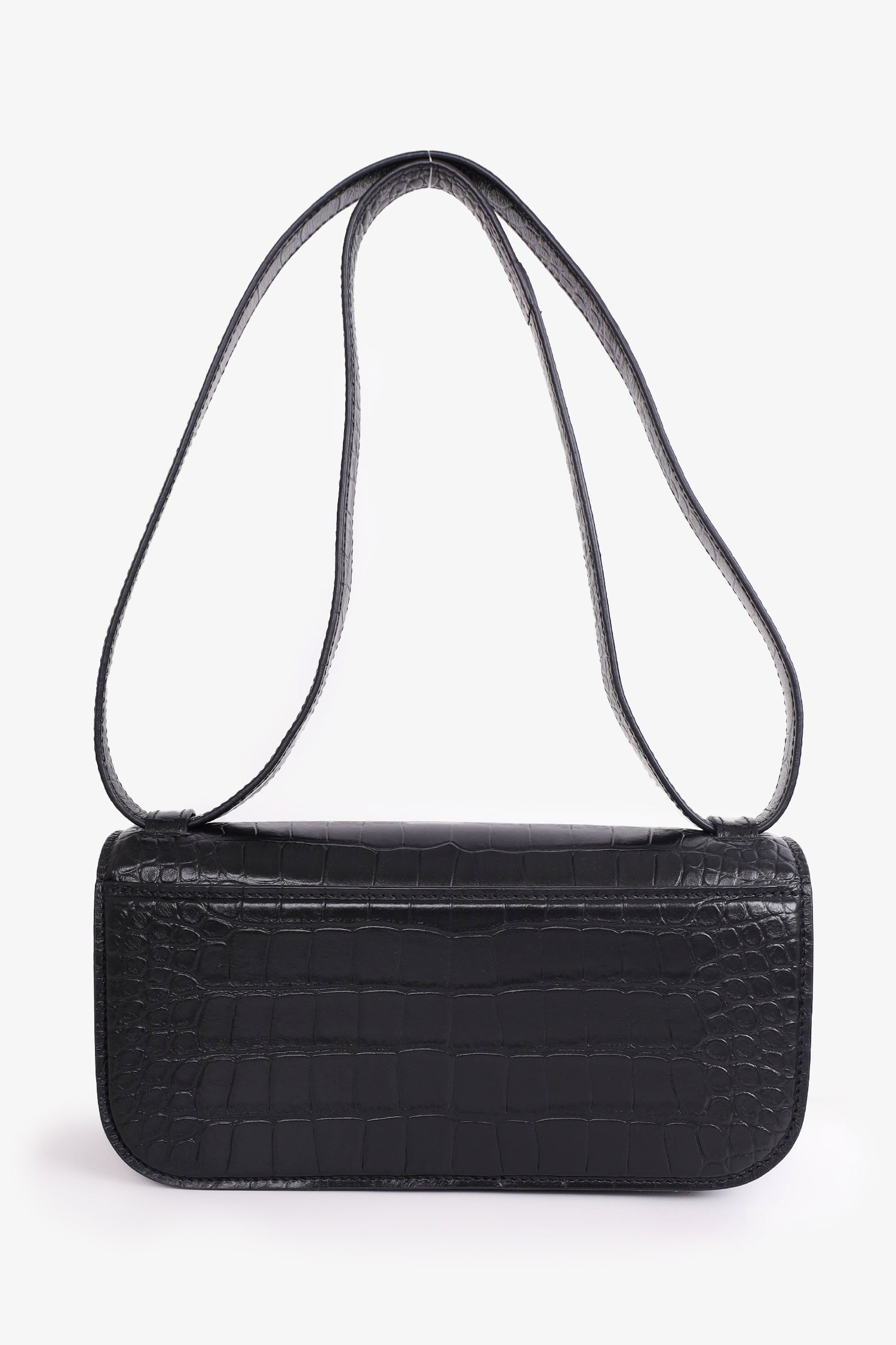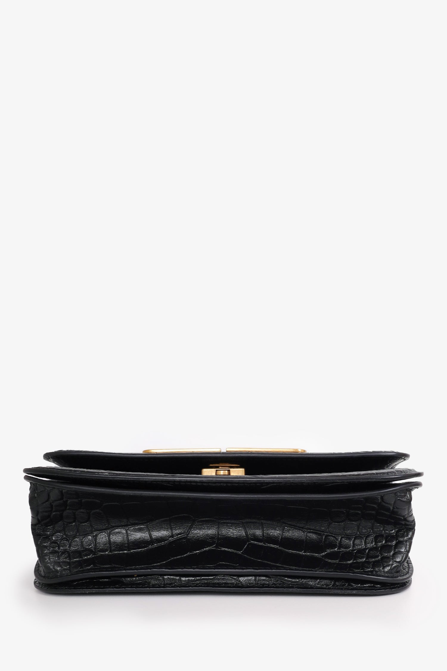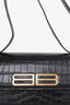 Balenciaga Black Calfskin Crocodile Embossed Medium Gossip Bag