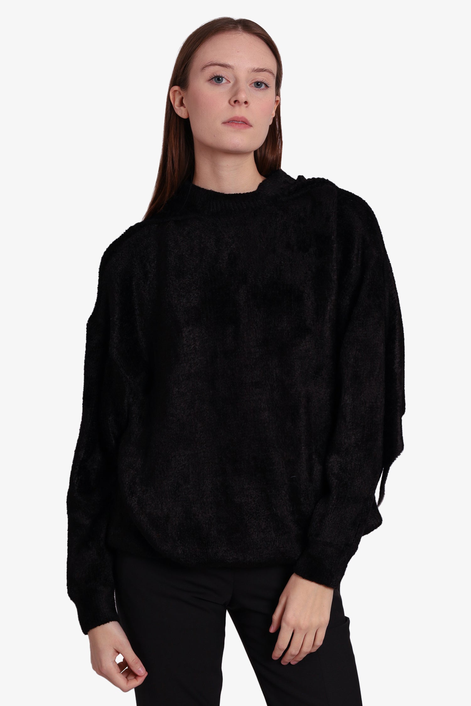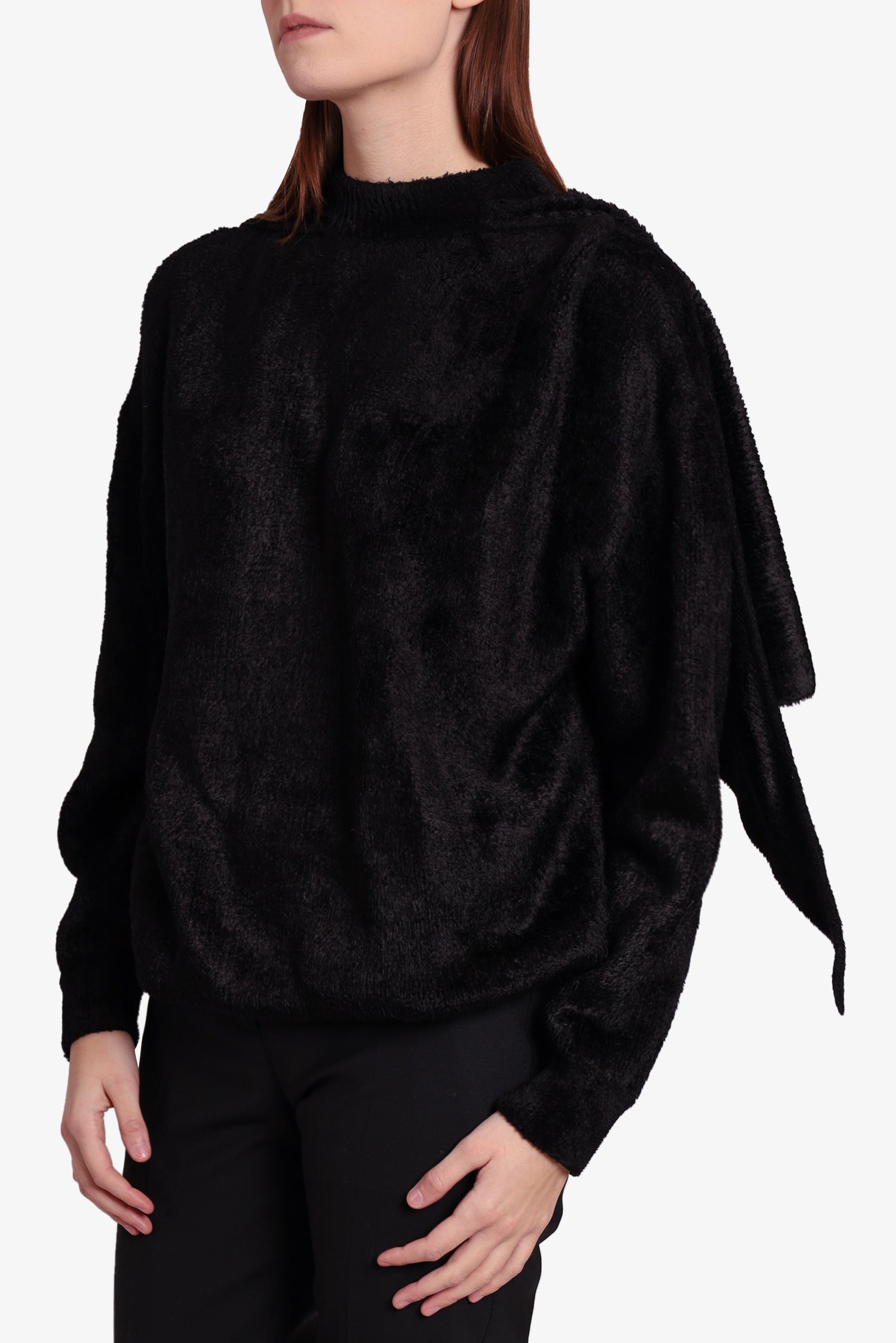 Refresh availabilityBalenciaga Black Cut Out Sweater with Wrap. Pull-on. Round neckline. Ribbed sleeves & hem. Layering detail on shoulders. Tonal stitching.