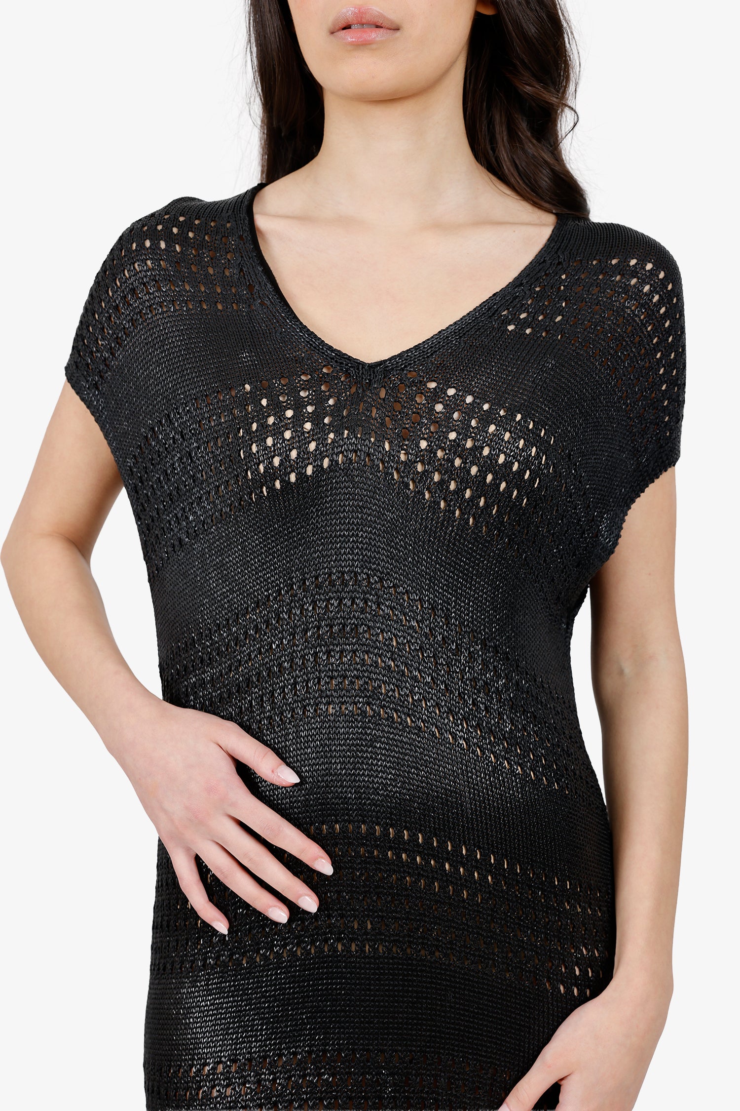 Refresh availabilityBalenciaga Black Glossy Knit Sleeveless Dress. V-neckline. Tonal stitching.