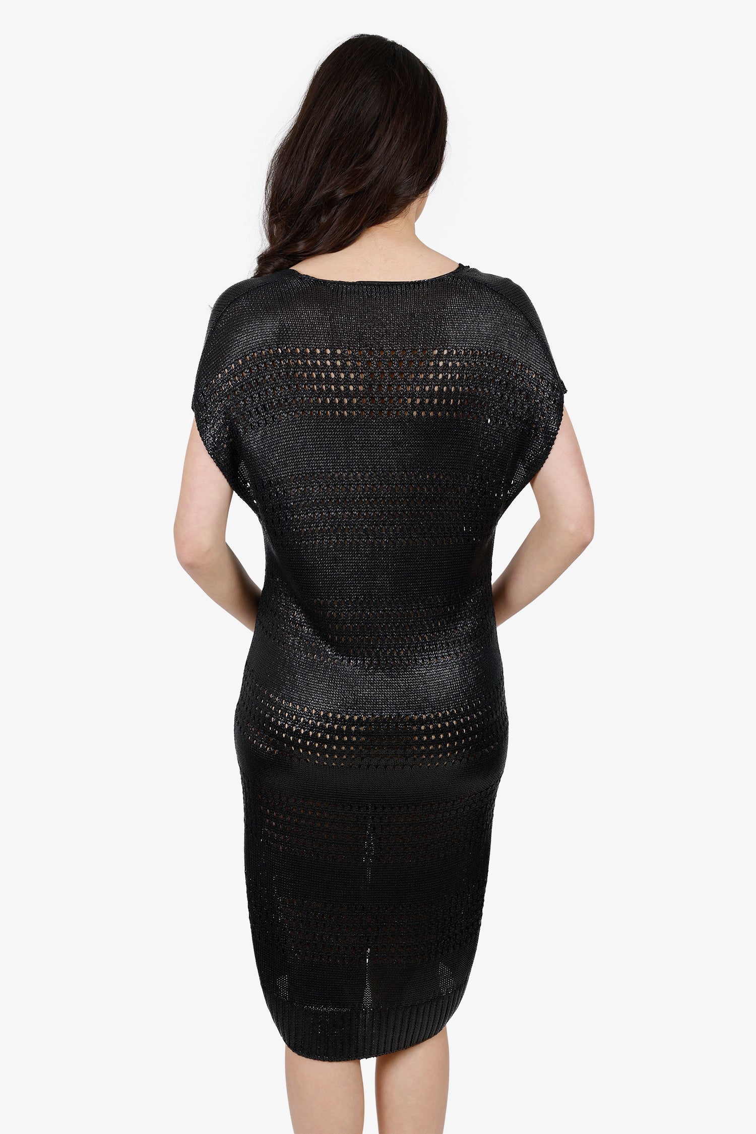 Balenciaga Black Glossy Knit Sleeveless Dress Size 44