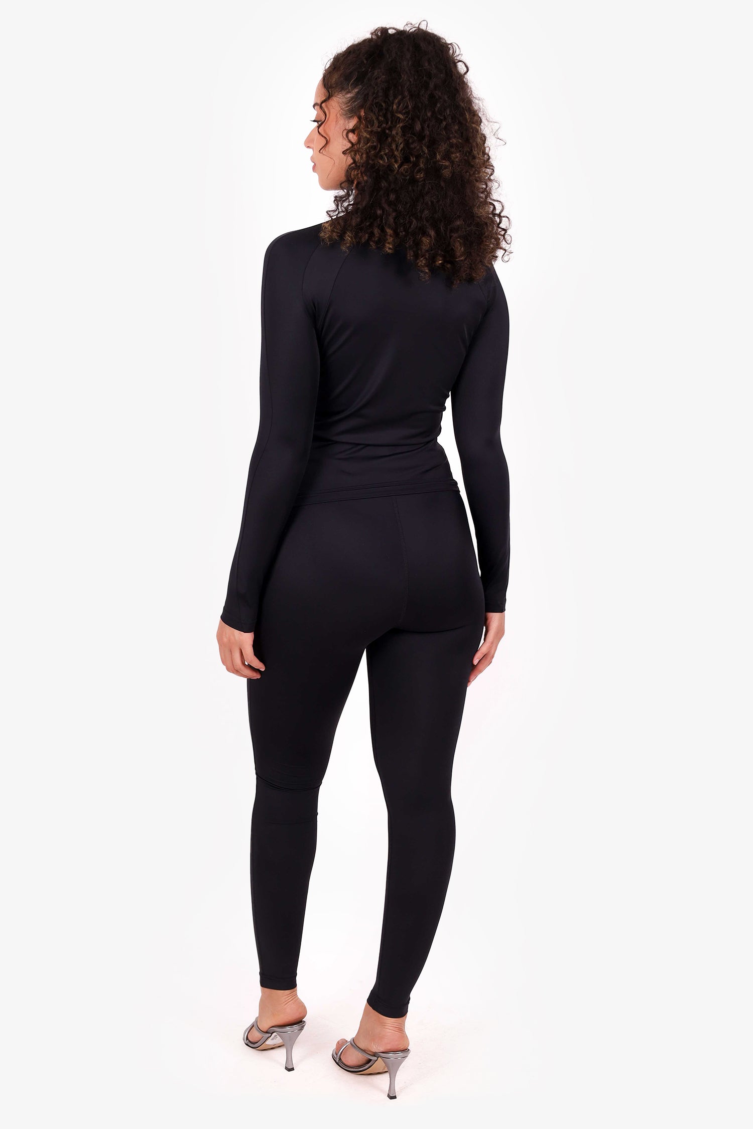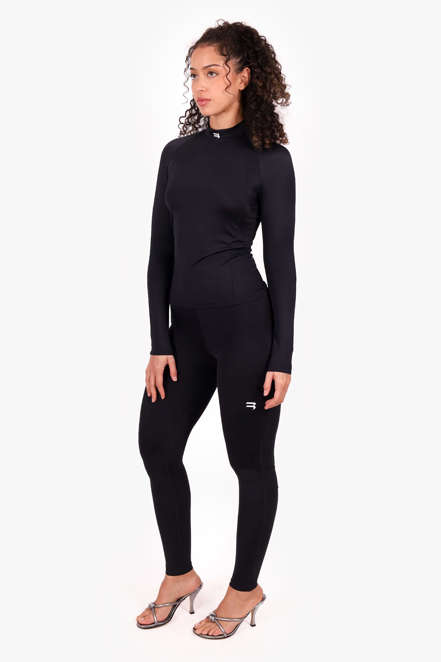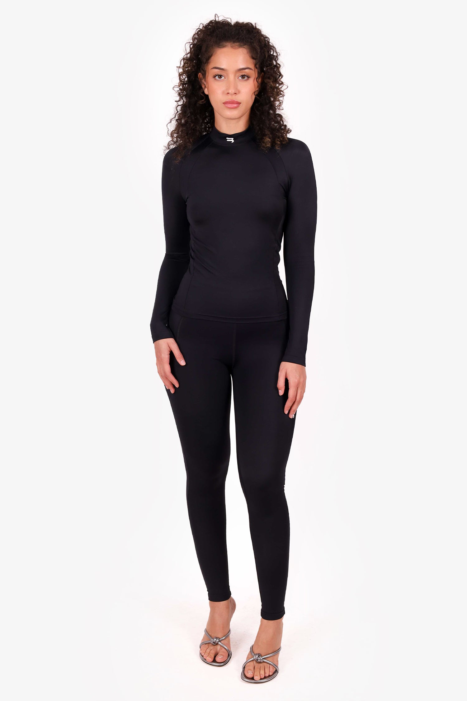 Refresh availabilityBalenciaga Black Long Sleeve Mock Neck Top + Legging Activewear Set. Top: Pull-on. Mock-neckline; Legging: Slip-on. Elasticated waistband. Tonal stitching.