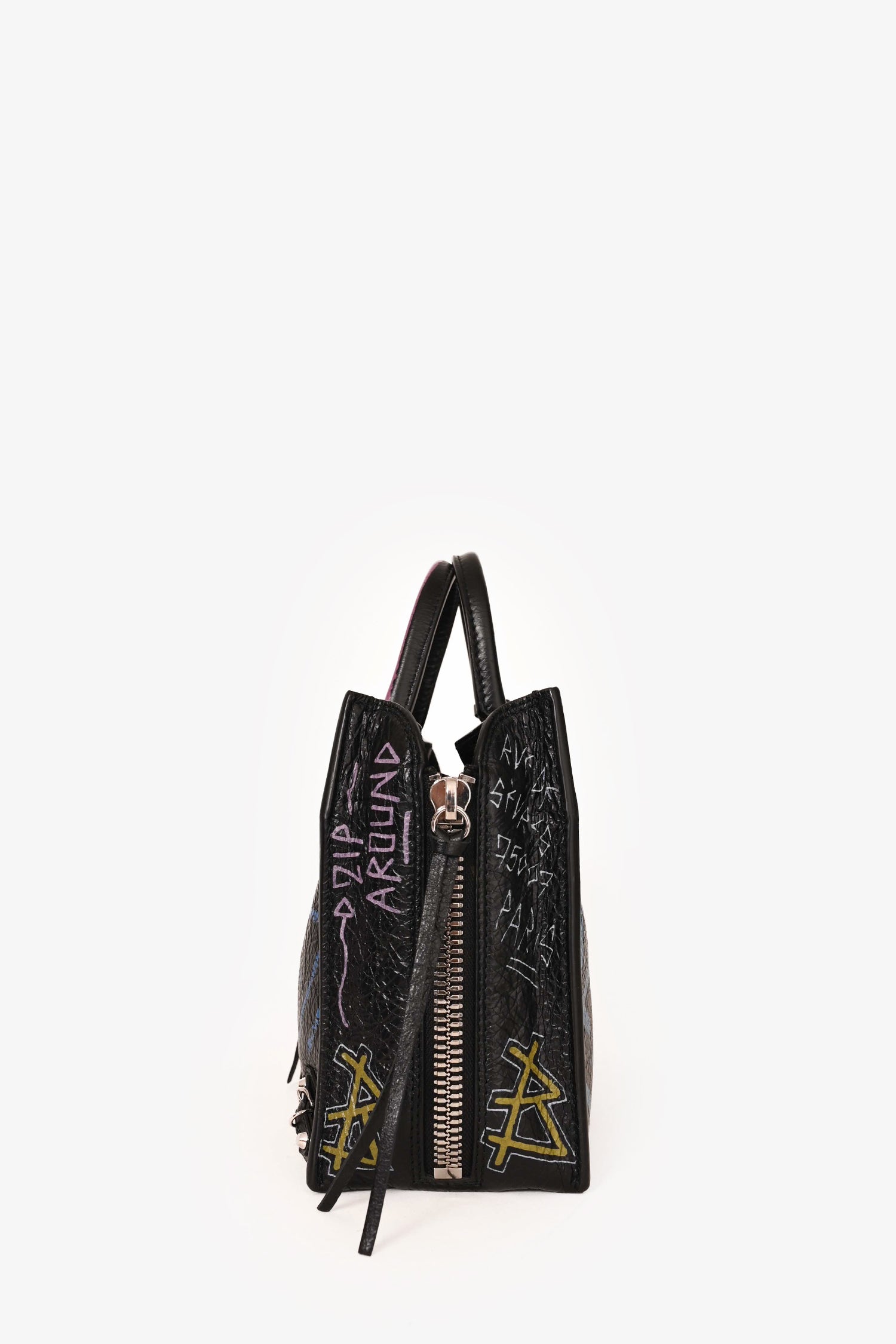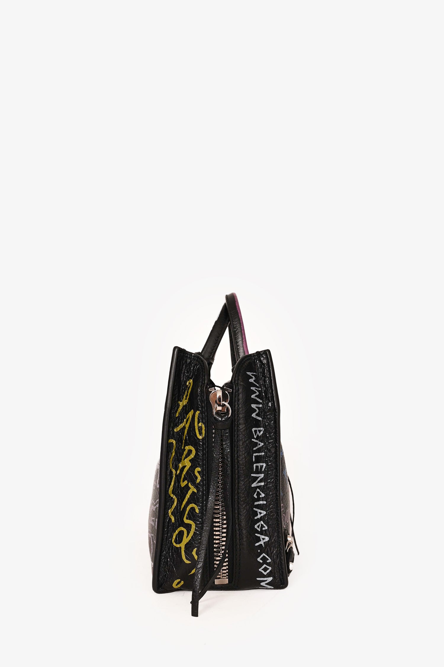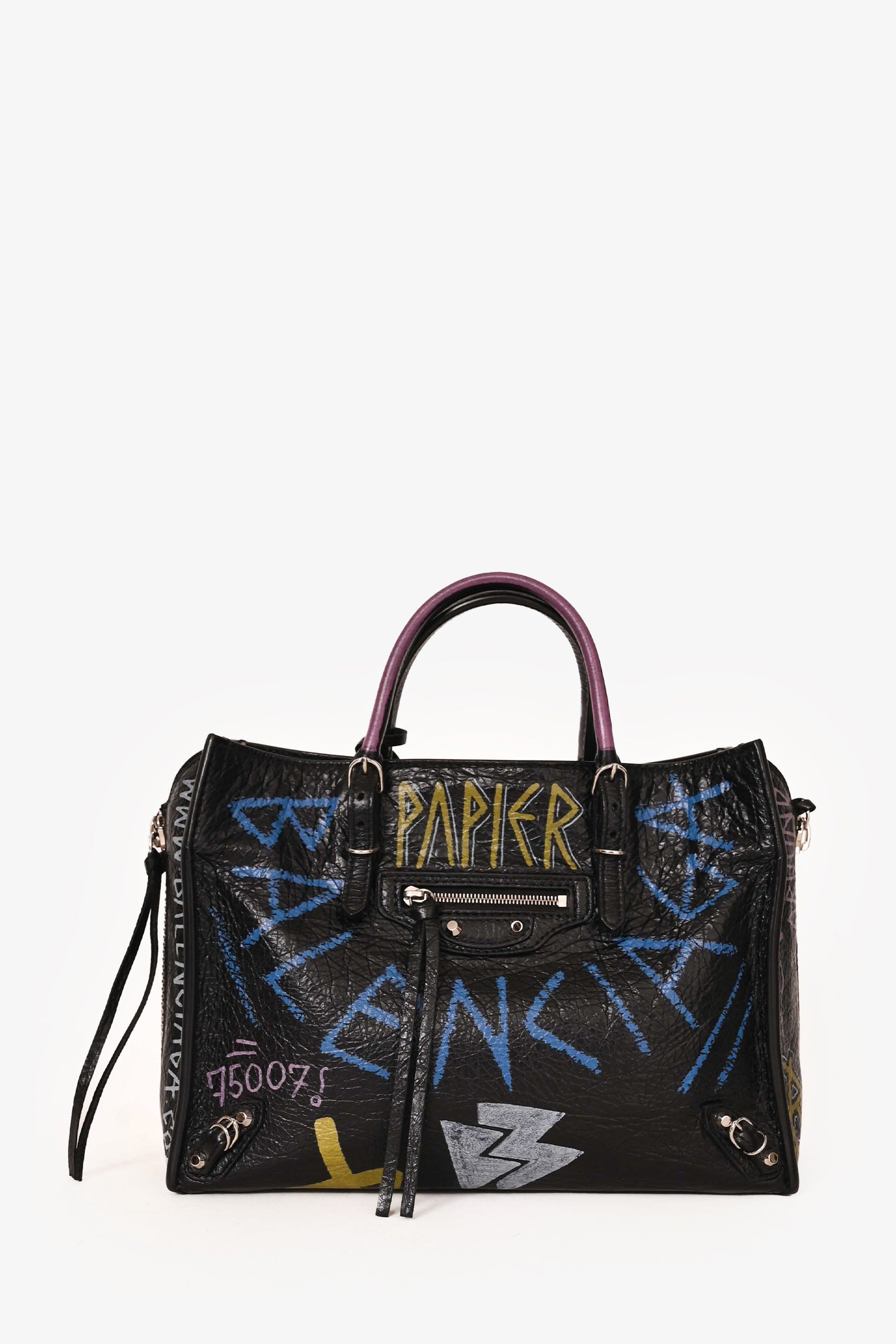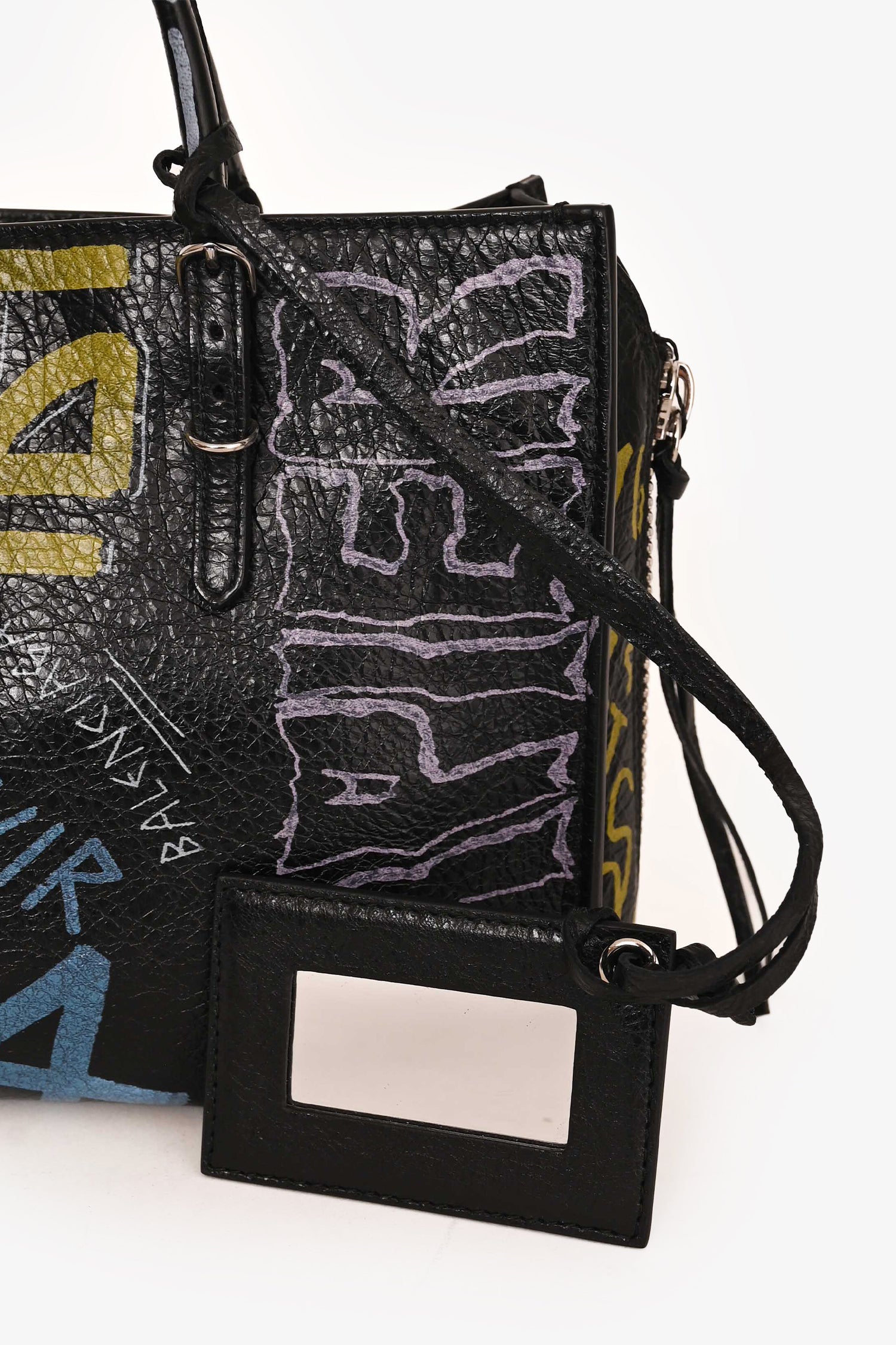 Balenciaga Black Leather Graffiti Printed Papier A6 Tote
