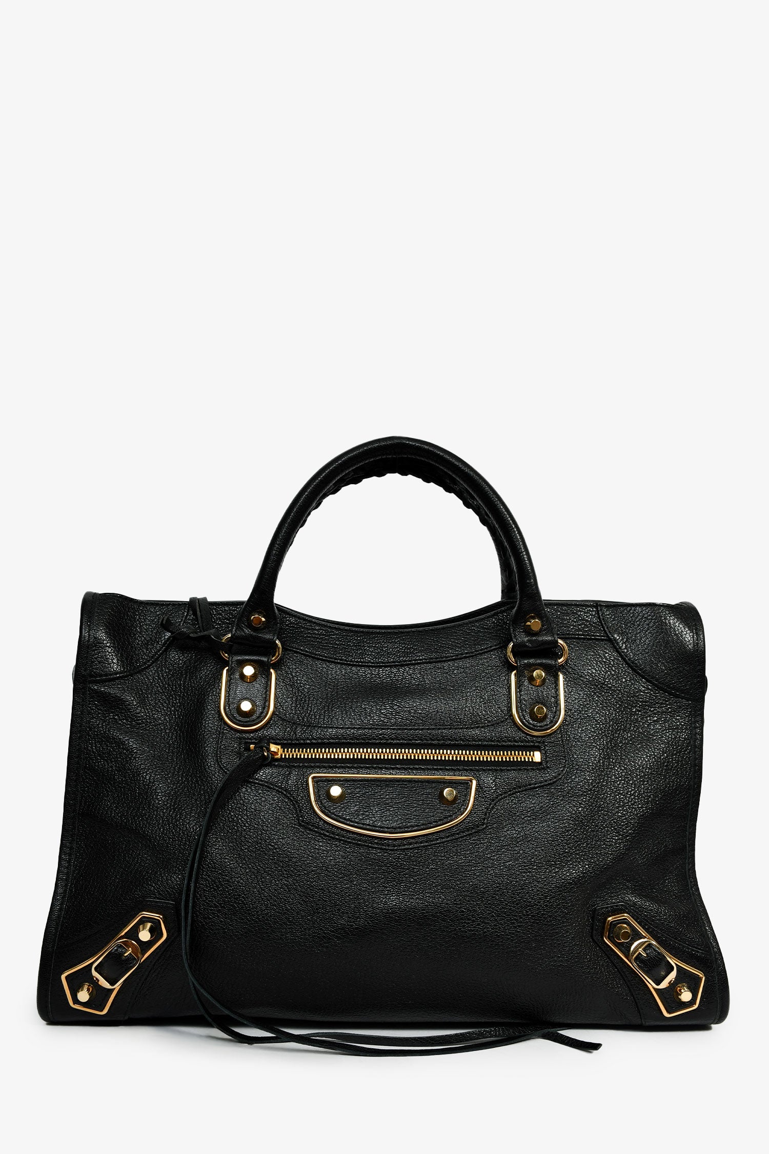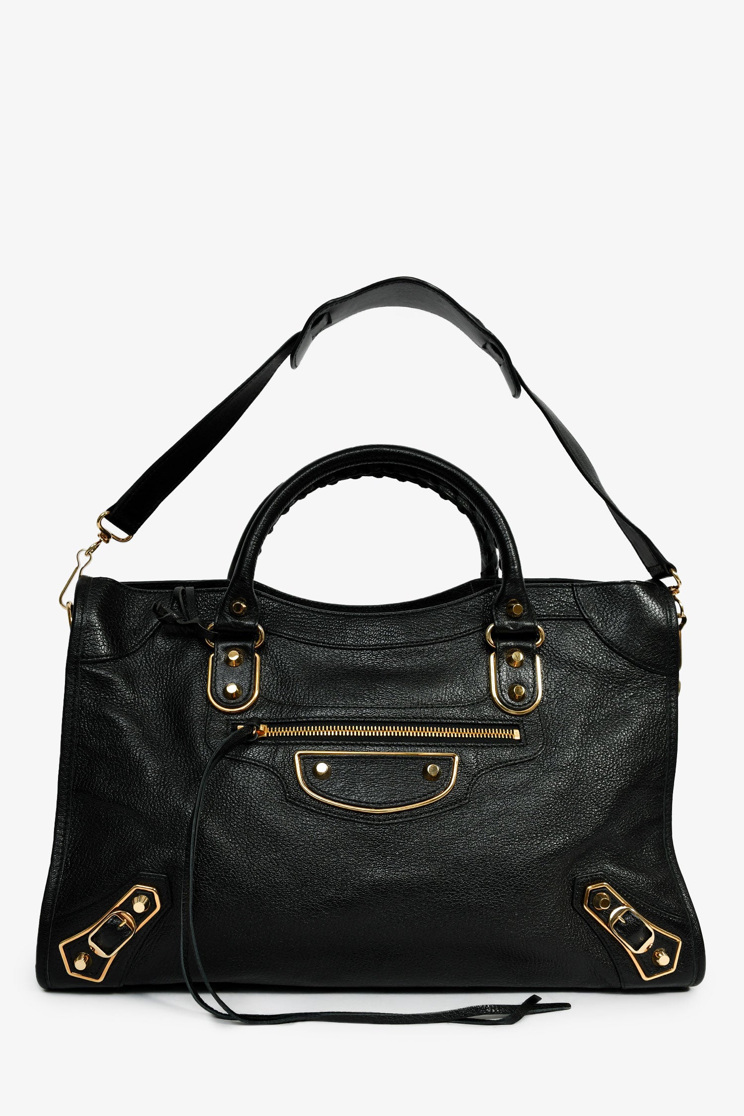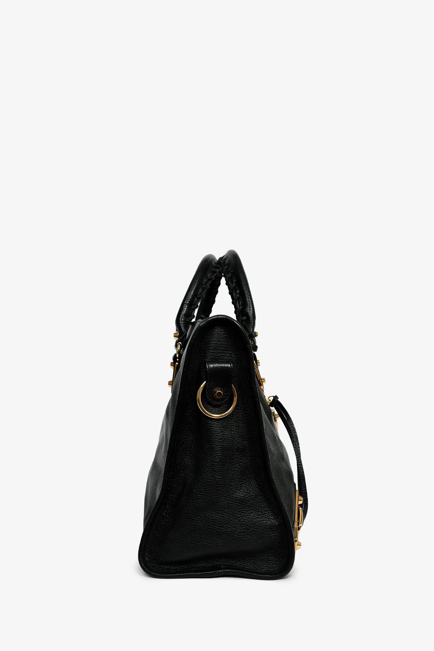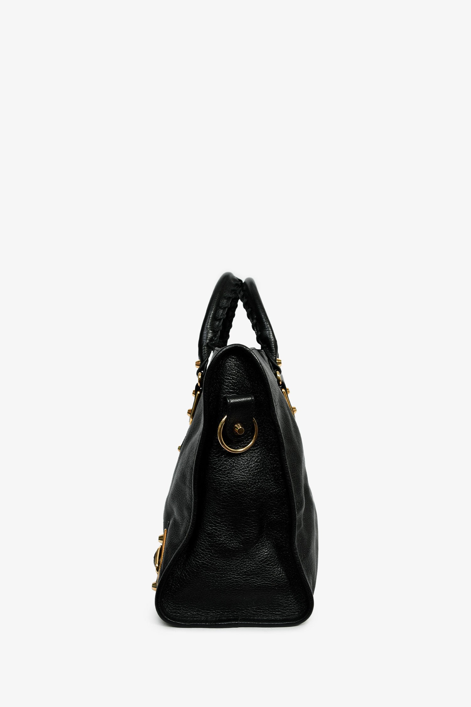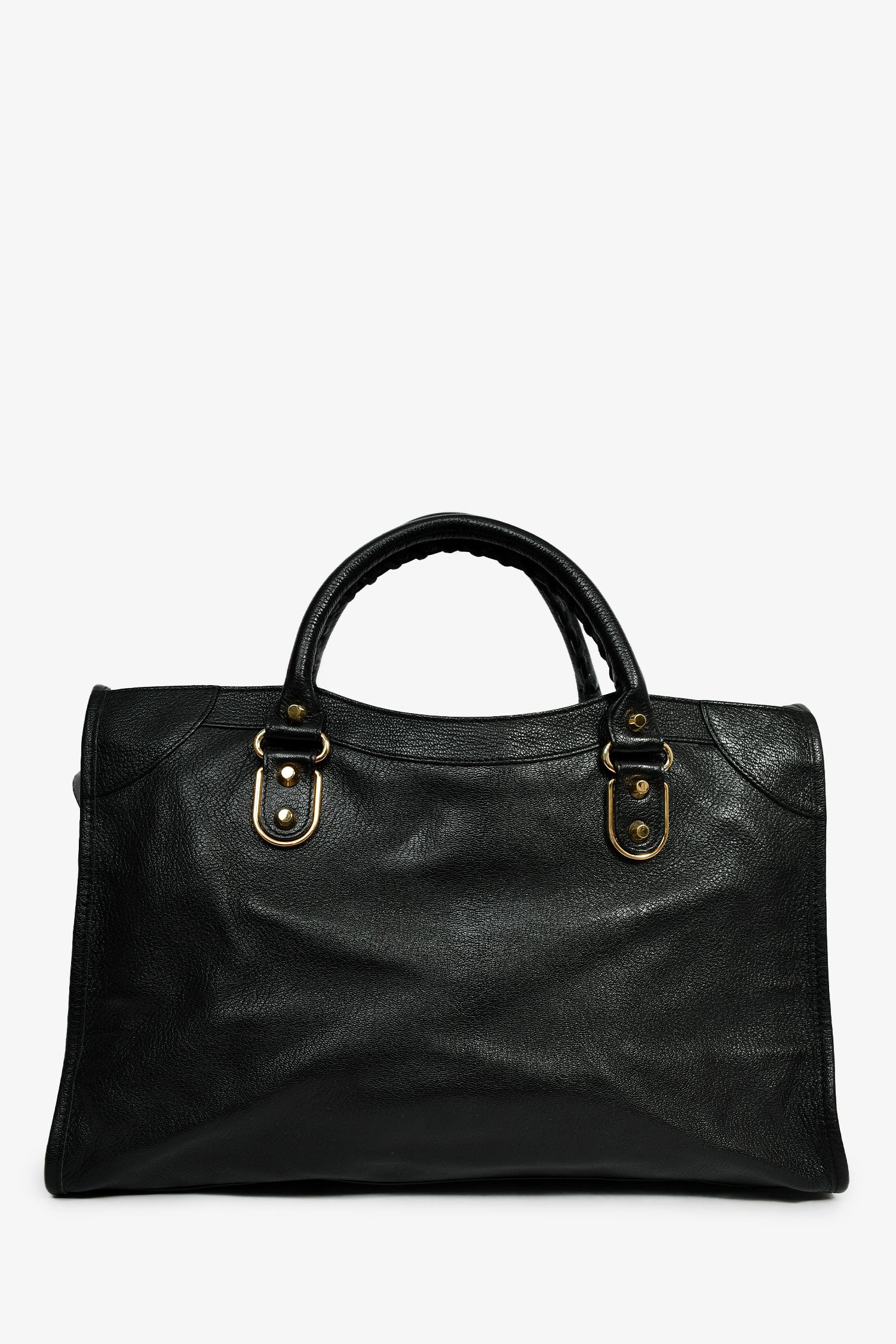Balenciaga Black Leather Mirror City Bag Top Handle with Strap
