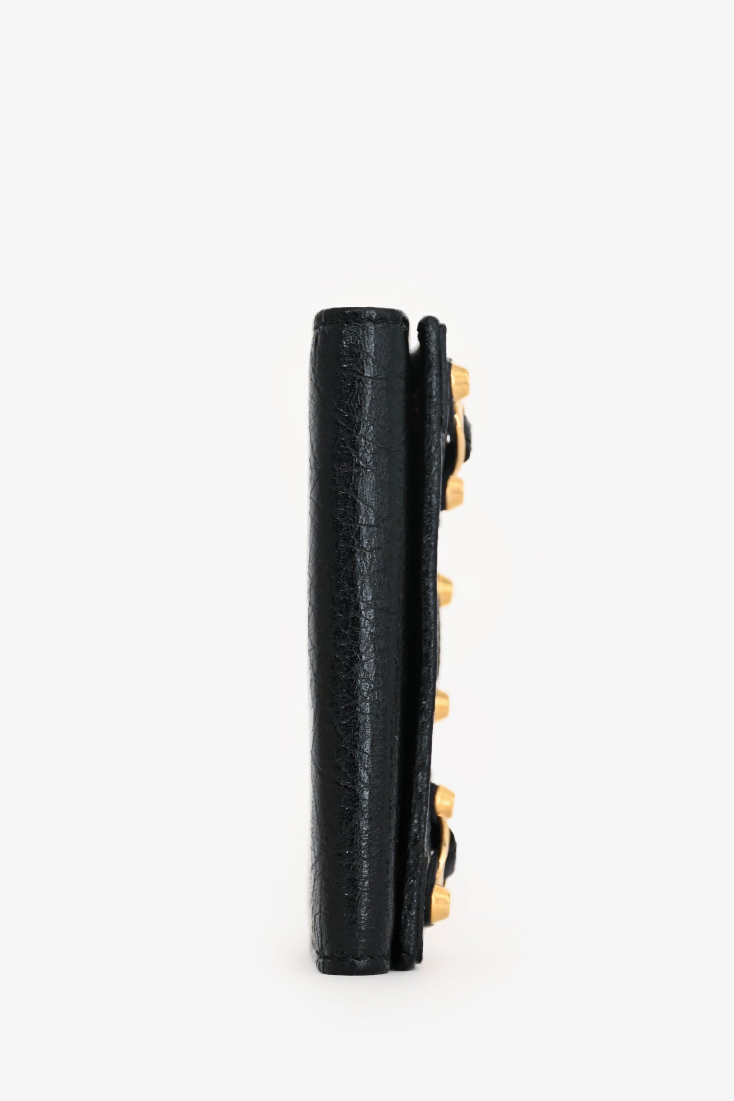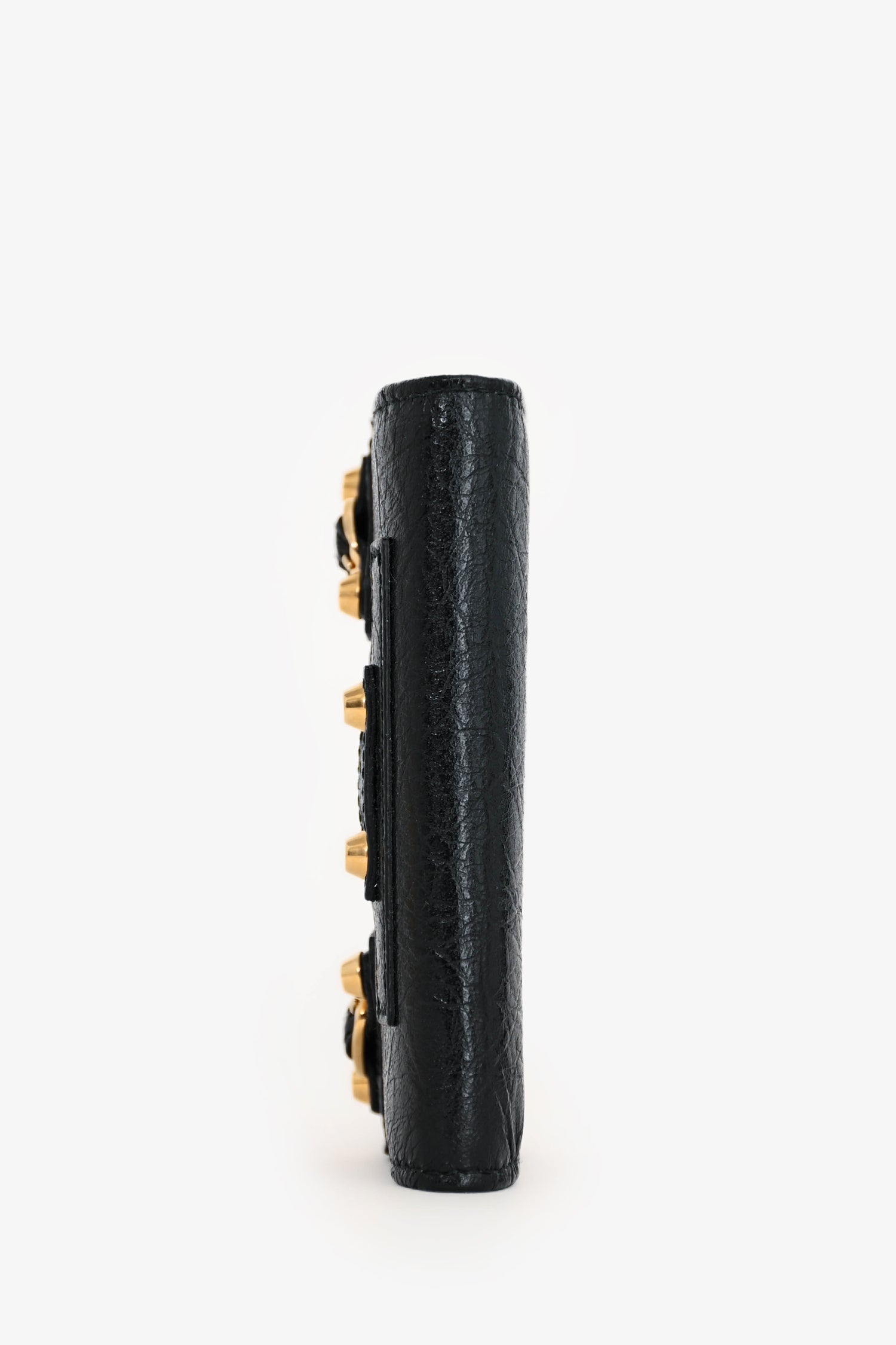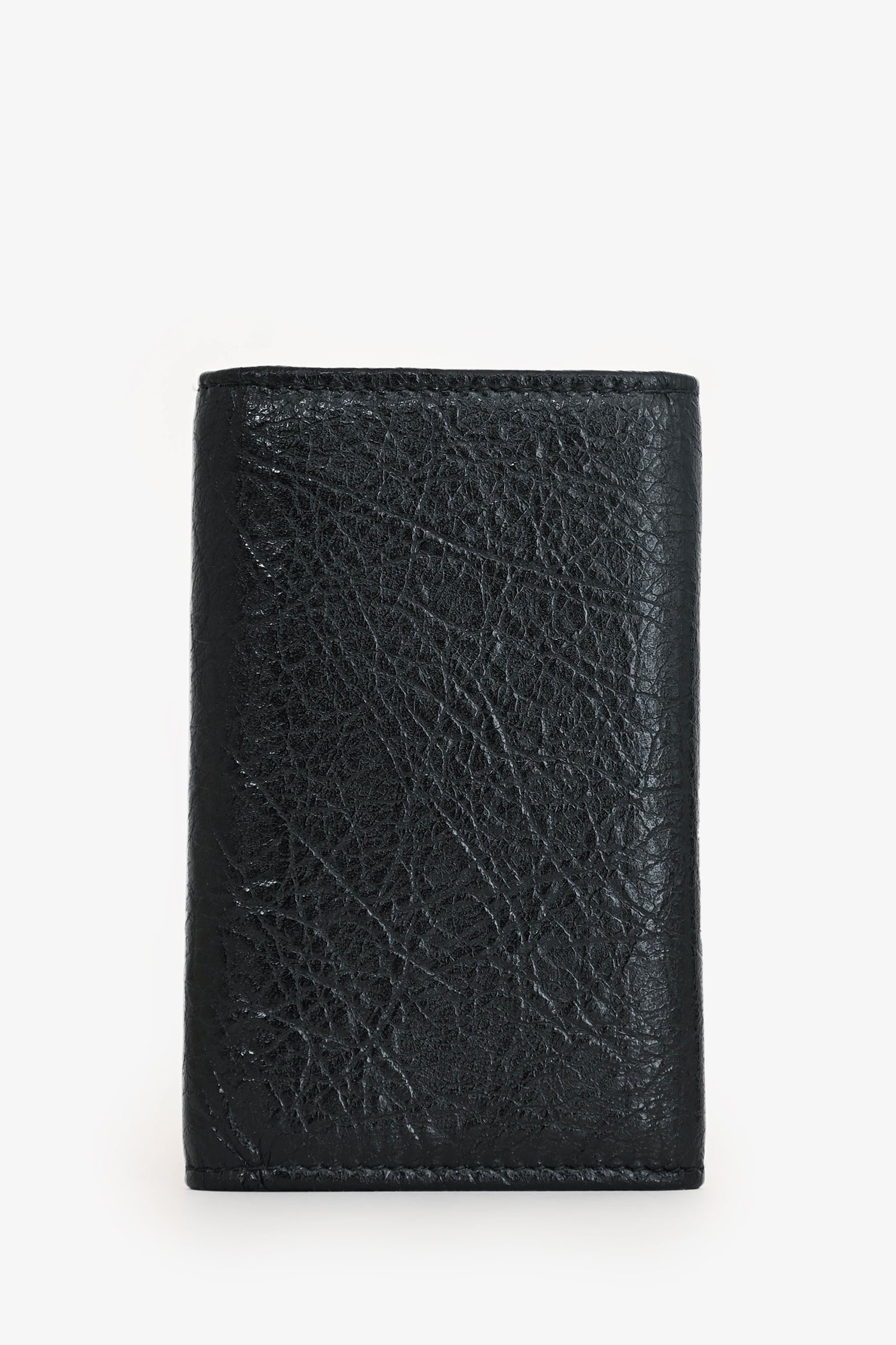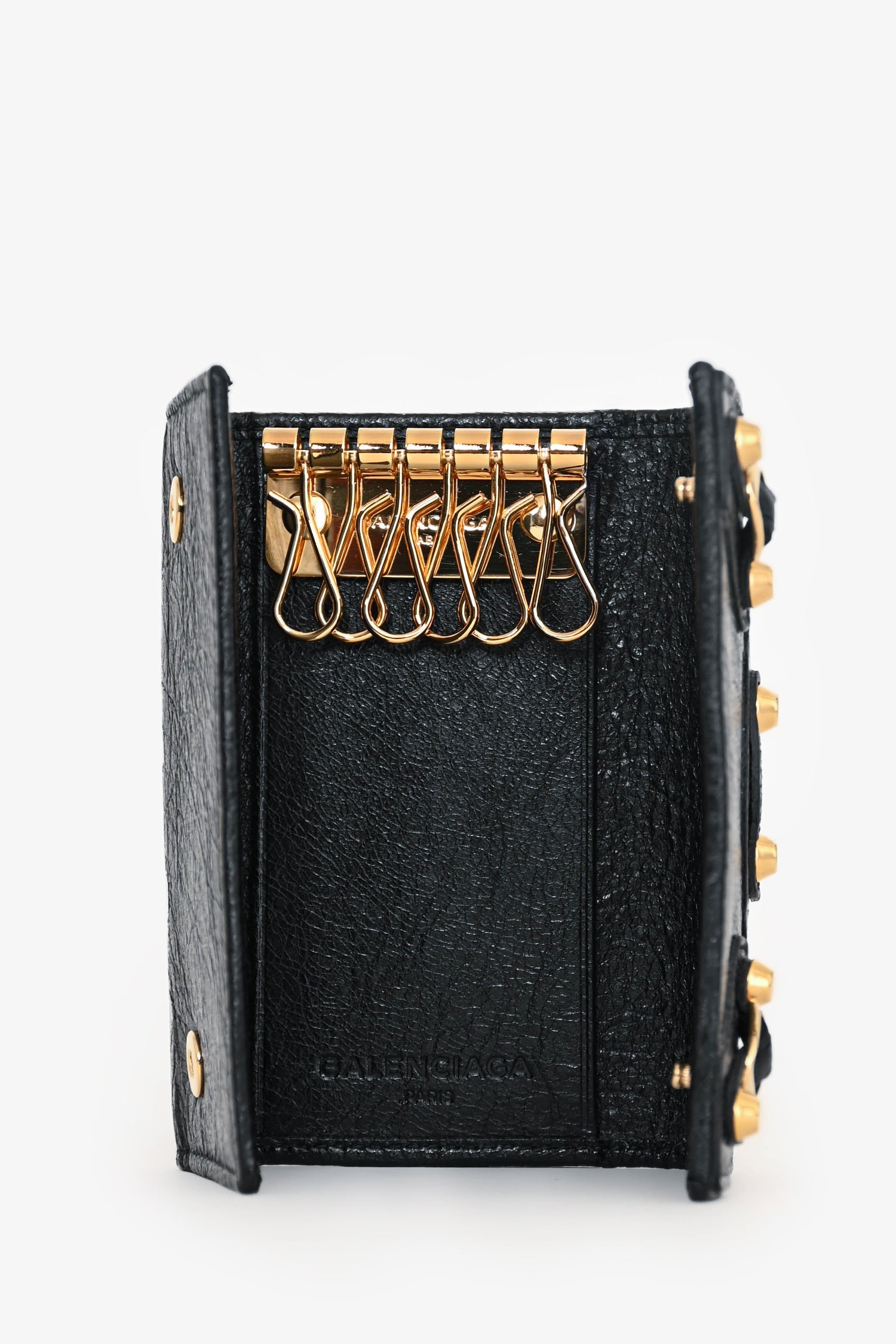 Refresh availabilityBalenciaga Black Leather Motor Style Key Holder. Front fold-over flap with snap-button closures. Six interior key clips. Tonal stitching.