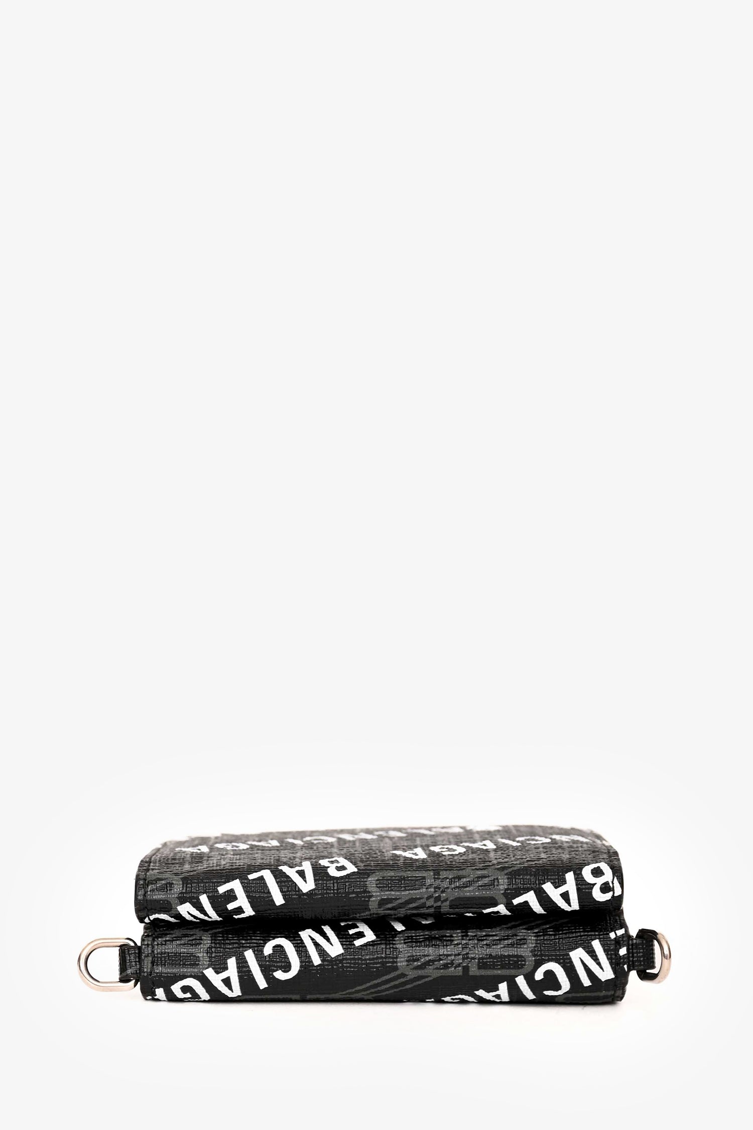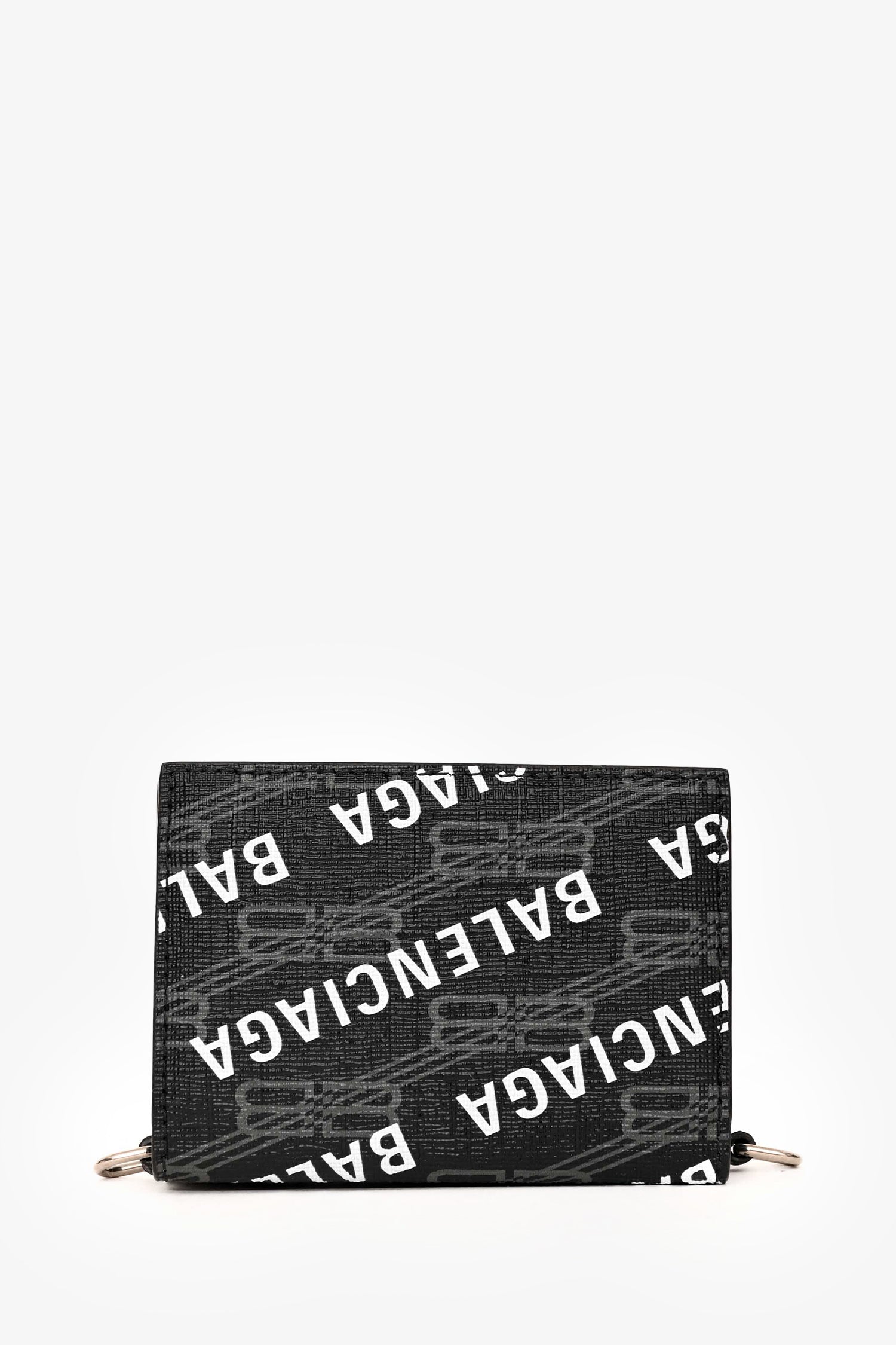 Balenciaga Black Logo Printed Trifold Wallet with Chain
