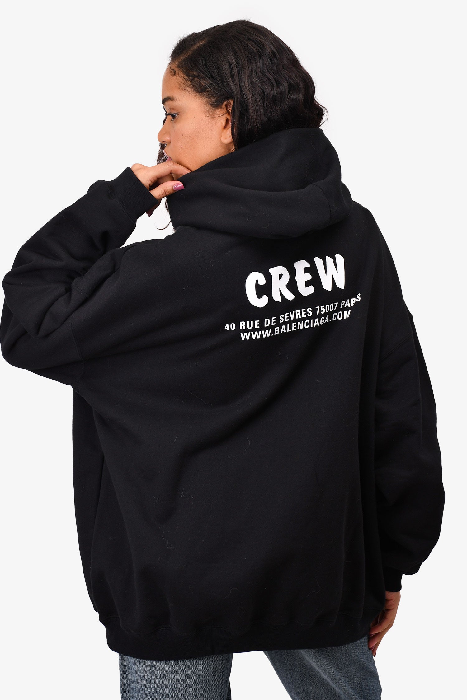 Balenciaga Black/White Crew Zip-Up Hoodie Size M Mens