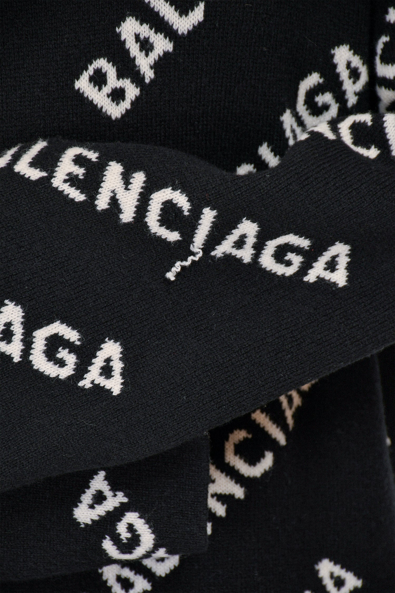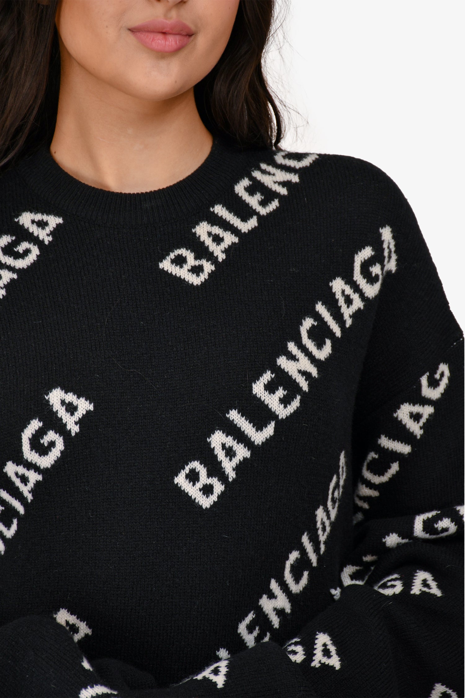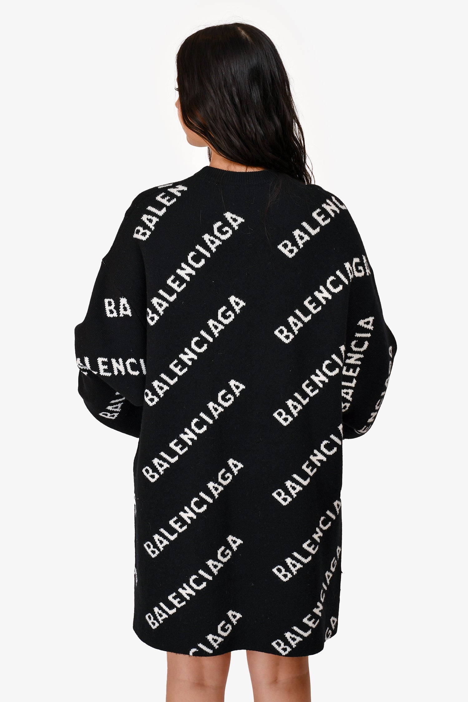 Refresh availabilityBalenciaga Black/White Wool Logo All Over Sweater Dress. Pull-on. Ribbed collar. Tonal stitching.