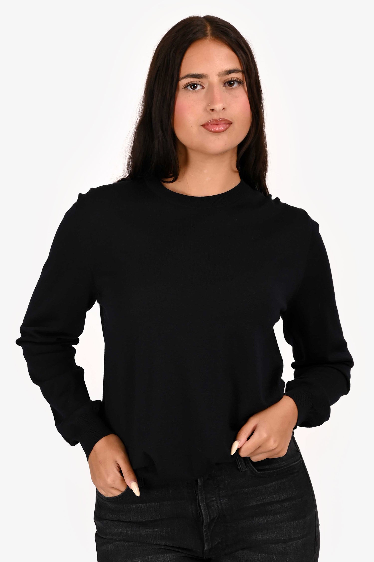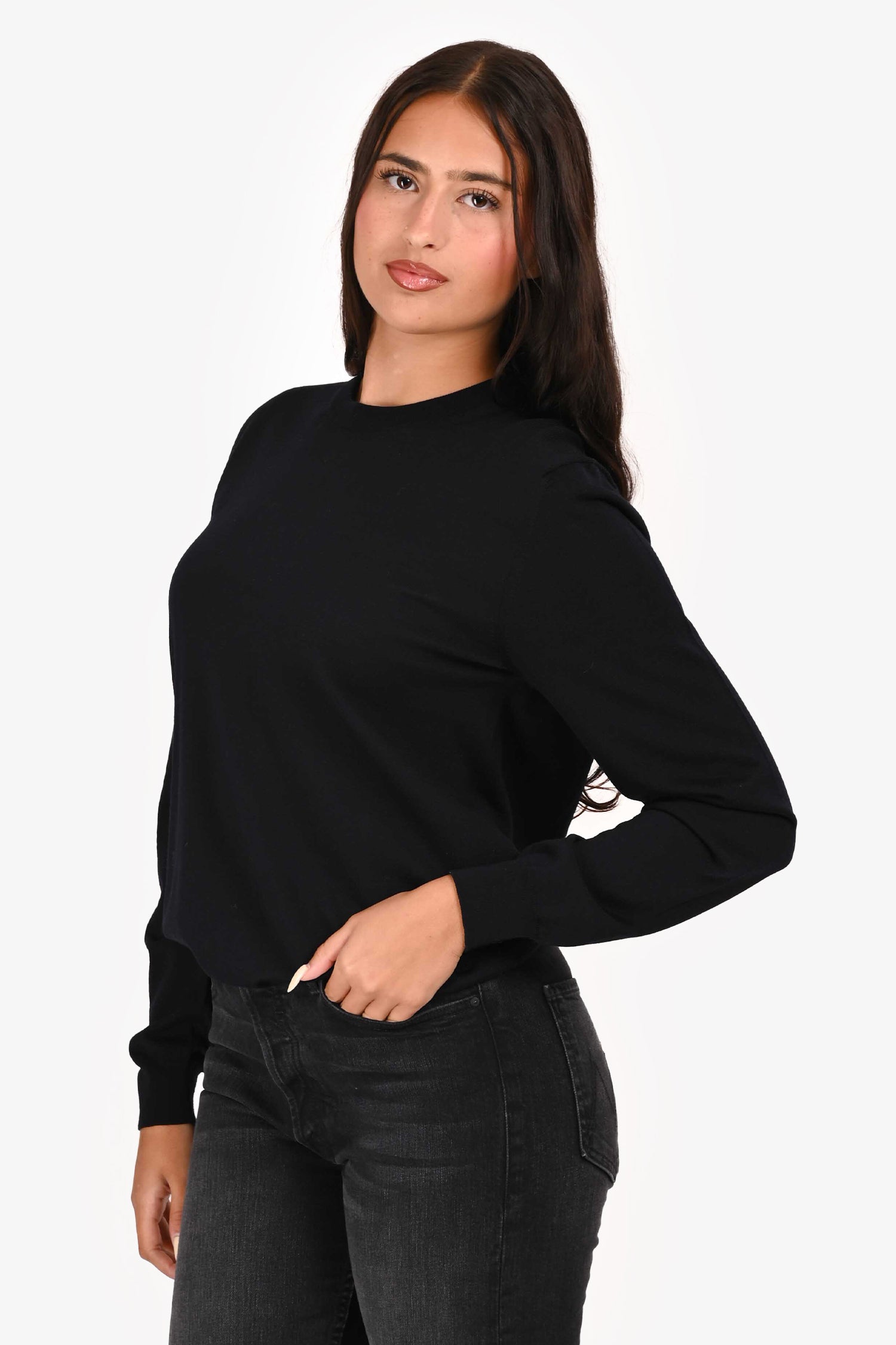 Refresh availabilityBalenciaga Black Wool Logo Sweater. Pull-on. Round neckline. Tonal stitching.
