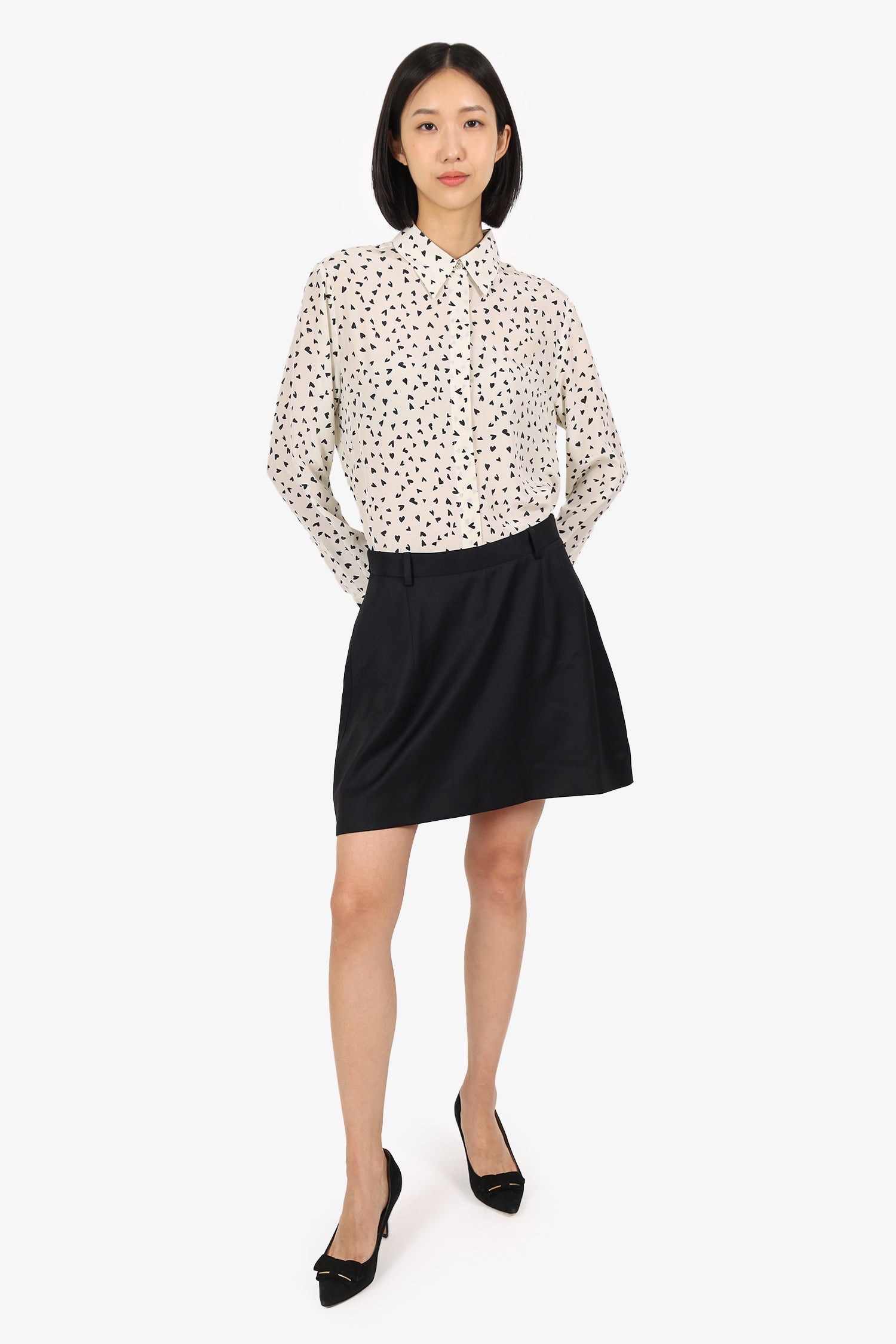 Refresh availabilityBalenciaga Black Wool Mini Skirt. Slip-on. Rear zip with hook closure. Waistband belt loops. Lined interior. Tonal stitching.